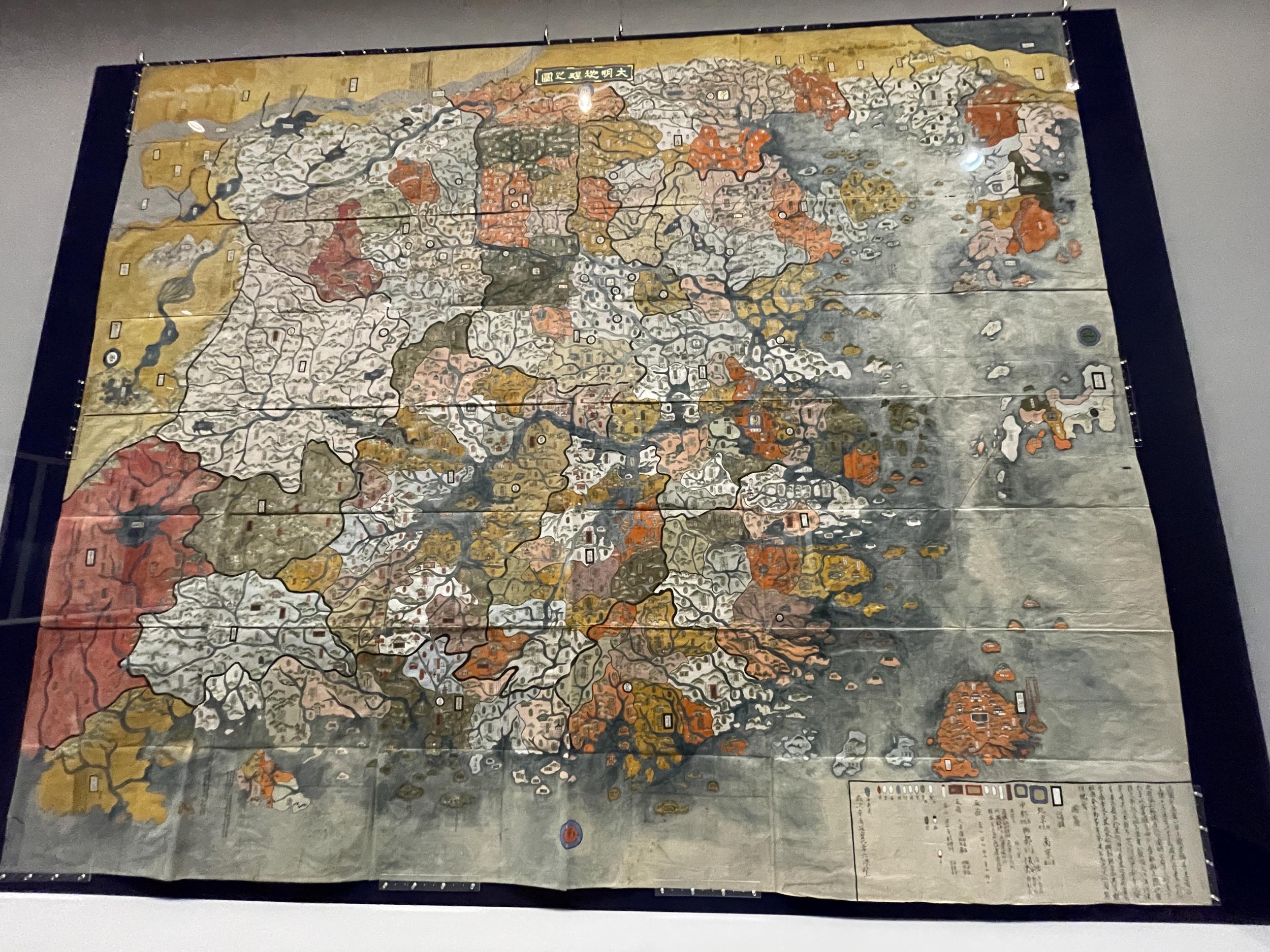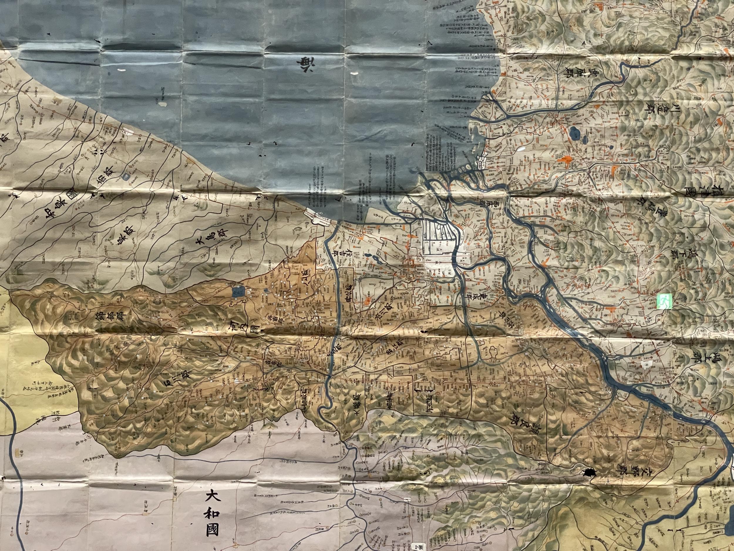 もう1枚は大明地理之図、明代の地図を江戸時代中期に模写したものと思われ、日本列島の南に描かれた大きな島は台湾じゃなくて琉球国、拡大すると「中山王城」の城郭が描かれています。琉球王国ができる前の中山王国の名前が琉球王国成立後も用いられていたらしい。