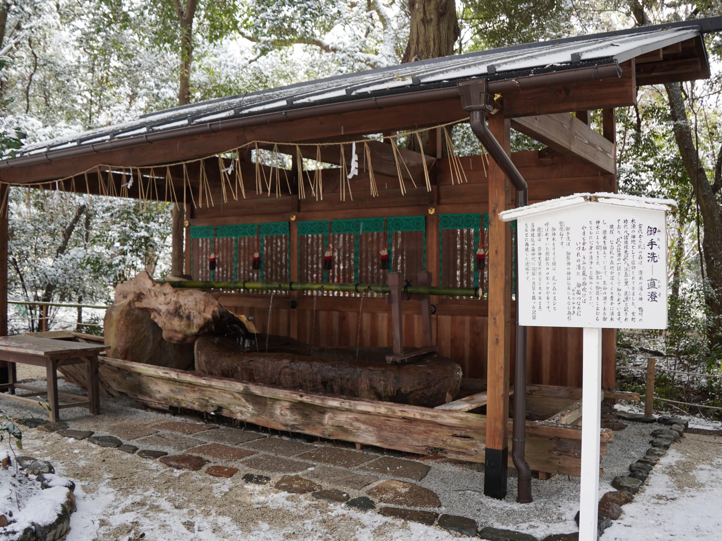 ならの小川の畔の御手洗(みたらし - 手水舎)、糺の森は直澄(ただす)と呼ばれる泉の湧くところというのが語源のようです。さらにみたらし団子とは、御手洗池で水をすくったところ、最初に泡が1つ浮き上がり、少し間があってから4つの泡が浮き上がったという逸話に因むものらしい。鴨川公園に置かれているみたらし団子のモニュメントはてっきりいつも長蛇の列の「ふたば」に因むものとばかり思っていたのですが、この御手洗に因むというのが正解のようです。モニュメントのみたらし団子も一番先っぽの団子が二番目から少し離れています。