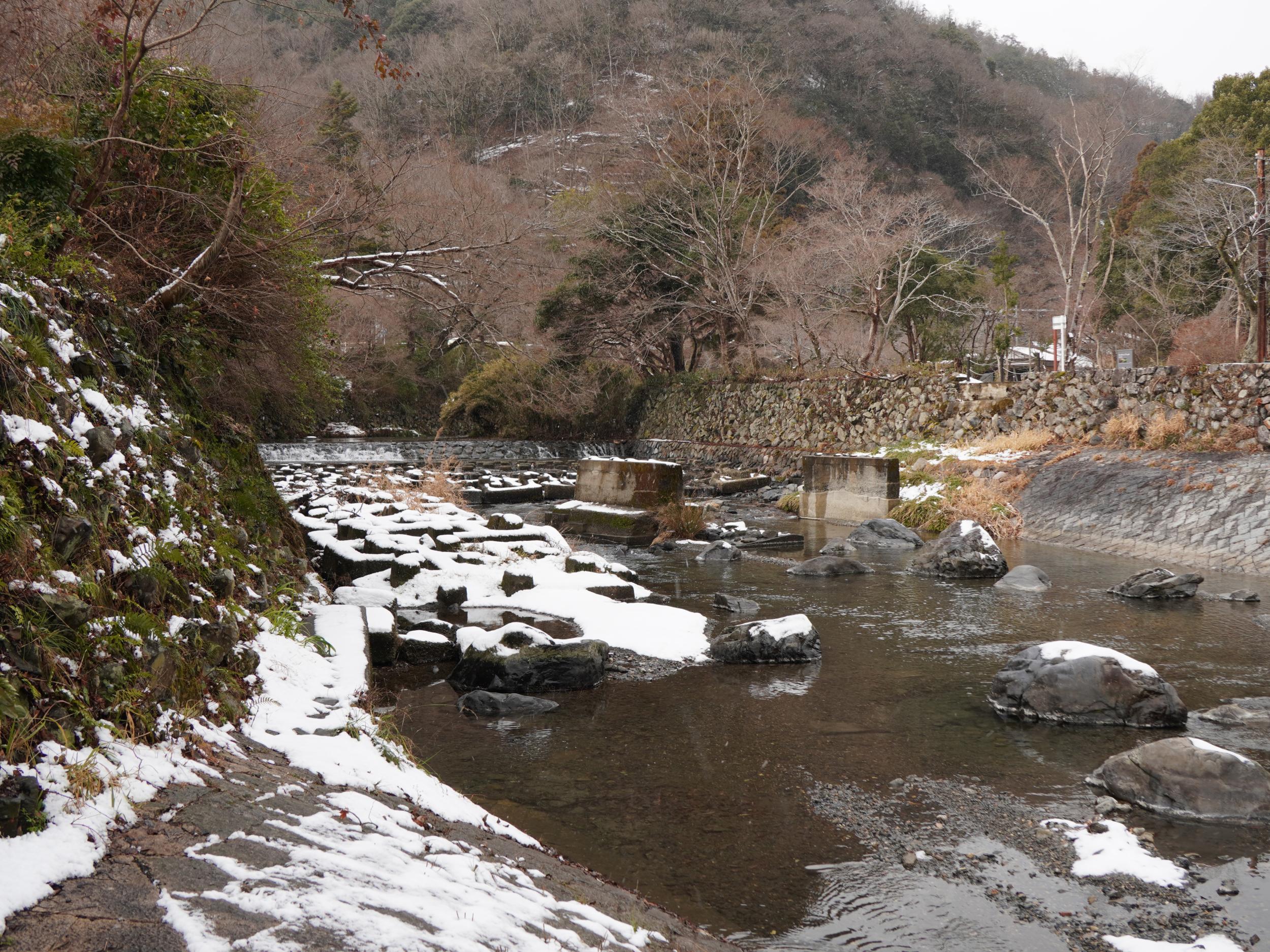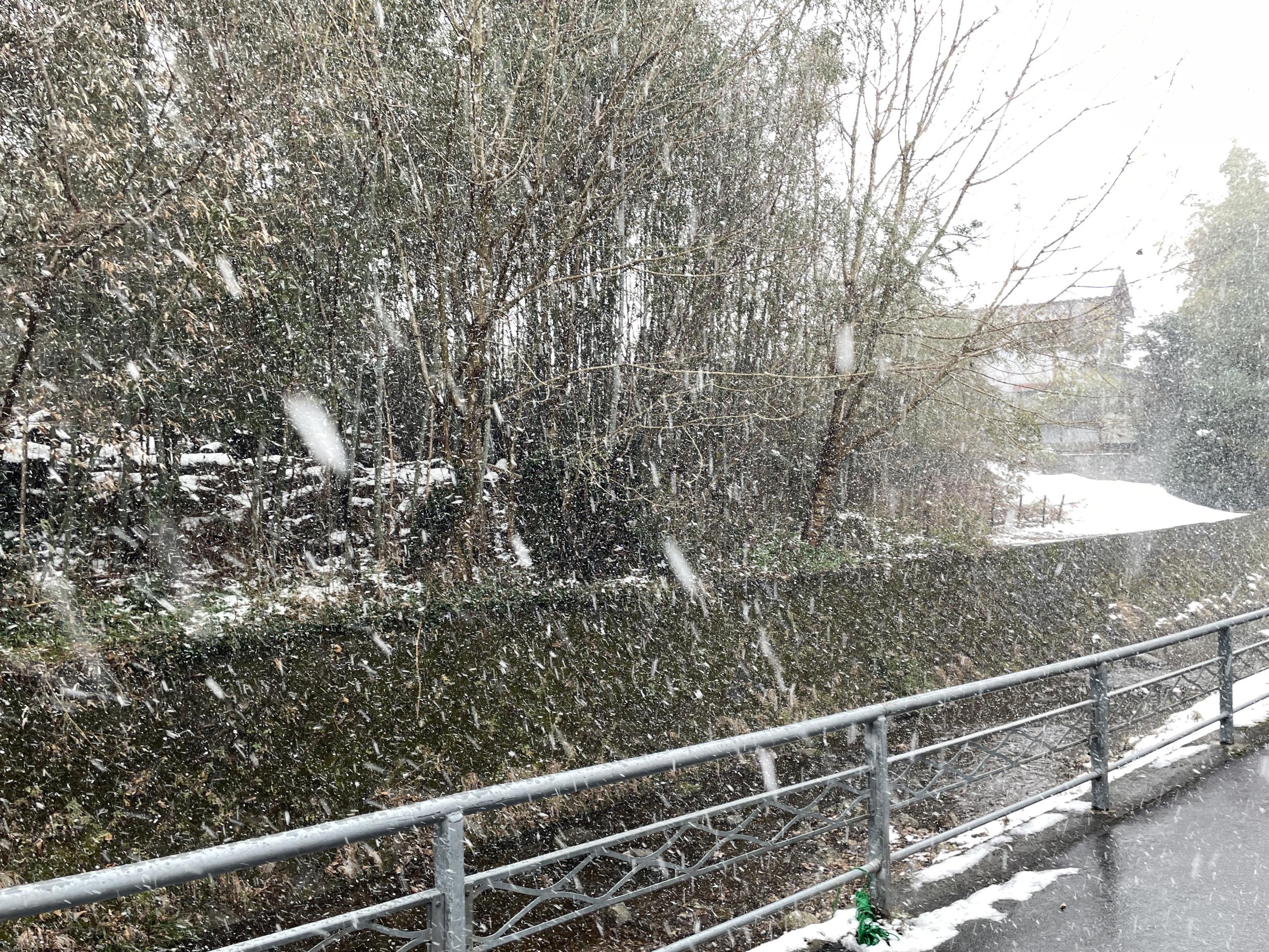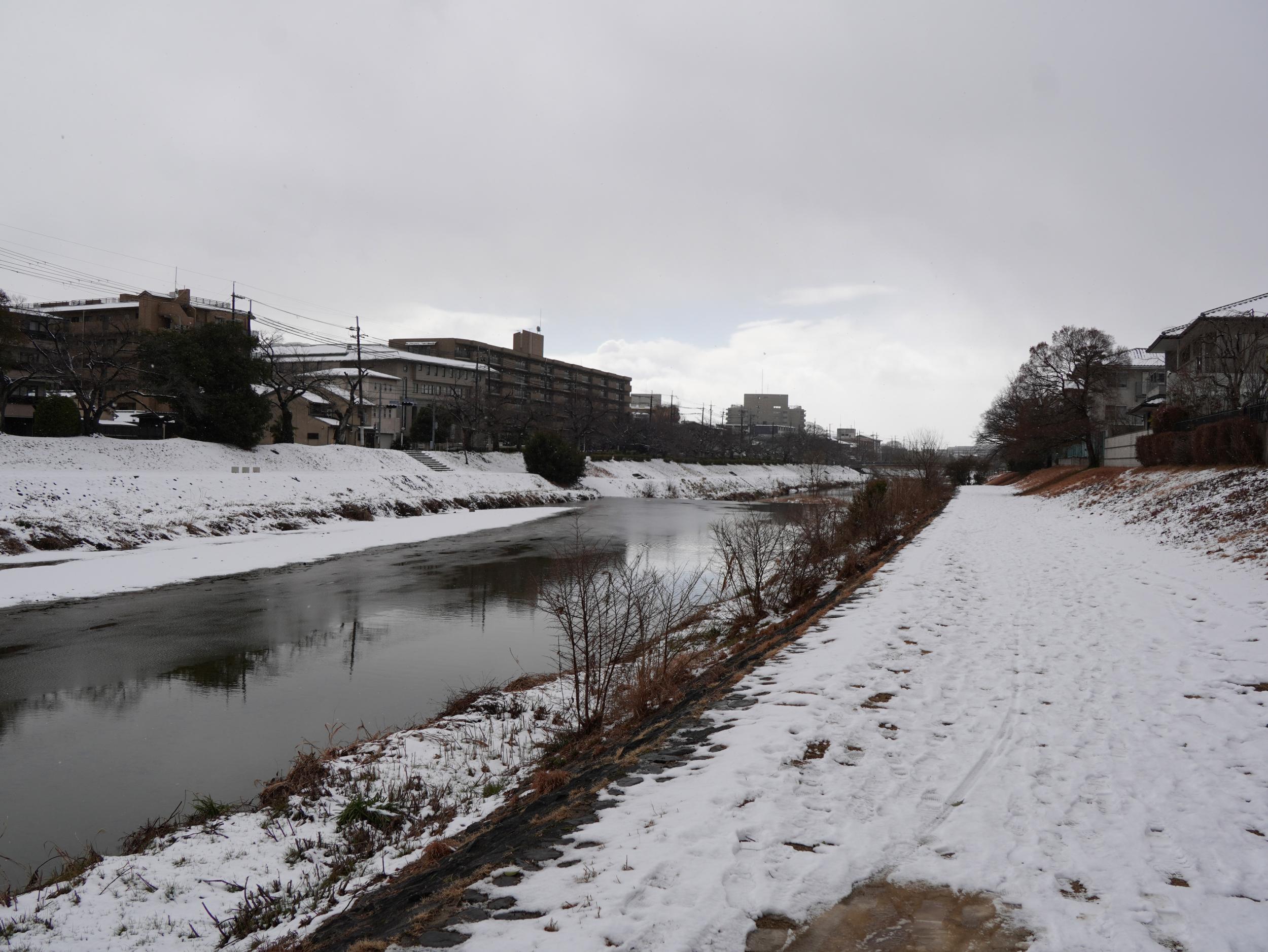 賀茂川左岸を歩いてます。グッグッグッという自分の足音が心地いい。雪は激しく降ったりチラチラになったり。
