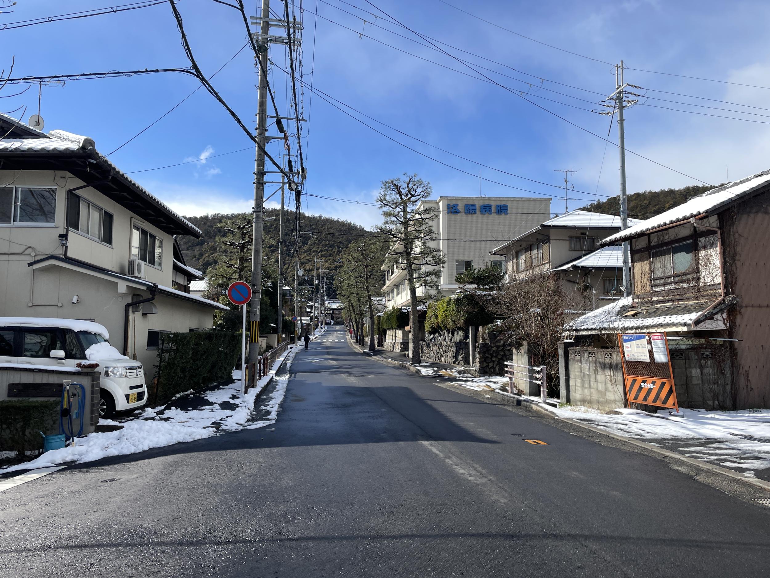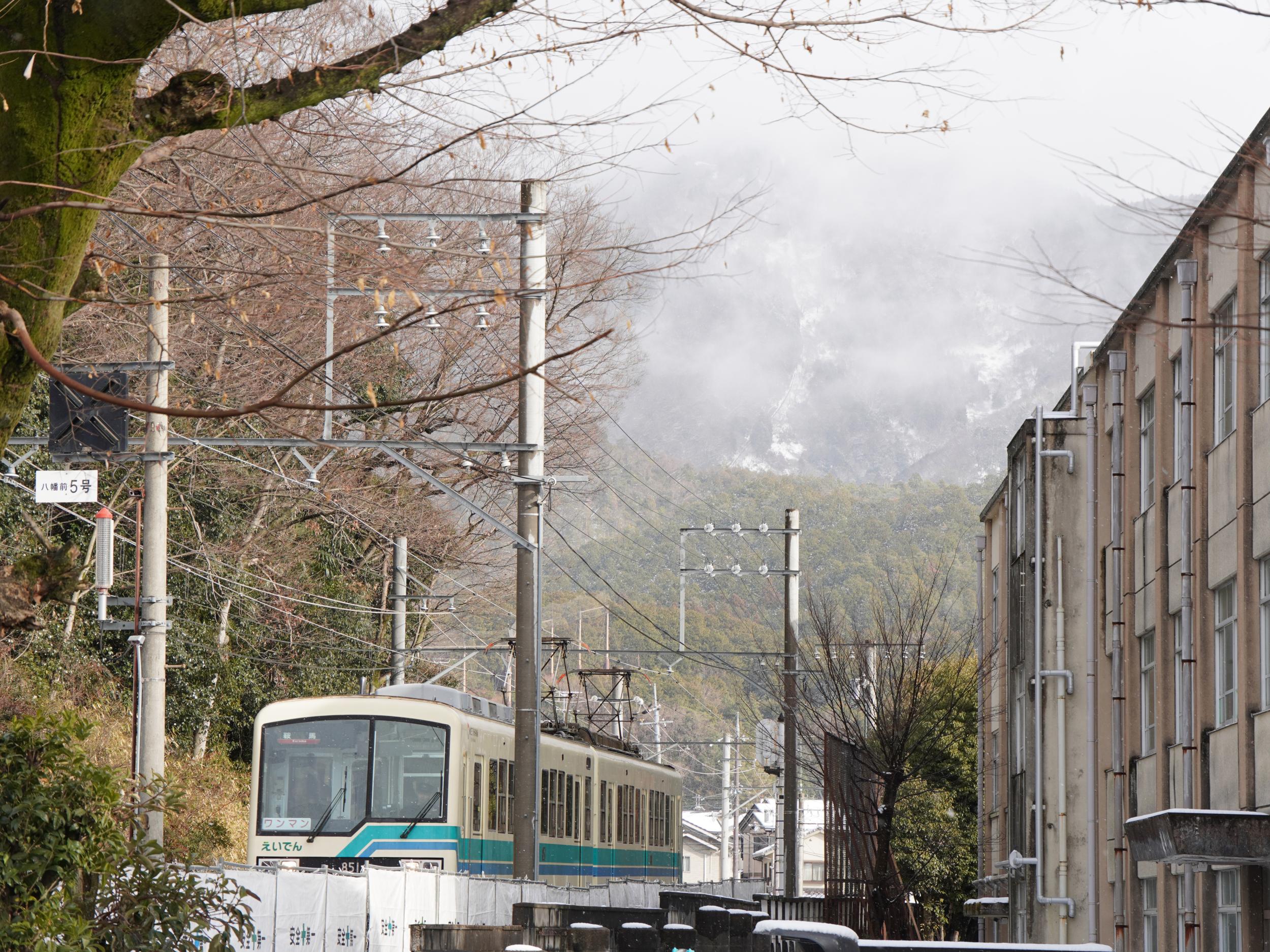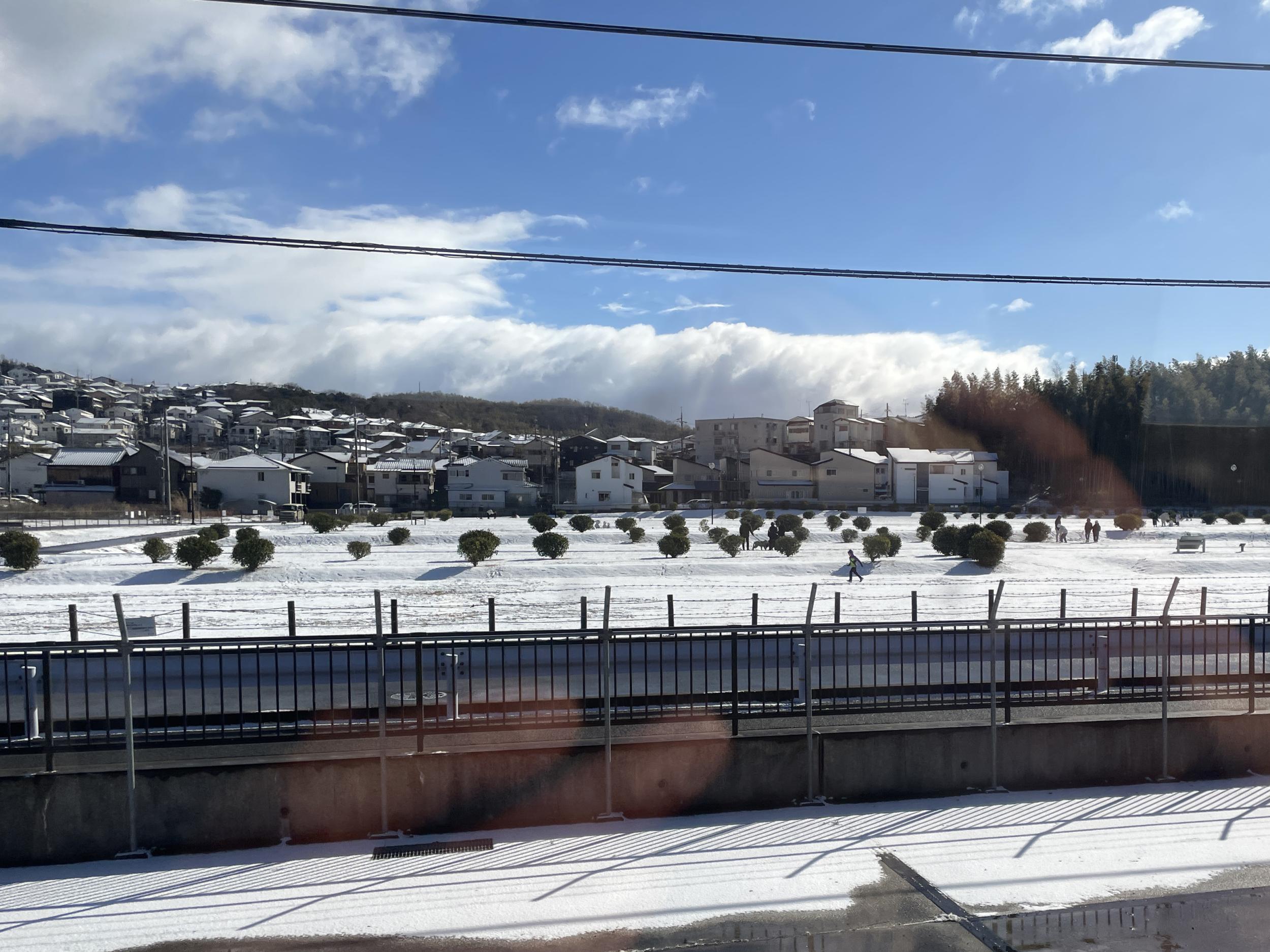 中書島駅のホーム端に撮り鉄さんがビッシリ。何が来るのかと思いきやほどなくして復刻塗装の2200系とすれ違いました。雪景色の復刻塗装狙いだったようです。東福寺付近から雪が激しくなってきました。