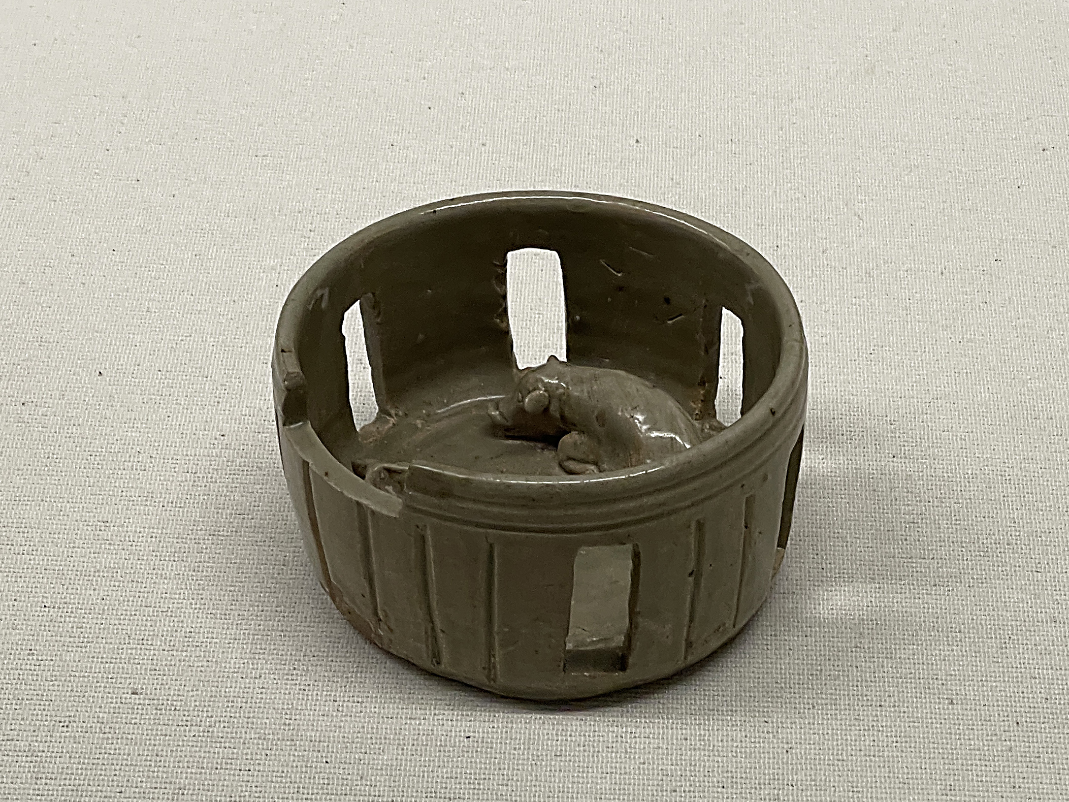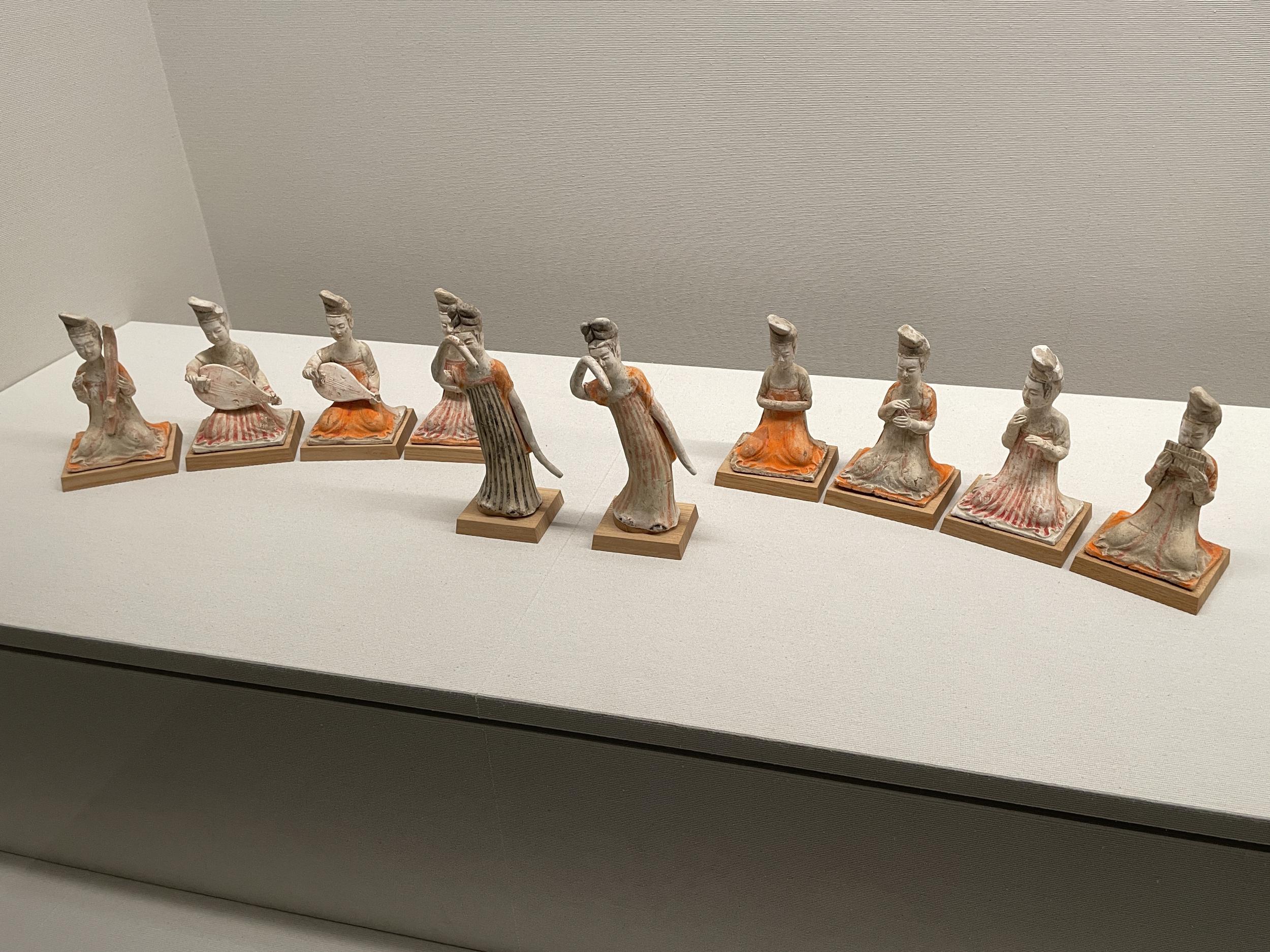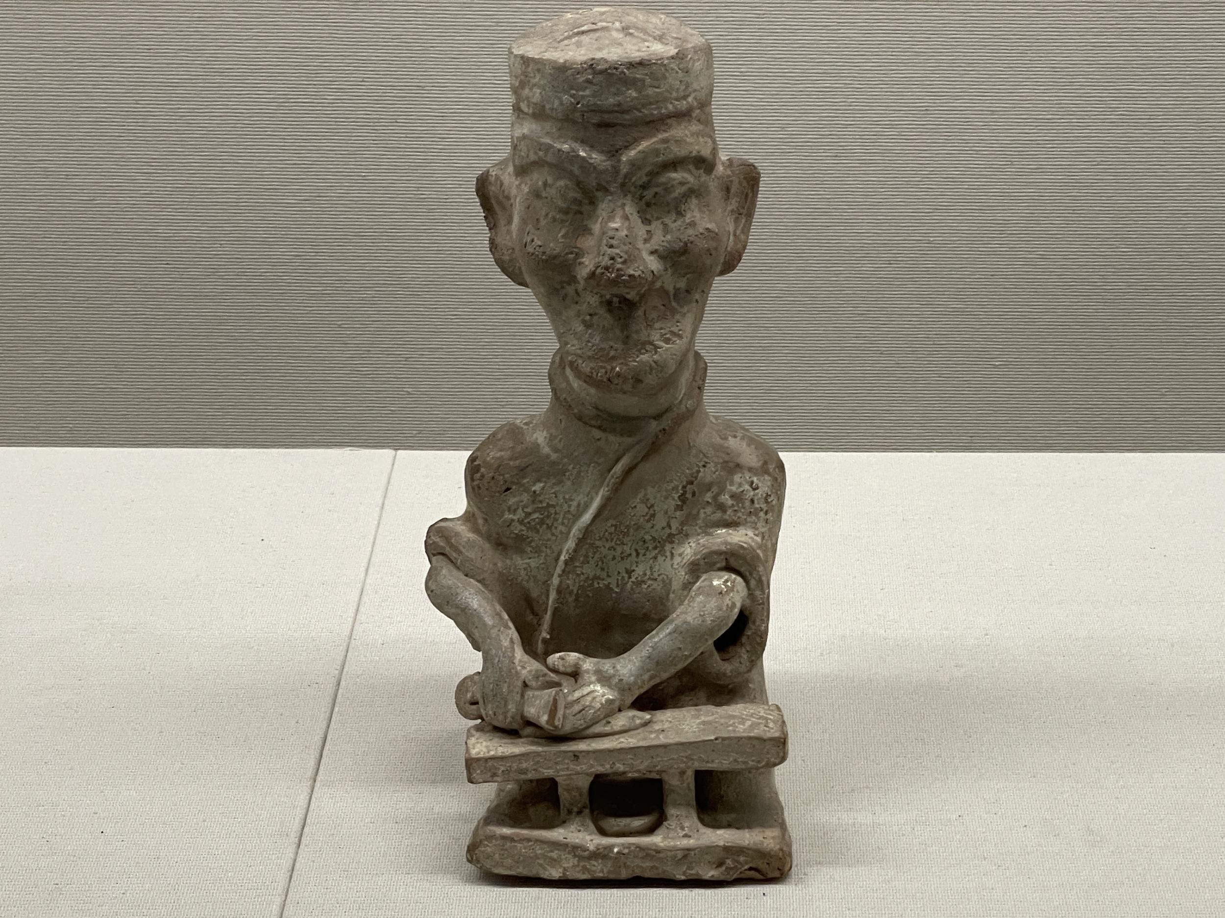 後漢時代(1世紀〜3世紀)の陶製明器の灰陶楽人芸人。死後も娯楽を楽しめるように納められた副葬品です。落語家のような噺家らしき姿も。