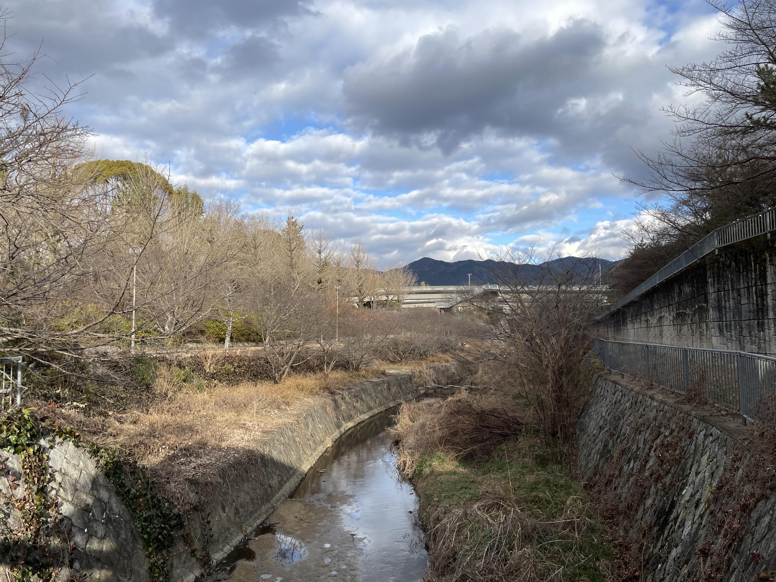 天理参考館をあとにして布留川です。布留川で娘が洗濯していたところ、岩や木を切りながら流れてきた剣が、洗濯していた白い布の中に留とどまっていた、という伝説に由来するそうです。向こうの山並みのどれかが布留山266m、白い龍が布留山の上に落とした剣が石上神宮の七支刀になったいう伝説もあるようです。石上神宮もすぐ近くですが、もう4時なので機会を改めます。
