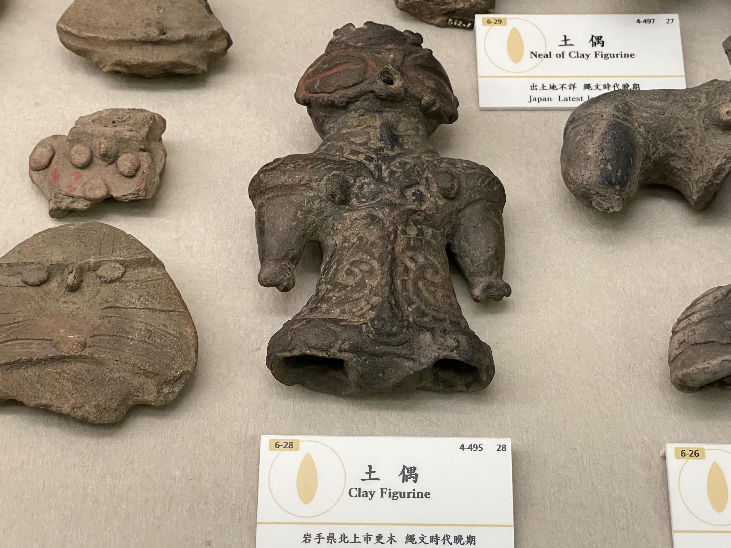 土偶がいっぱい。北上市更木出土とある土偶は北上川東岸に位置する八天遺跡からのもののようです。口や鼻、耳など体の部分だけの土製品が出土しているユニークな遺跡です。
