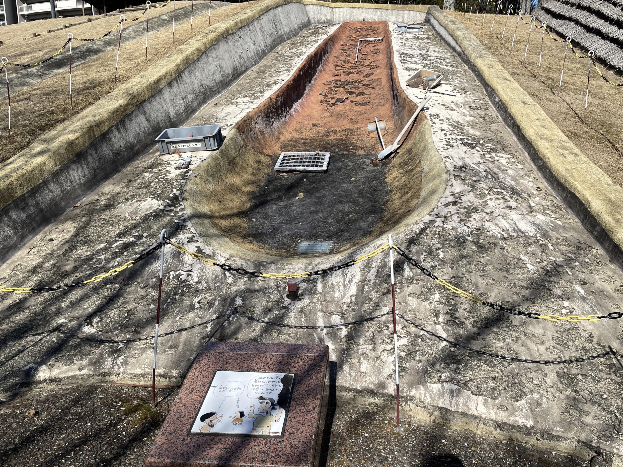 新池を反時計回りに見るべきところ逆に回って来たと分かりました。マンガは今城塚古墳の案内板と同じ絵本作家ヨシトミヤスオ氏の作品です。