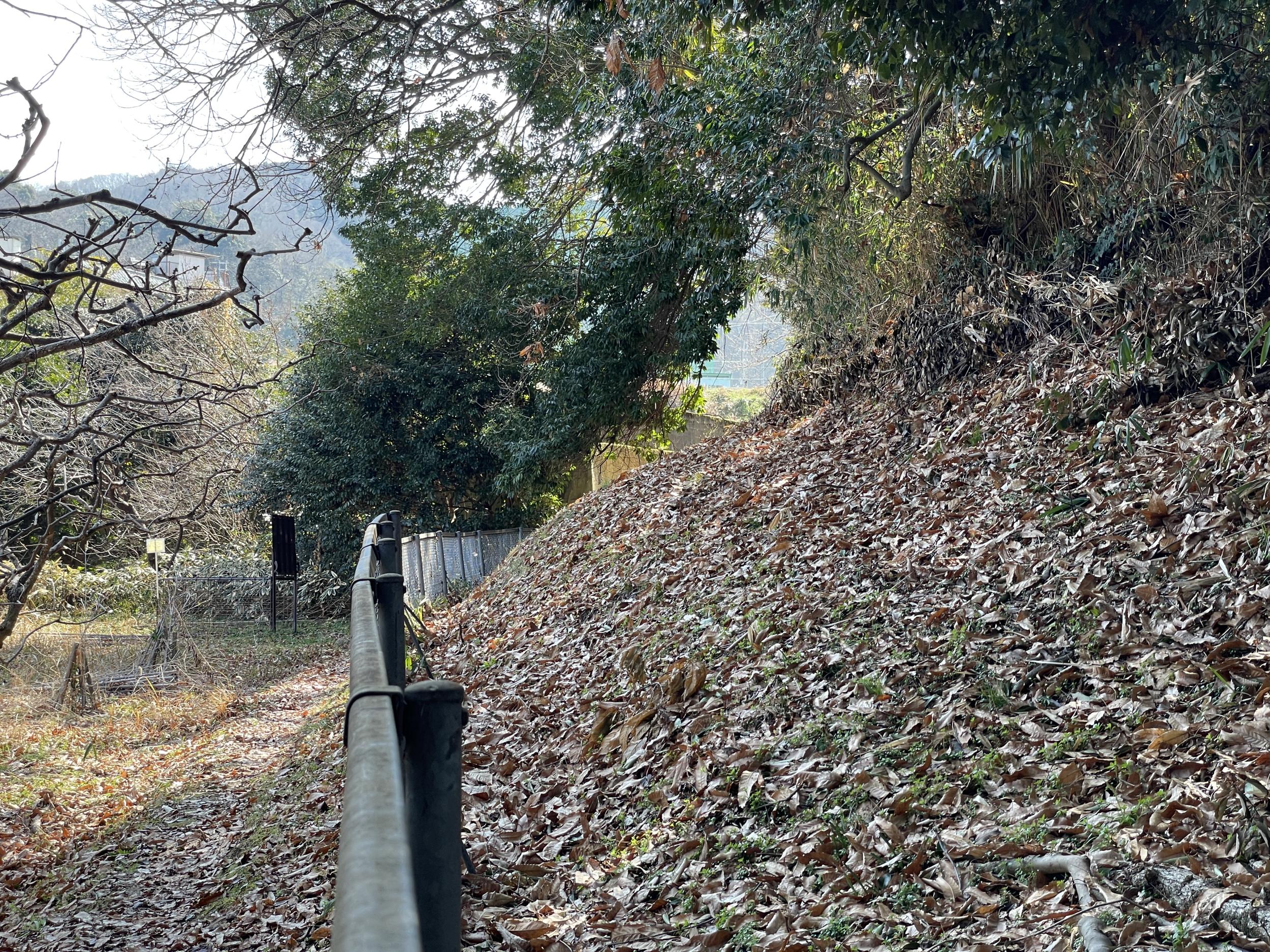 くびれ部のフェンスが空いていてここから墳丘へ登れるようですが藪漕ぎは必須と思われやめておきます。大和の古墳チャンネルさんの動画で見学通路が確保された時に、ここから墳丘へ登った様子が紹介されていました。同じ動画で2009年に実施された発掘調査の現地見学会の様子も紹介されています。「めったと見れない、巨大前方後円墳の埋葬部を目の前にして、例えようもない感動を覚えました。」とコメントされた後円部の竪穴式石室は埋め戻されており、熊笹が生い茂り近づけないとのこと。
