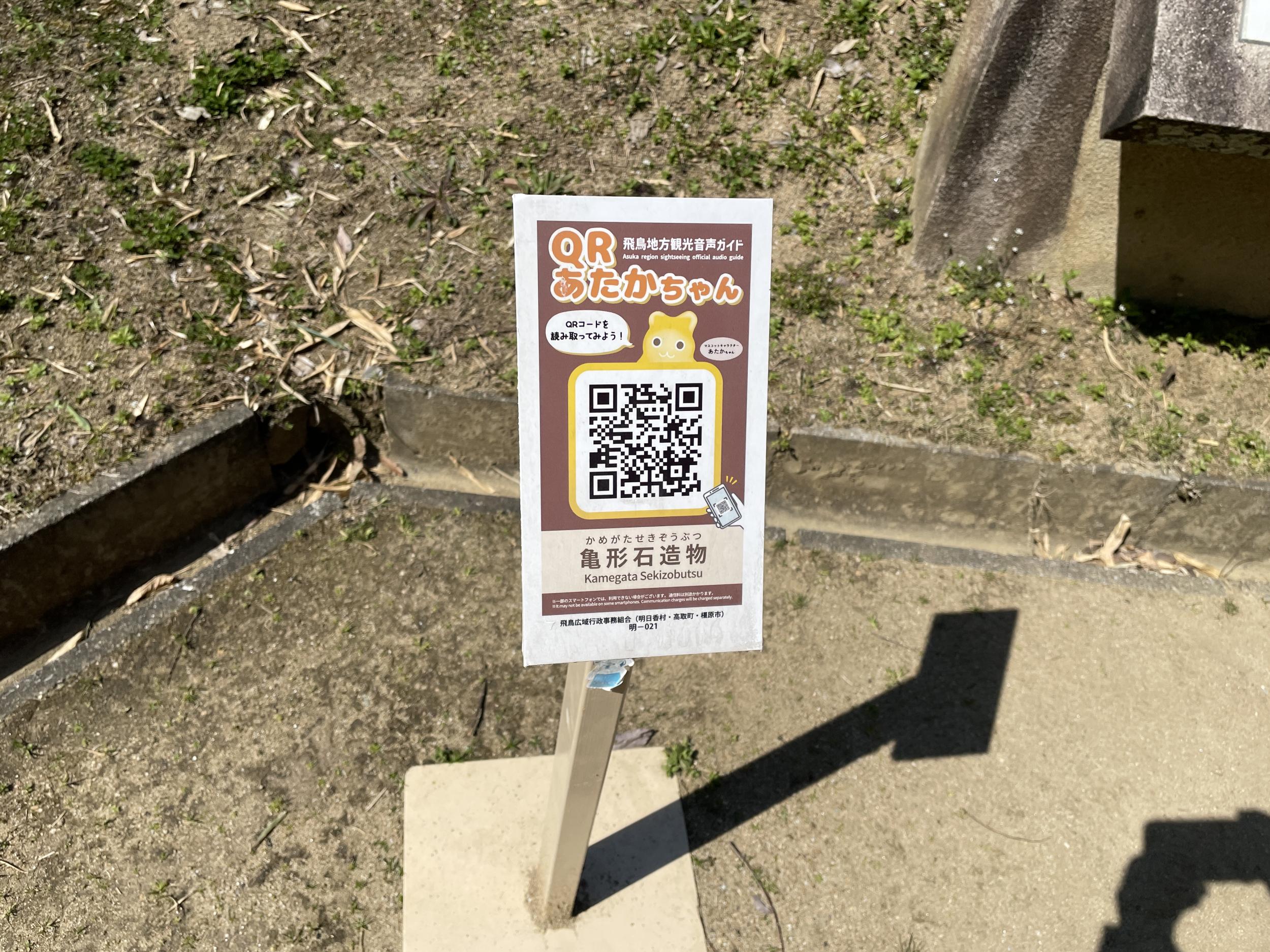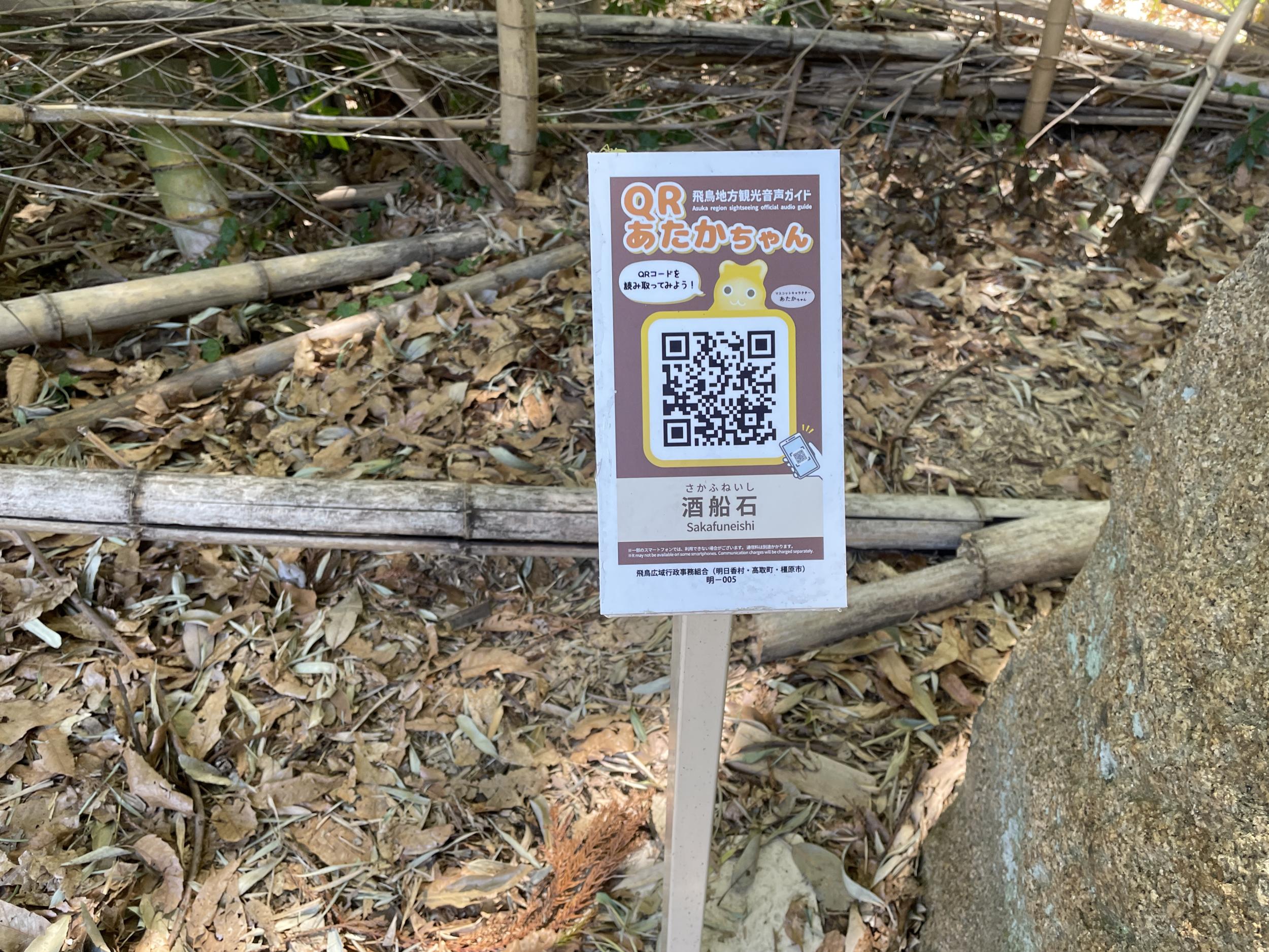 QRコードを読み取り、河瀬直美さんの解説を聞きながら酒船石の廻りを歩き、これは何なのか考えにふけります。