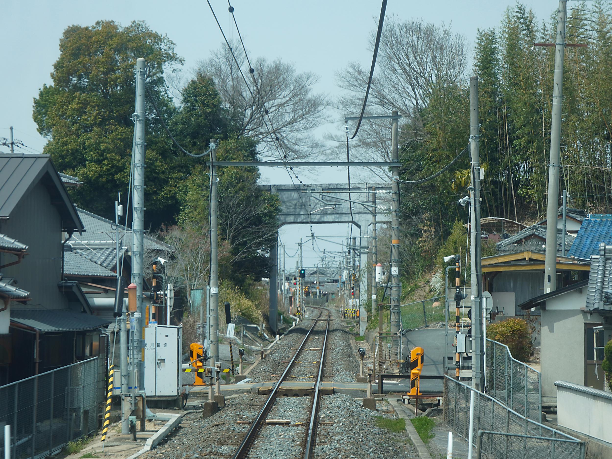 山口踏切の先にも天井川の天神川。