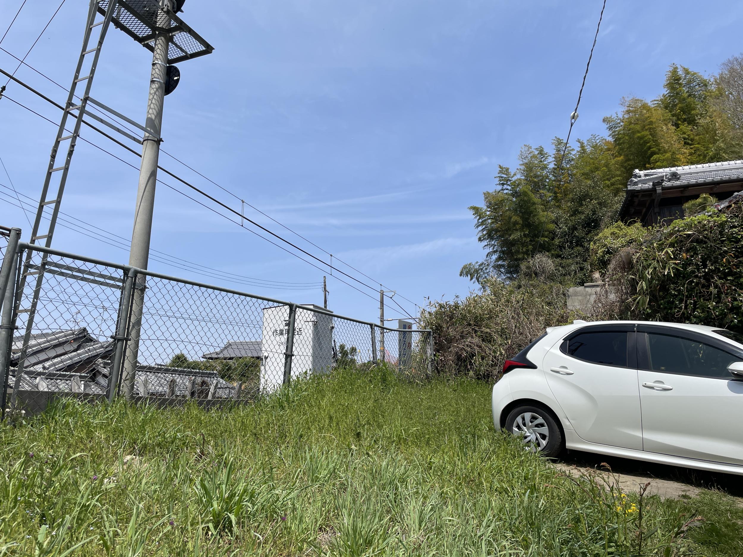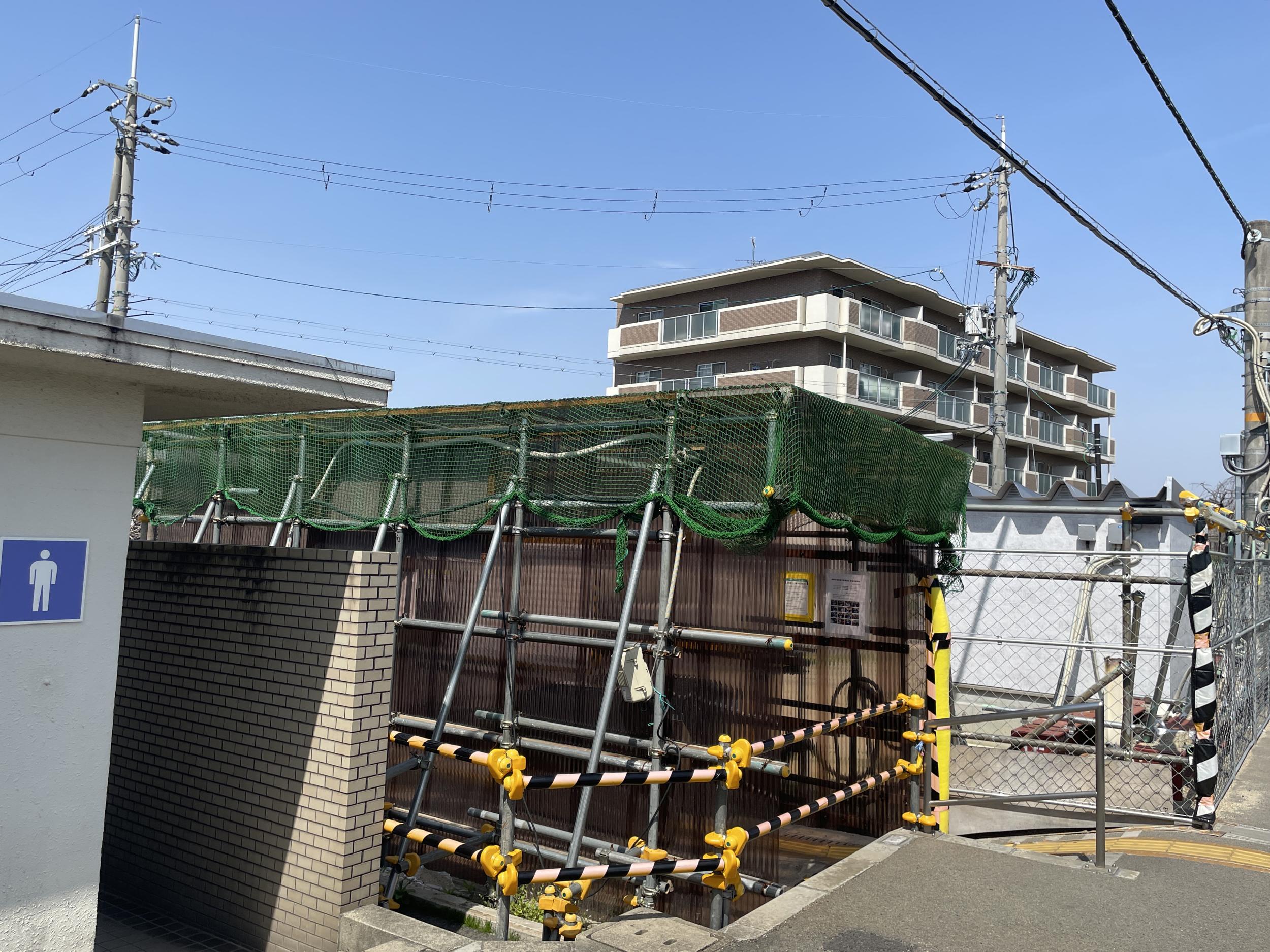 線路の向こう前方部の工事現場はどうやら発掘調査で間違い無さそうです。