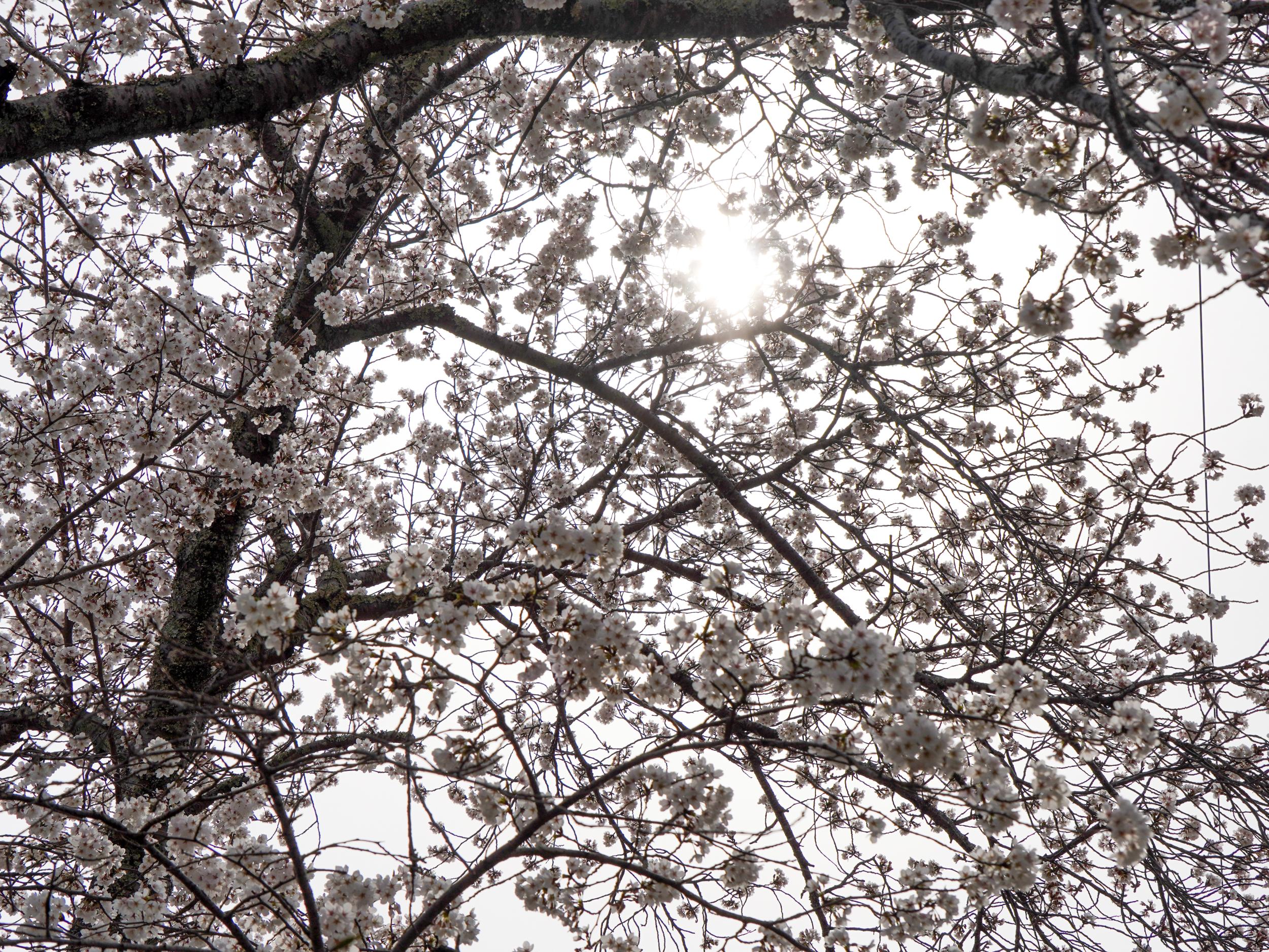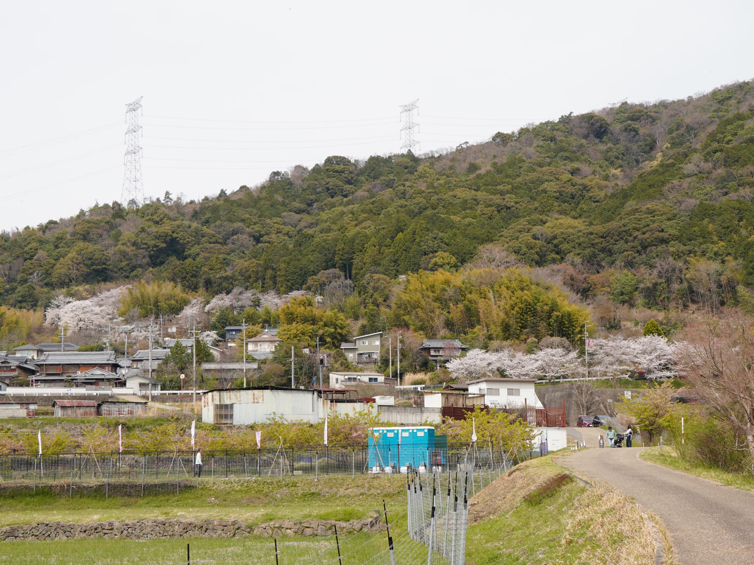 桜並木を過ぎるとまだ仮設トイレが設置された場所なのに人がずっかりいなくなりました。ソメイヨシノの並木に代わってヤマザクラ。