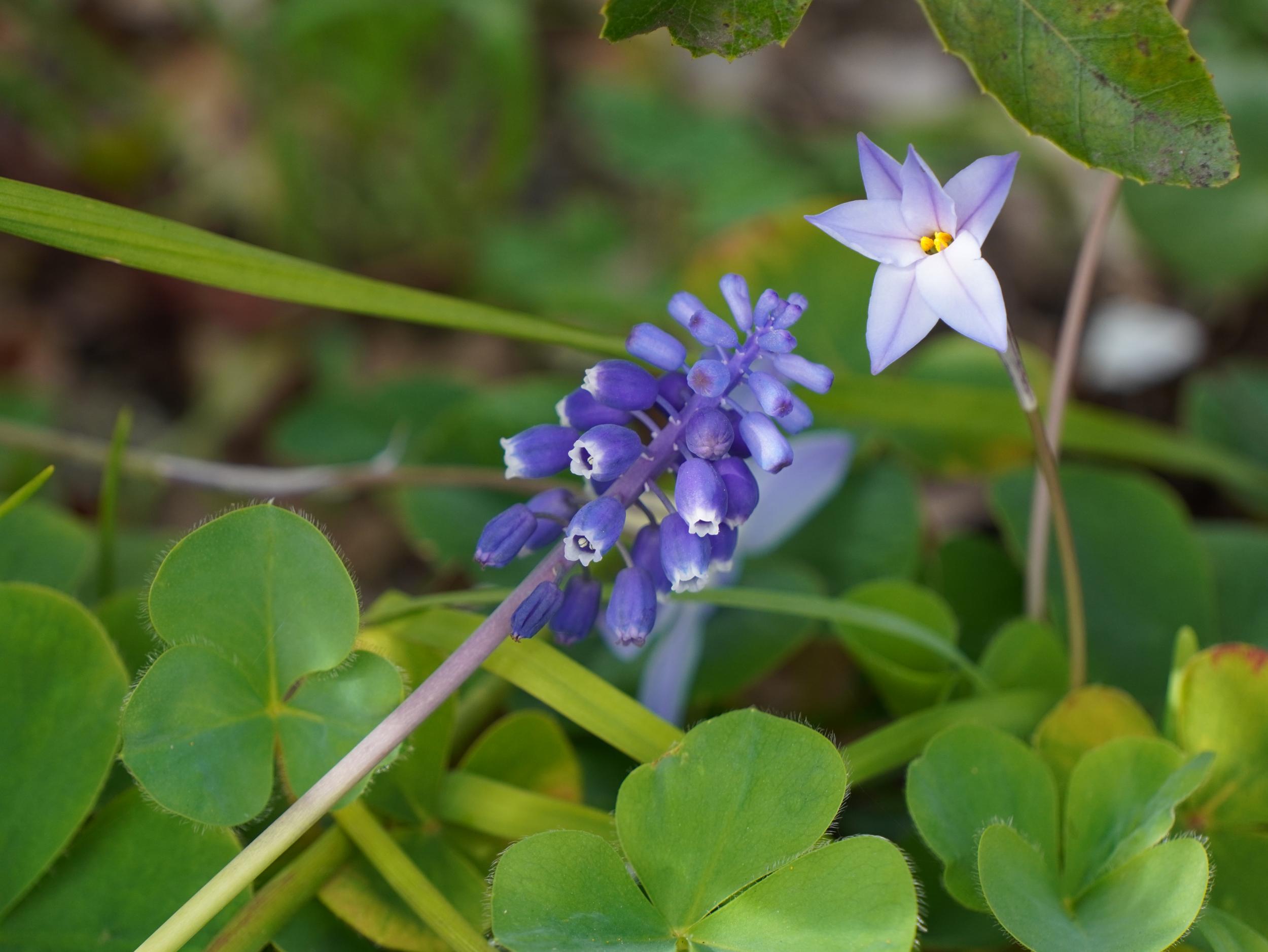 ムスカリとハナニラ。花曇りも悪くない。