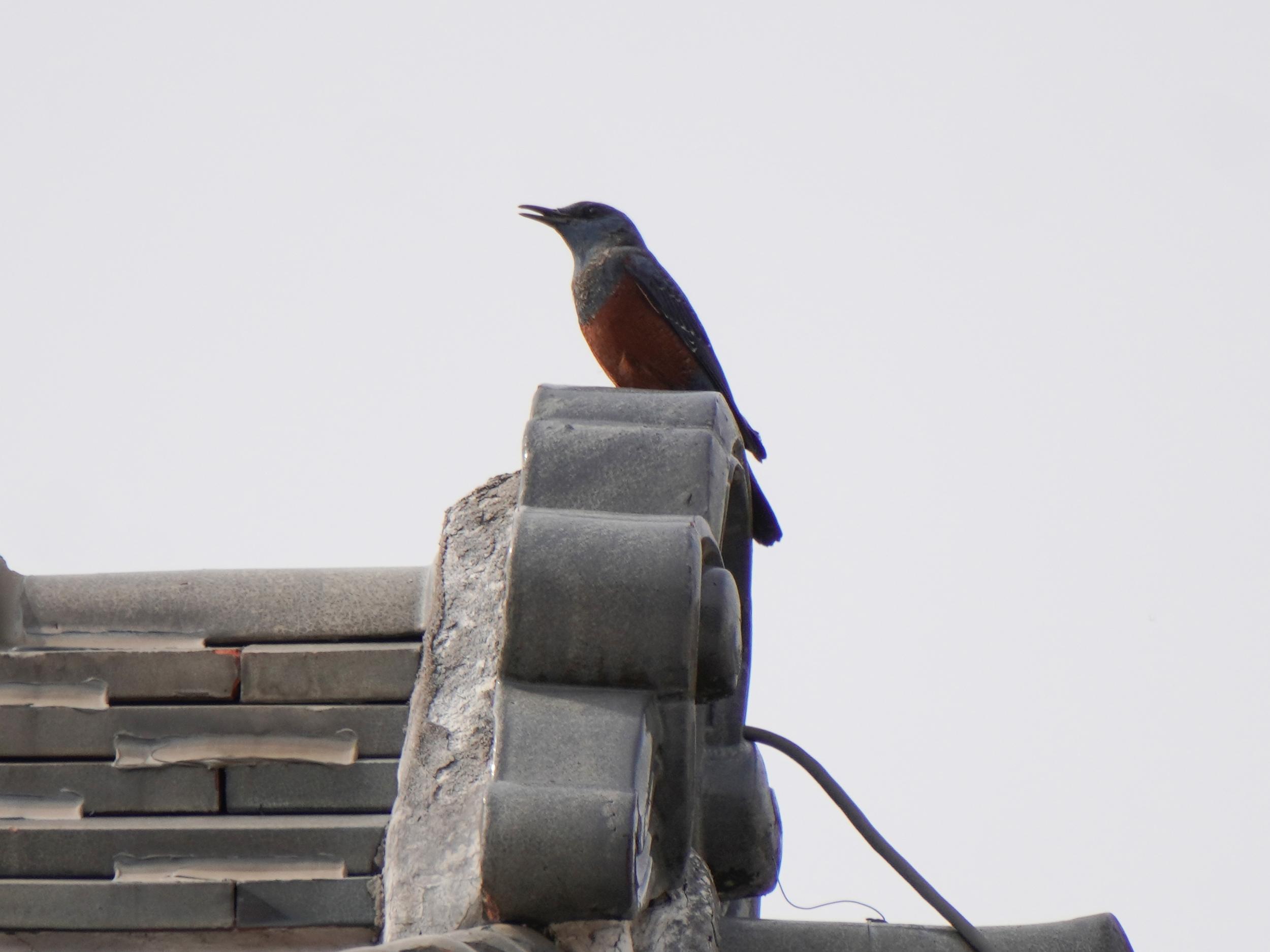 イソヒヨドリはいつもの定位置。来る時と同じ場所でホーホケキョ、探してみたけどシジュウカラだけ。