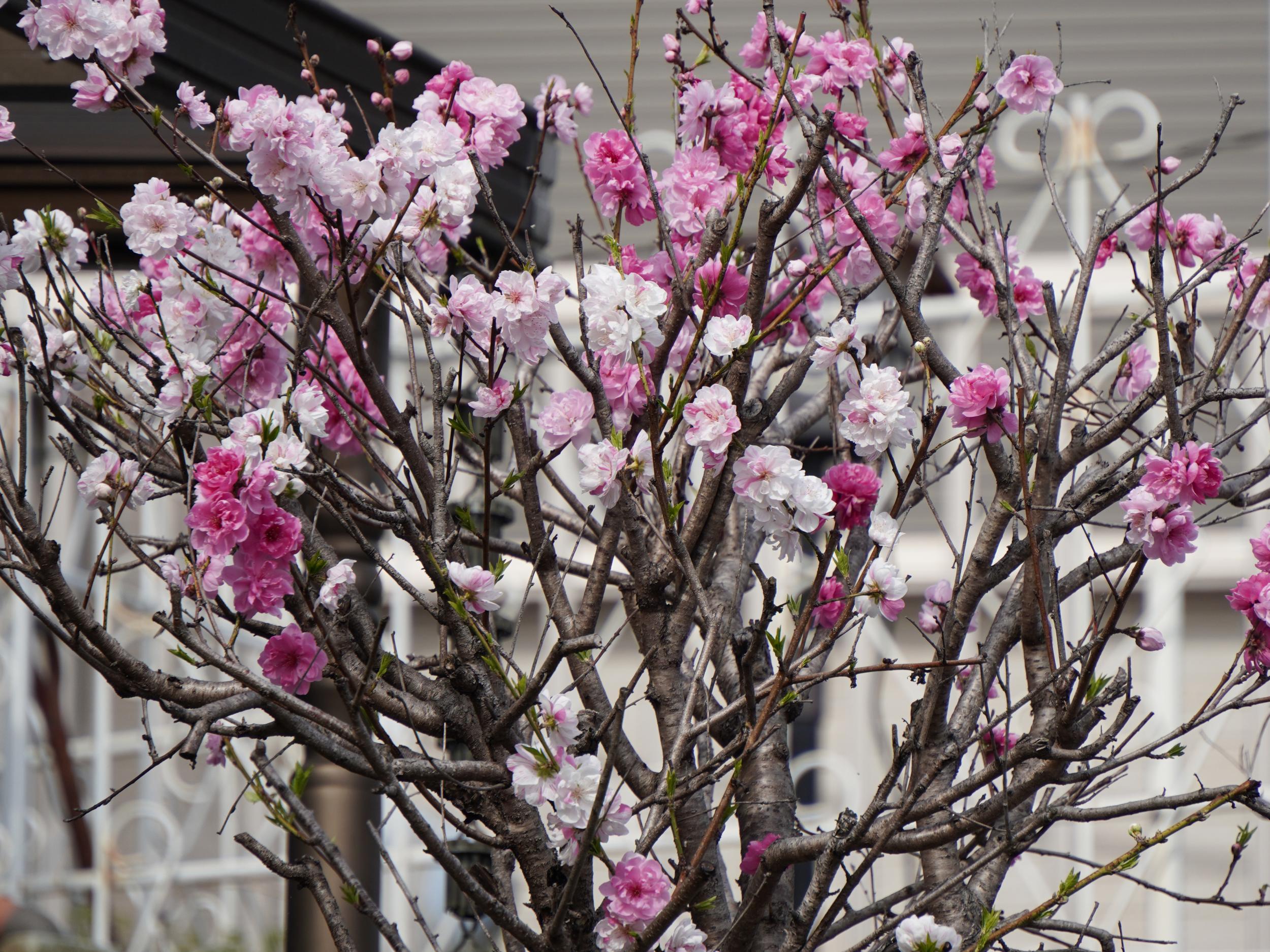 ソメイヨシノの後に出番が回ってくるはずのヤエザクラがもう満開。
