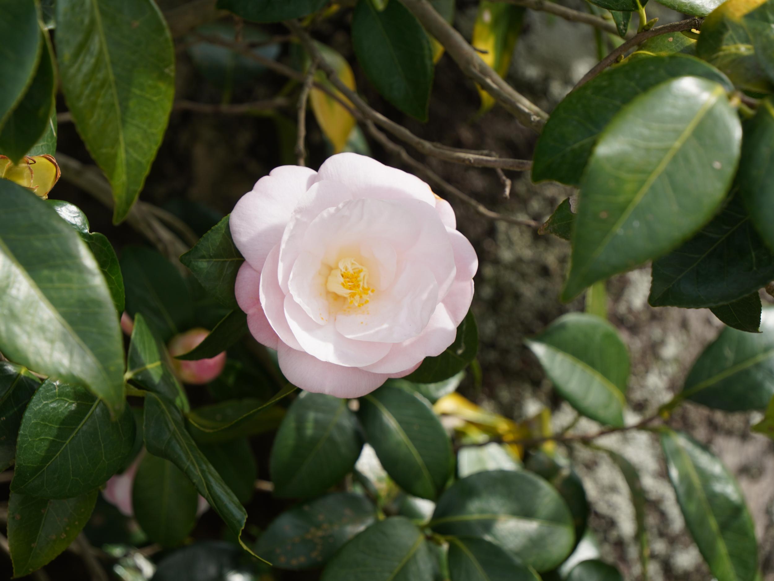 ほんのりピンクのツバキともう少しピンクのツバキ。