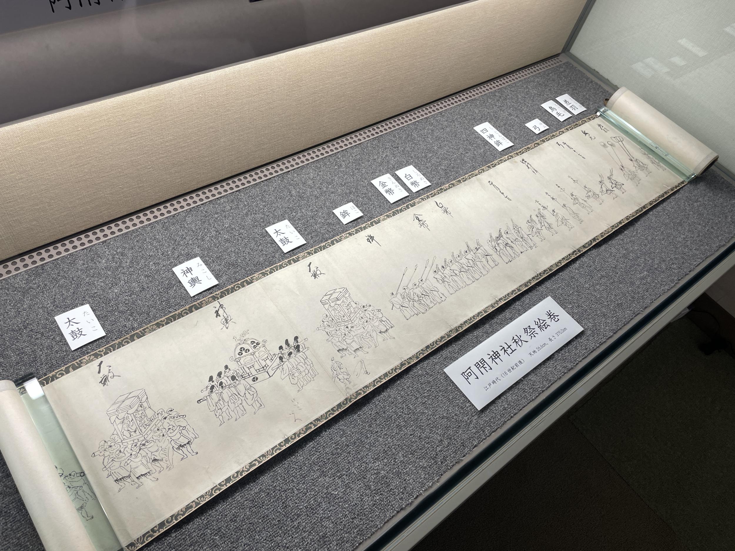 阿閇神社秋祭の絵巻(江戸時代)、今も毎年10月に行われていて、泉州や河内のふとん太鼓のような屋台や神輿がオポナカムラを練り歩く動画がアップされていました。