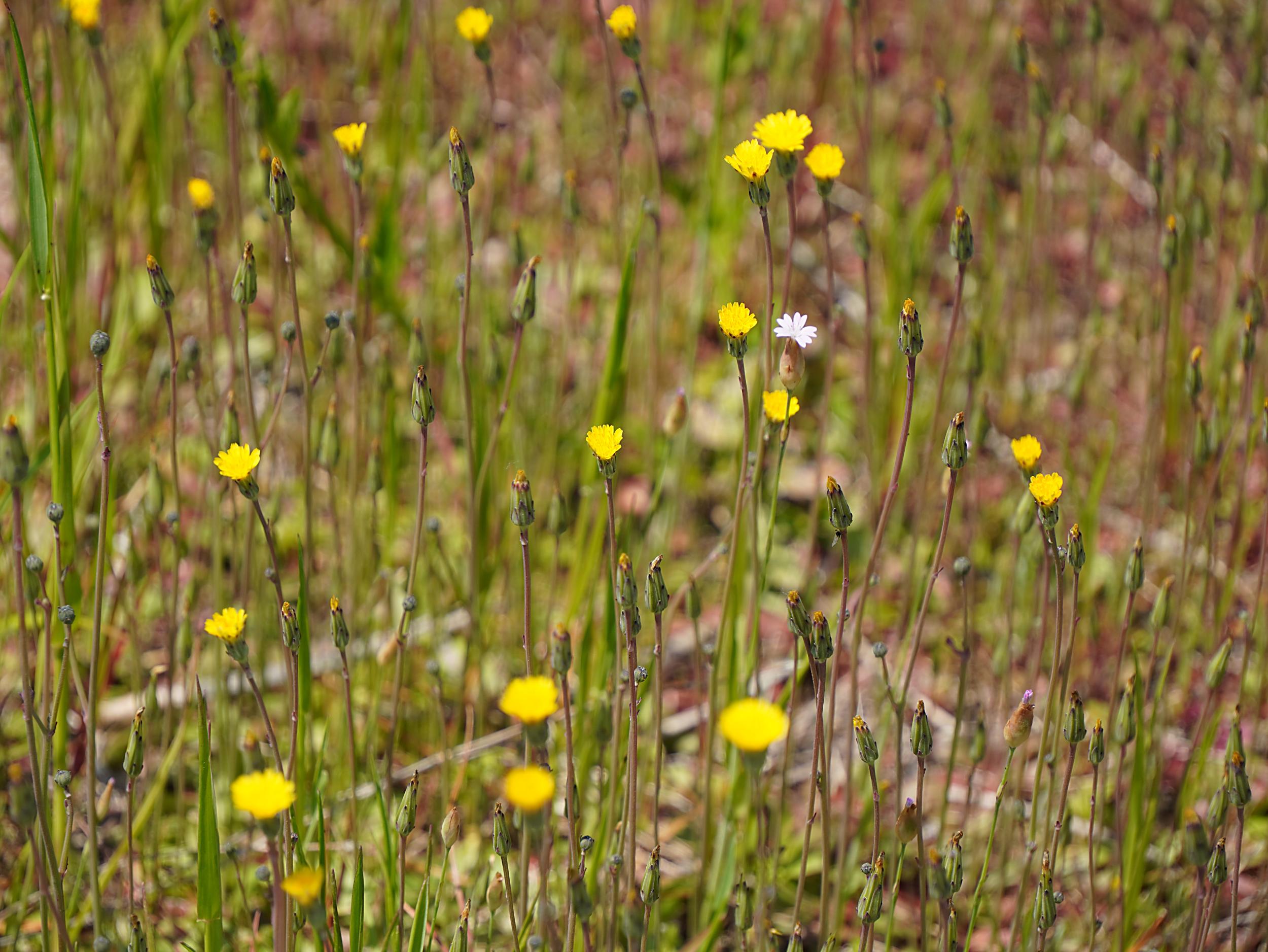 イヌコモチナデシコとヒメブタナ、いずれも帰化植物。いわゆる雑草の花ばかりですが、色んな色や形の小さな花がいっぱい咲いているのは楽しい。