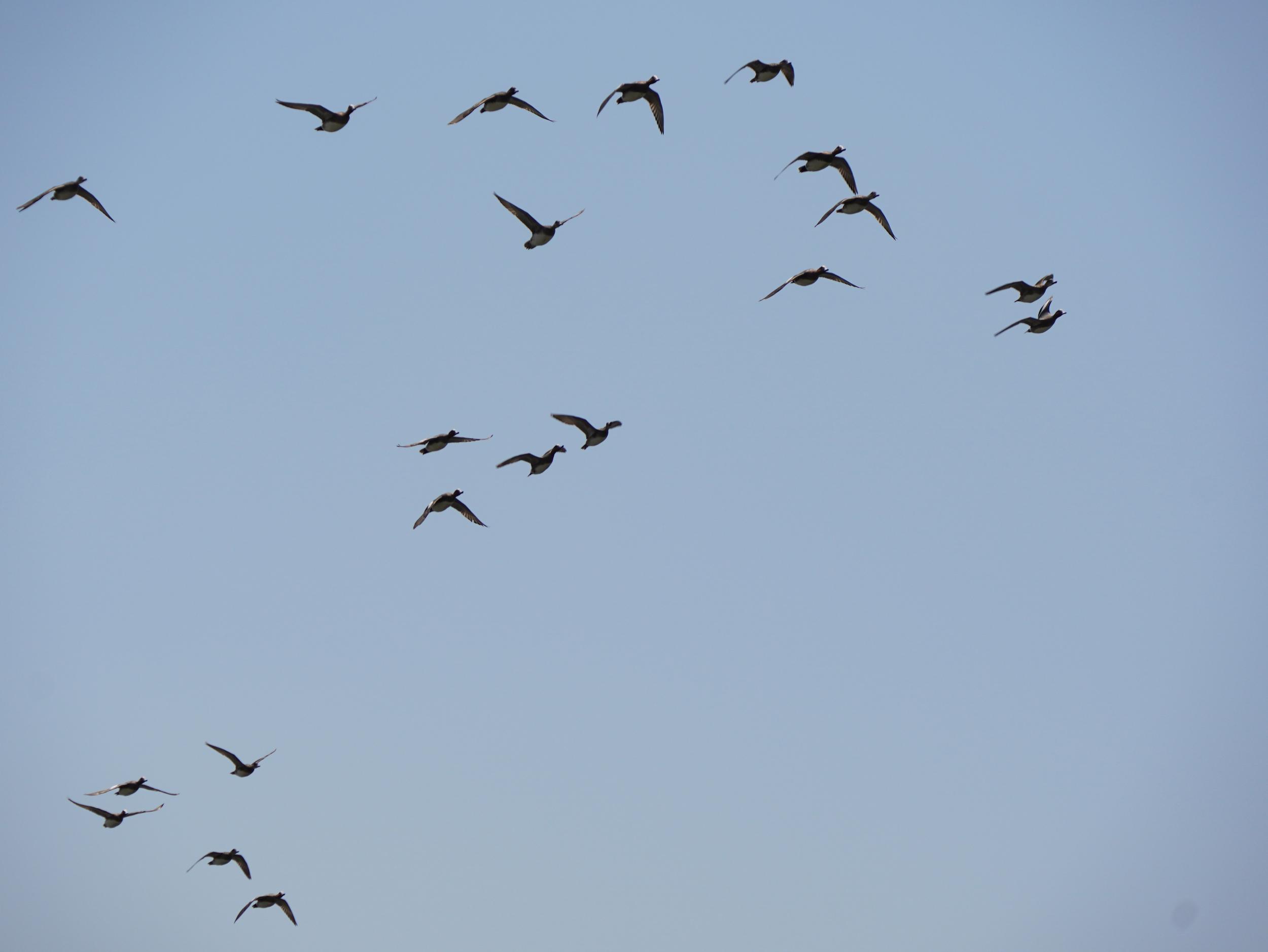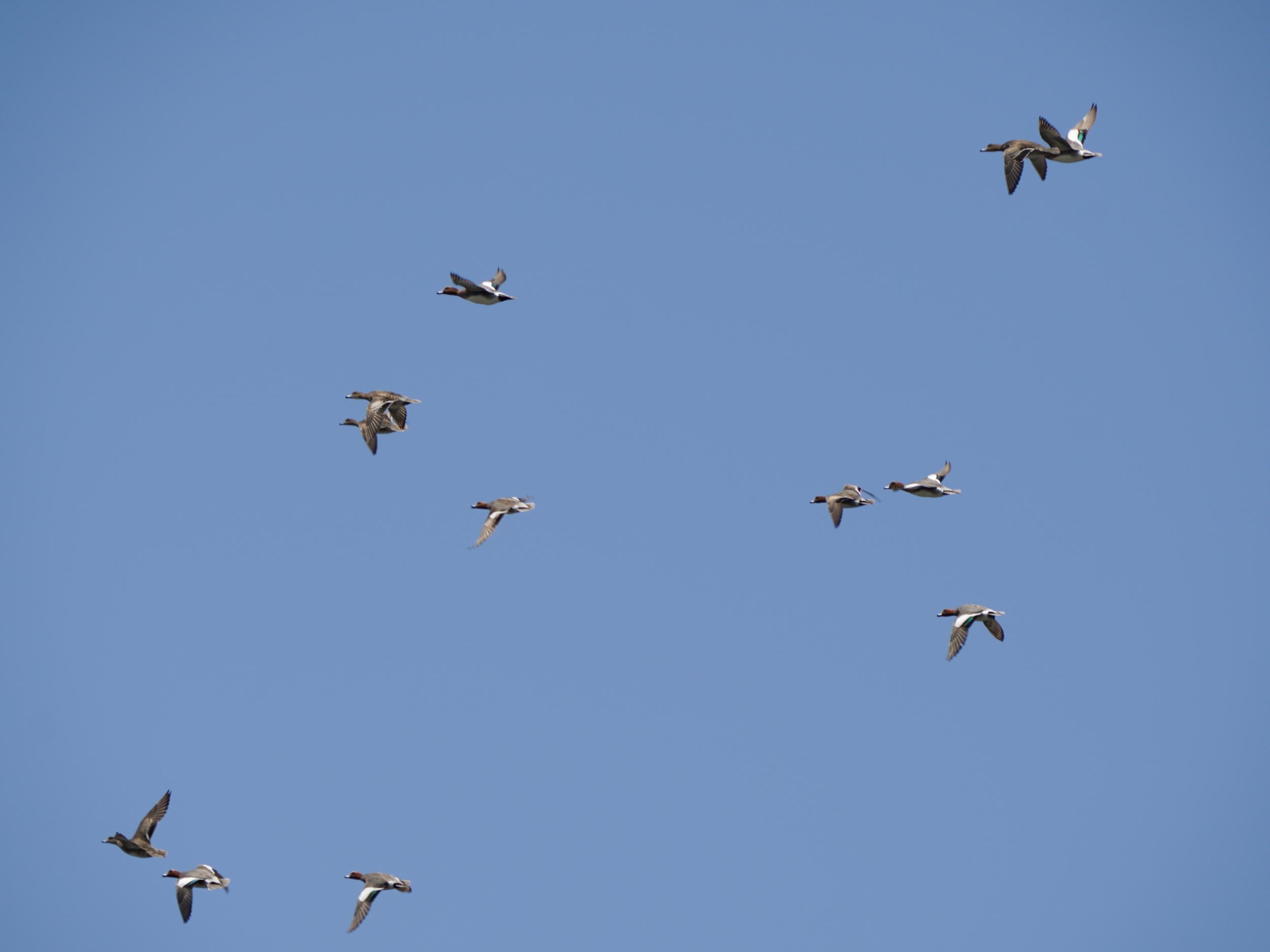 上空にやってきた団体はまだ北帰しないヒドリガモ。