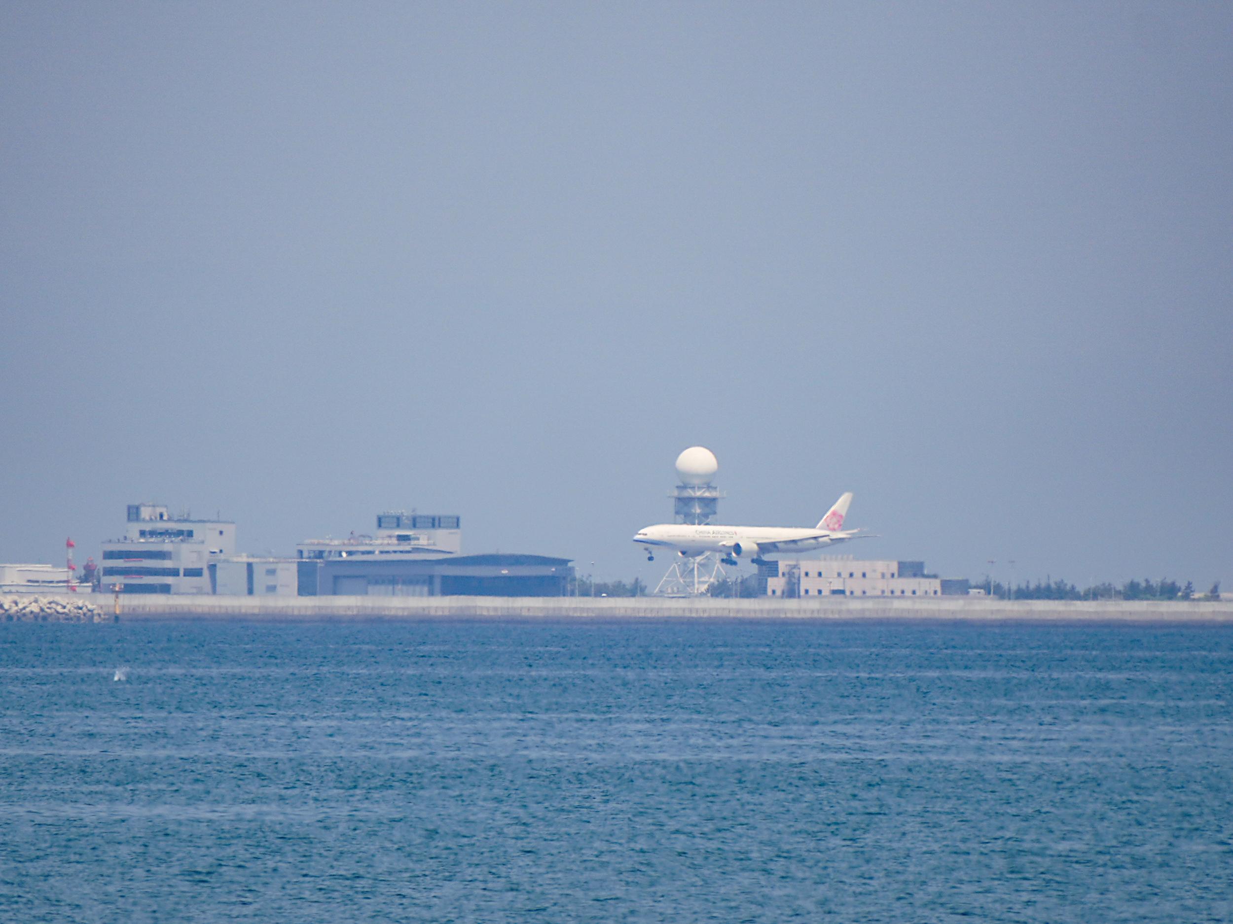 テトラポッドの向こうにさっき到着したチャイナエアB777-300。