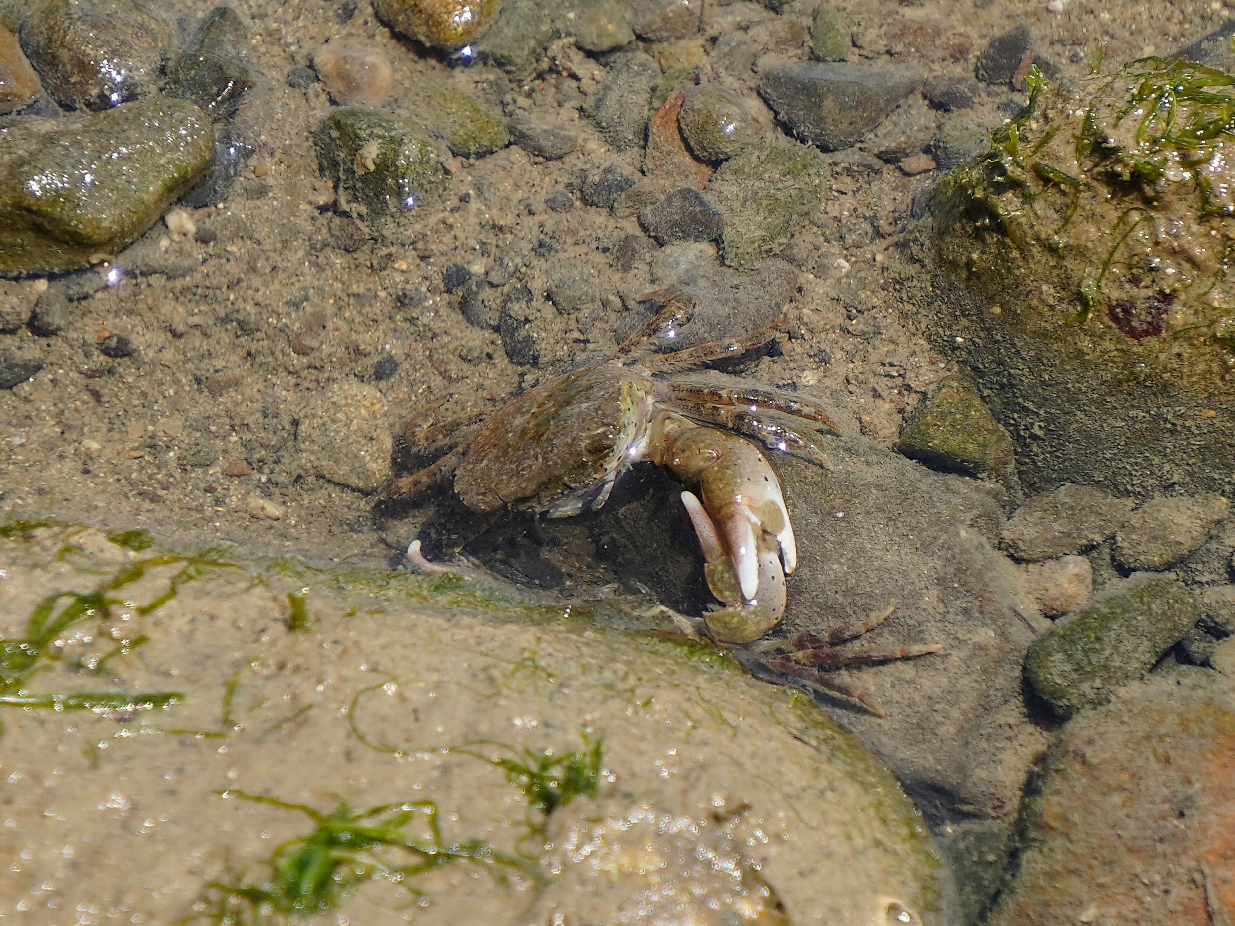ヤマトオサガニよりはるかに大きいアシハラガ二。甲羅の縁にリベット状のツブツブが並ぶ強そうなカニです。