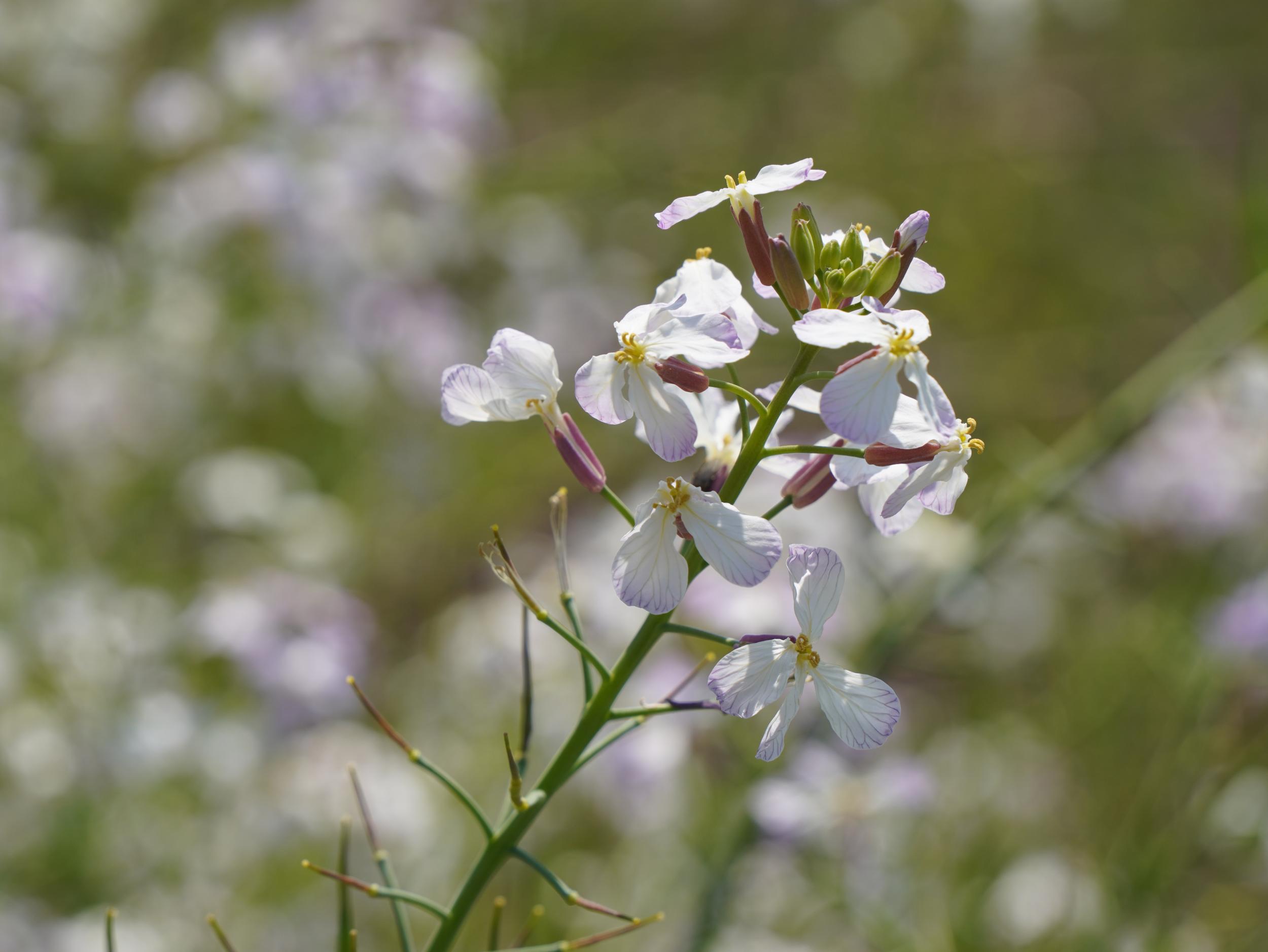 ハマダイコンがいっぱい咲いていました。いい感じにクローズアップ、後ろがボケて満足の1枚。