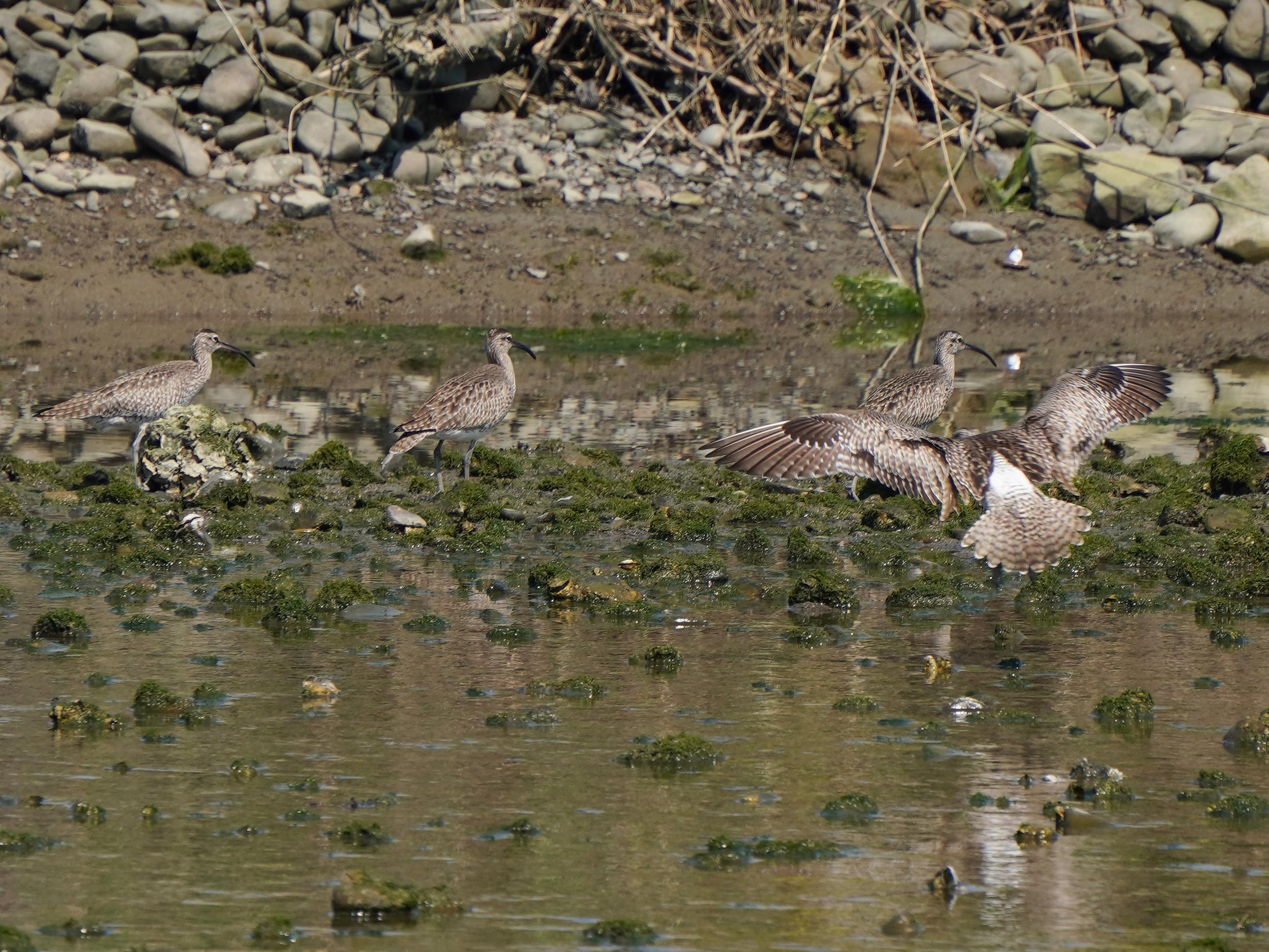 チュウシャクシギたちはのんびりモードに。