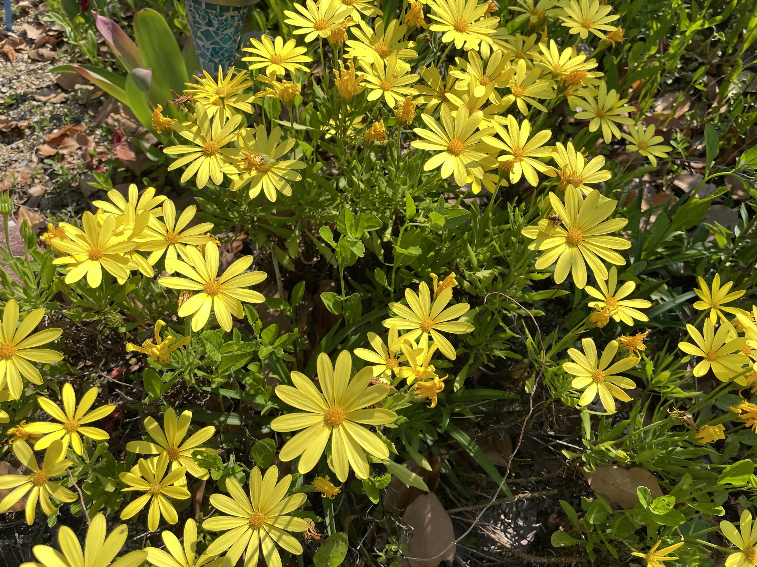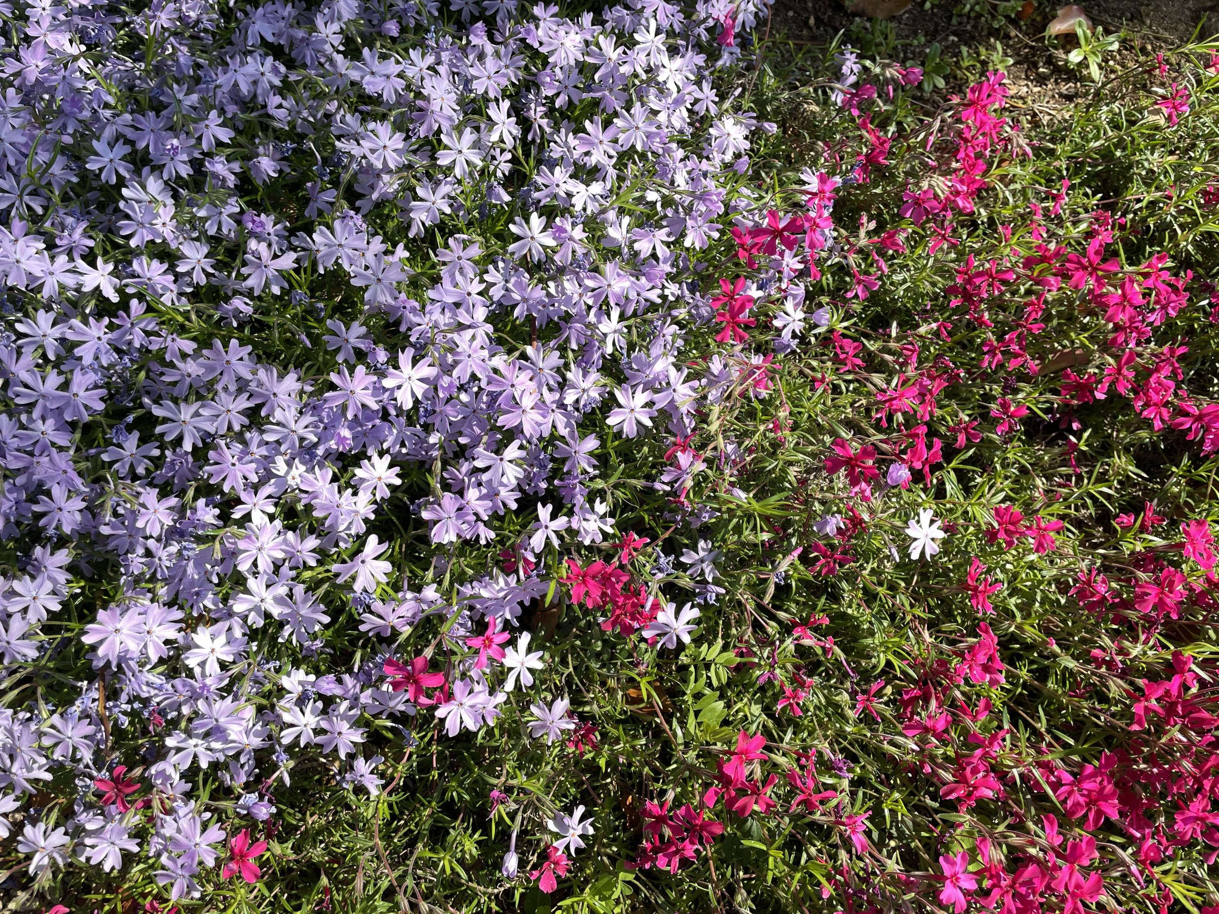 2色のシバザクラとユリオプスデージー。