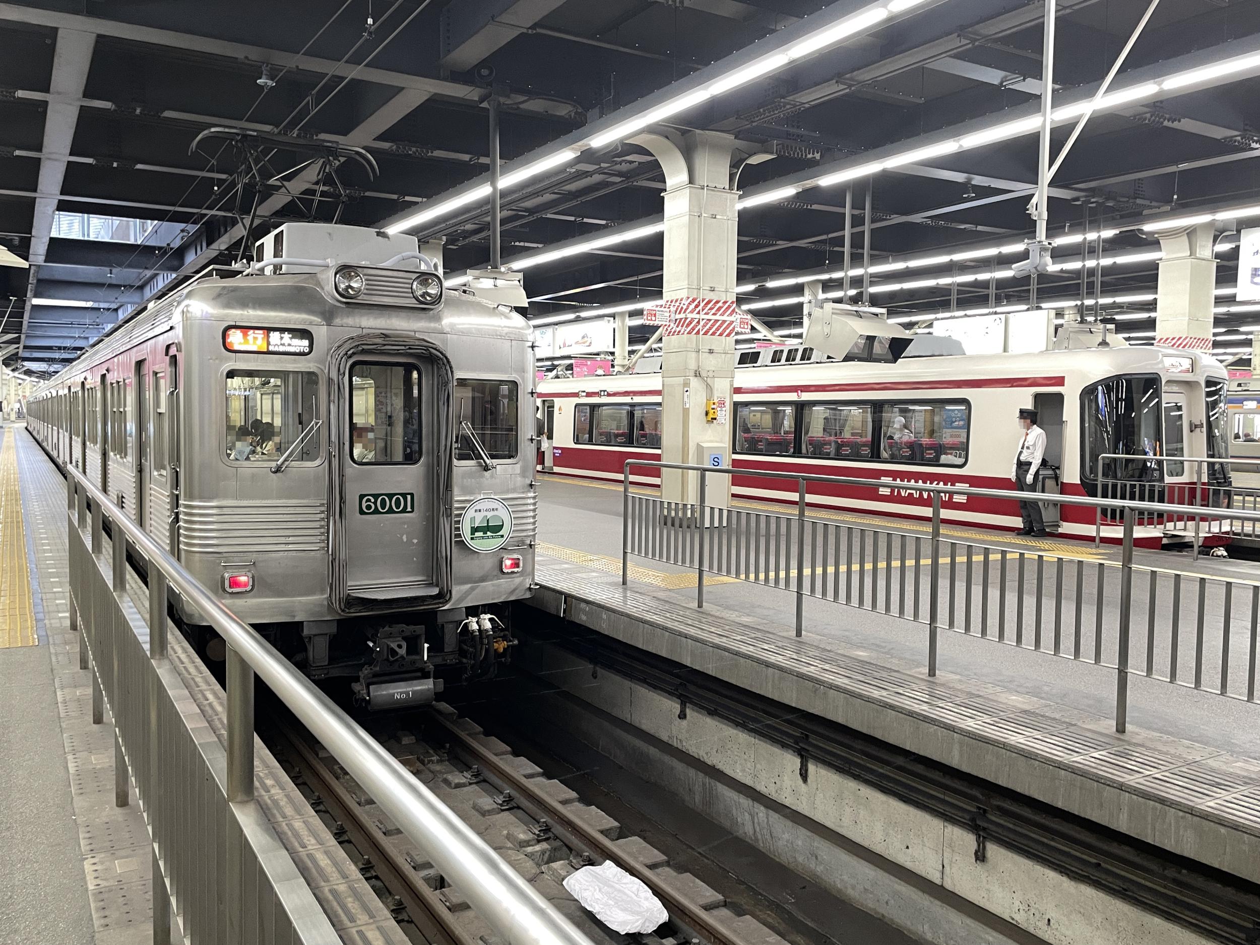 難波に到着すると無塗装6000系が橋本行急行になってました。