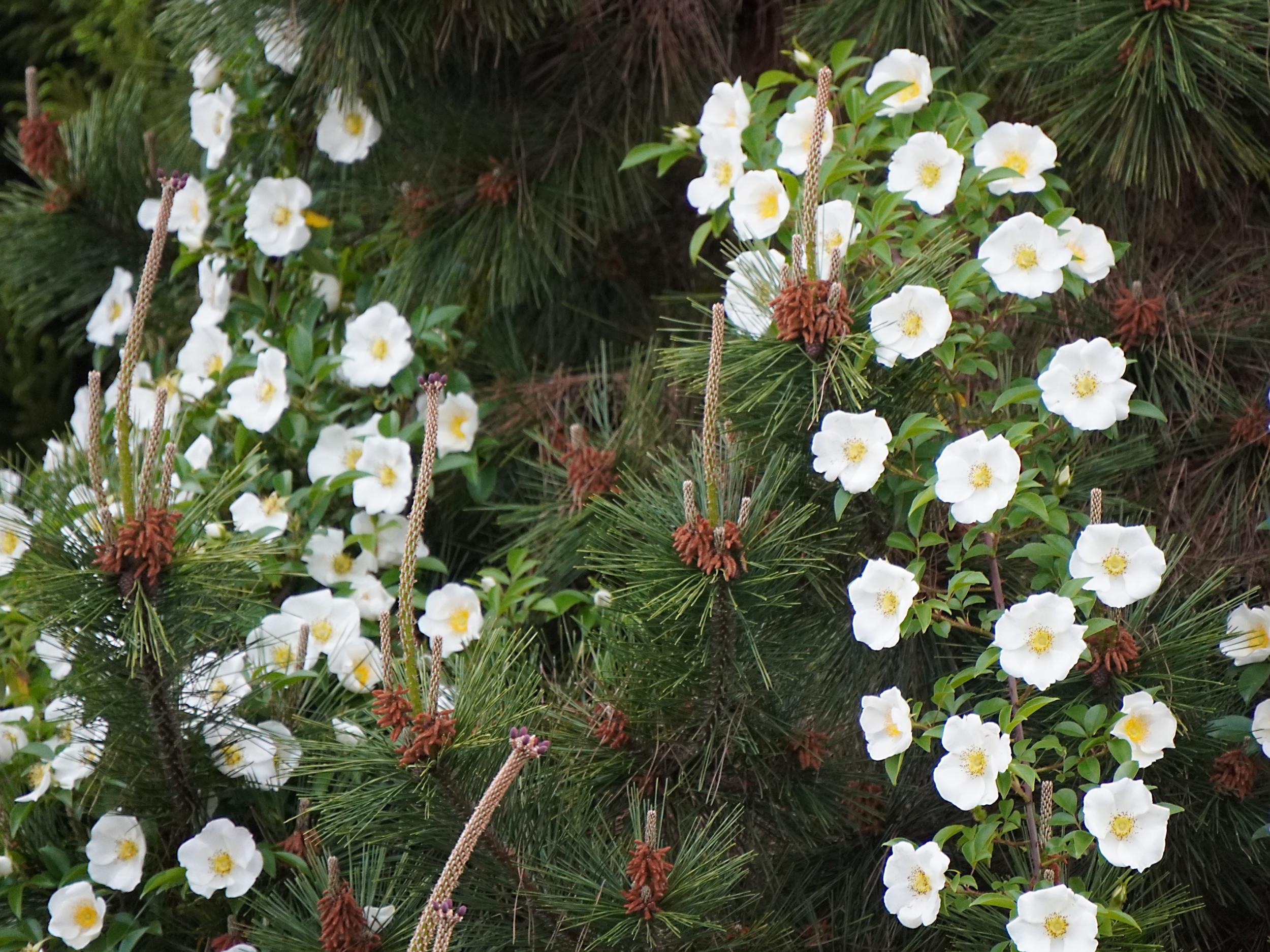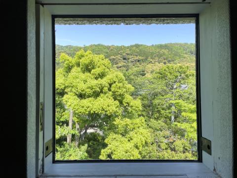 中庭の全景です。画面左上の山に木の生えていないところは大文字山の火床。中庭の向こうは企画展示「リニューアル記念名品展Ⅰ帰ってきた泉屋博古館 いにしえの至宝たち」開催中、写真NGなのでさっと見ただけで何を見たかあまり覚えていません。メジロやヤマガラがいっぱい止まっているカイドウの木が描かれた伊藤若冲「海棠目白図」が展示されていたと帰ってから気づいて悔しい思いをしたくらい、青銅器に集中してしまったようです。