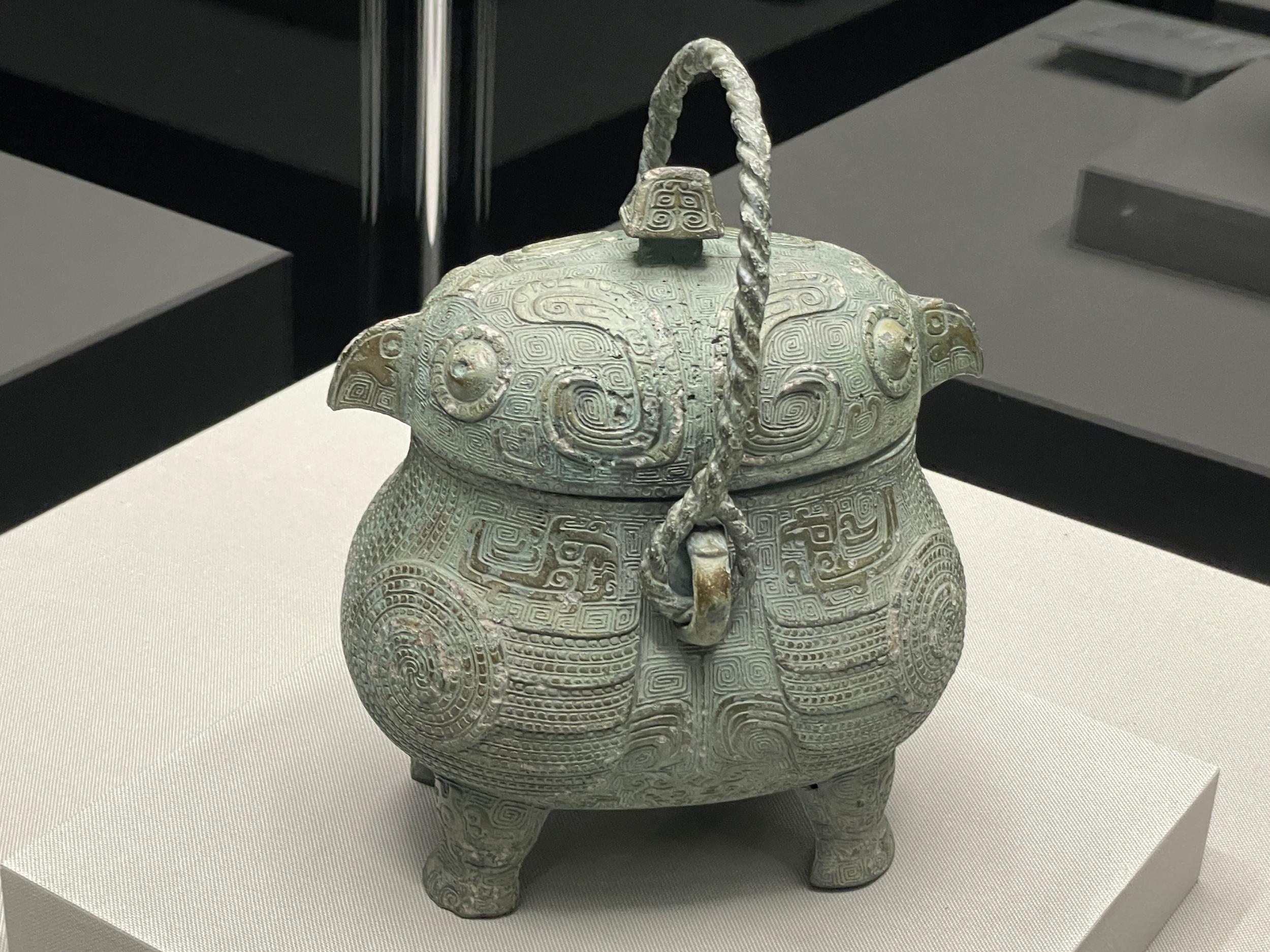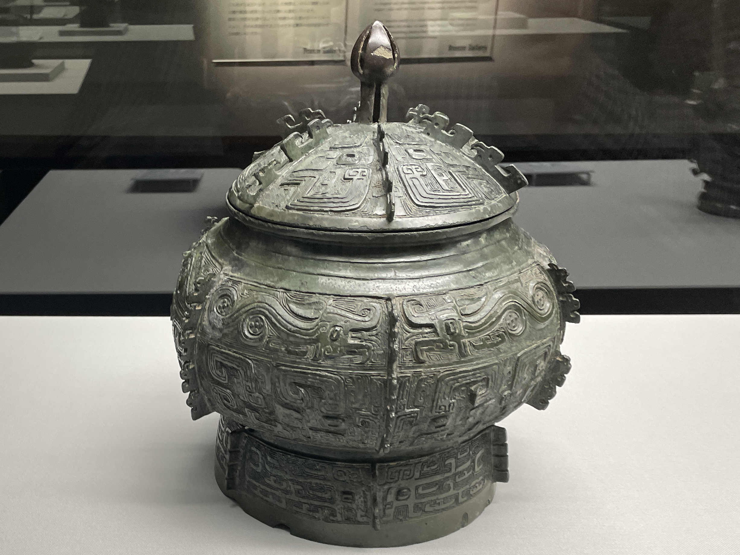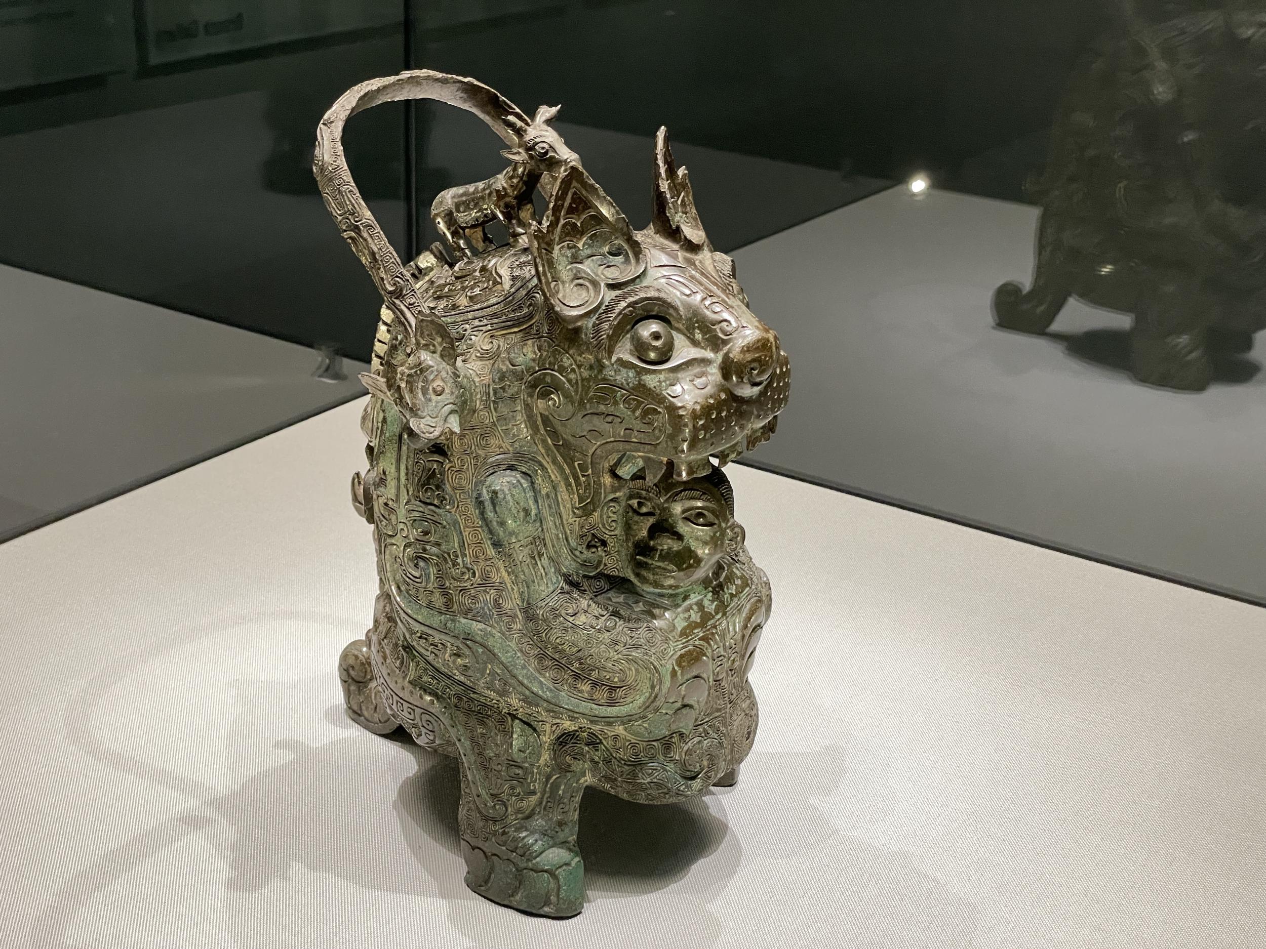 給茶機が置かれていて、ゆったりしたソファに腰掛けジャスミンティーをいただきながら外の緑で目の疲れを癒します。見てきた展示品に「複製」や「復元」の表示はなく全てホンモノ、それにツギハギの跡とかも見当たらず、極めて状態のいい青銅器の数々、古代のエネルギーがストレートに感じられるホンモノを堪能させてもらいました。