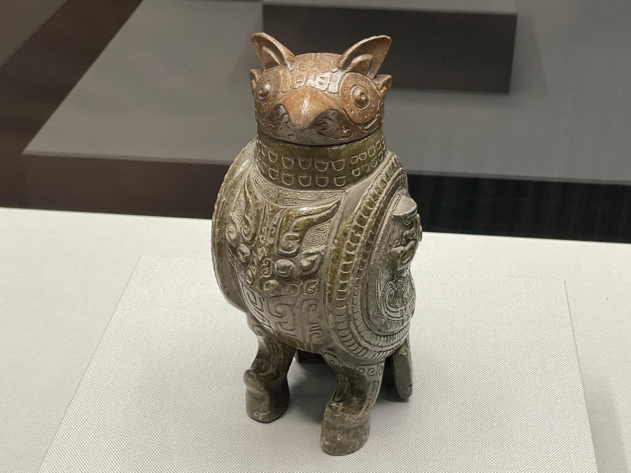鴟鴞尊(しきょうそん、紀元前13-12世紀)と戈卣(かゆう、紀元前12世紀)、架空の動物の饕餮と並んで、実在のフクロウも大人気。殷周青銅器器種一覧で尊は酒を盛る器、卣は酒/香草の煮汁を盛る器と確認できます。