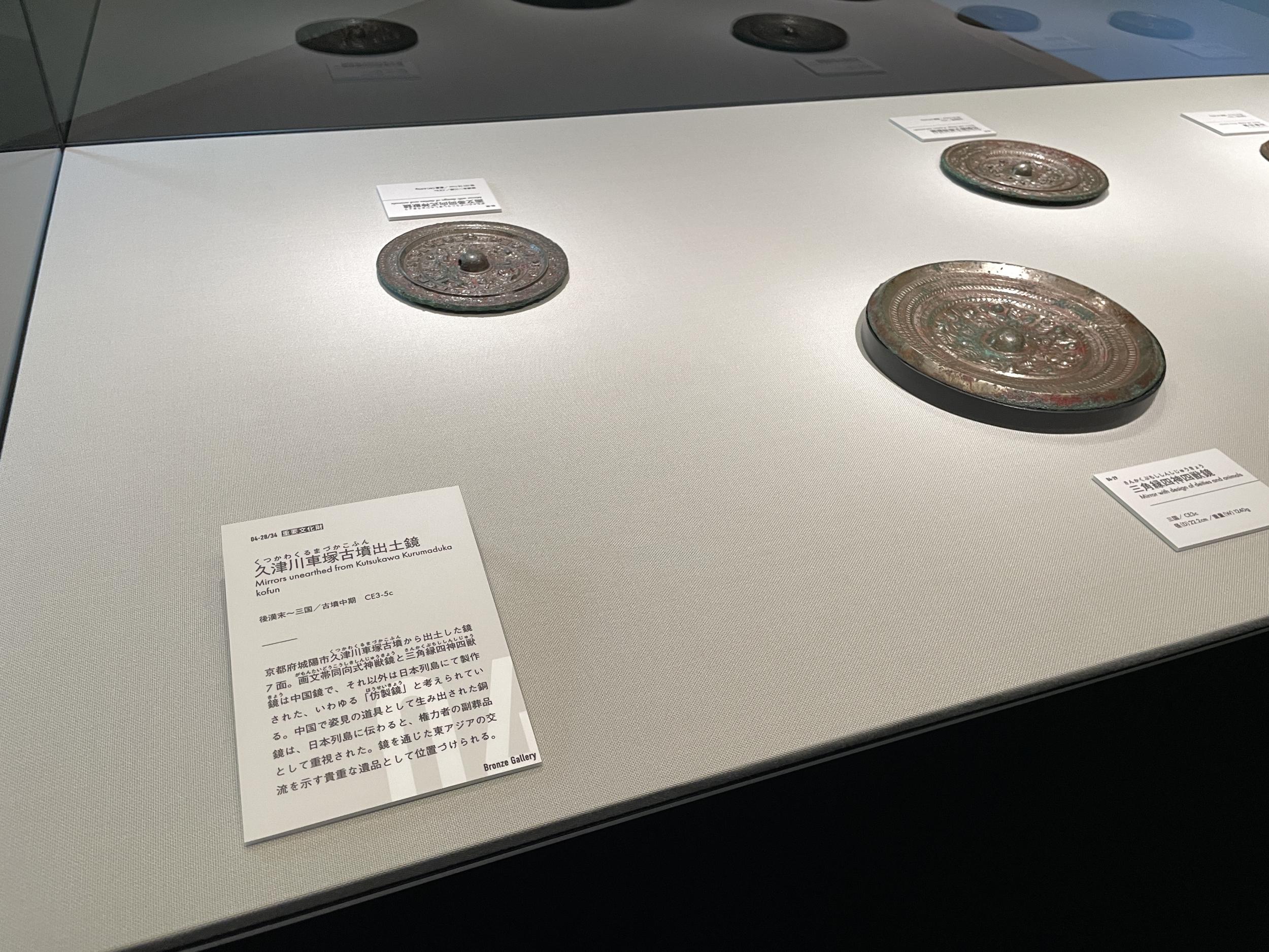 小さな窓があるだけでぐんと明るい4つ目のフロア、まずはオリンピックの表彰台のように並ぶ3枚の銅鏡。