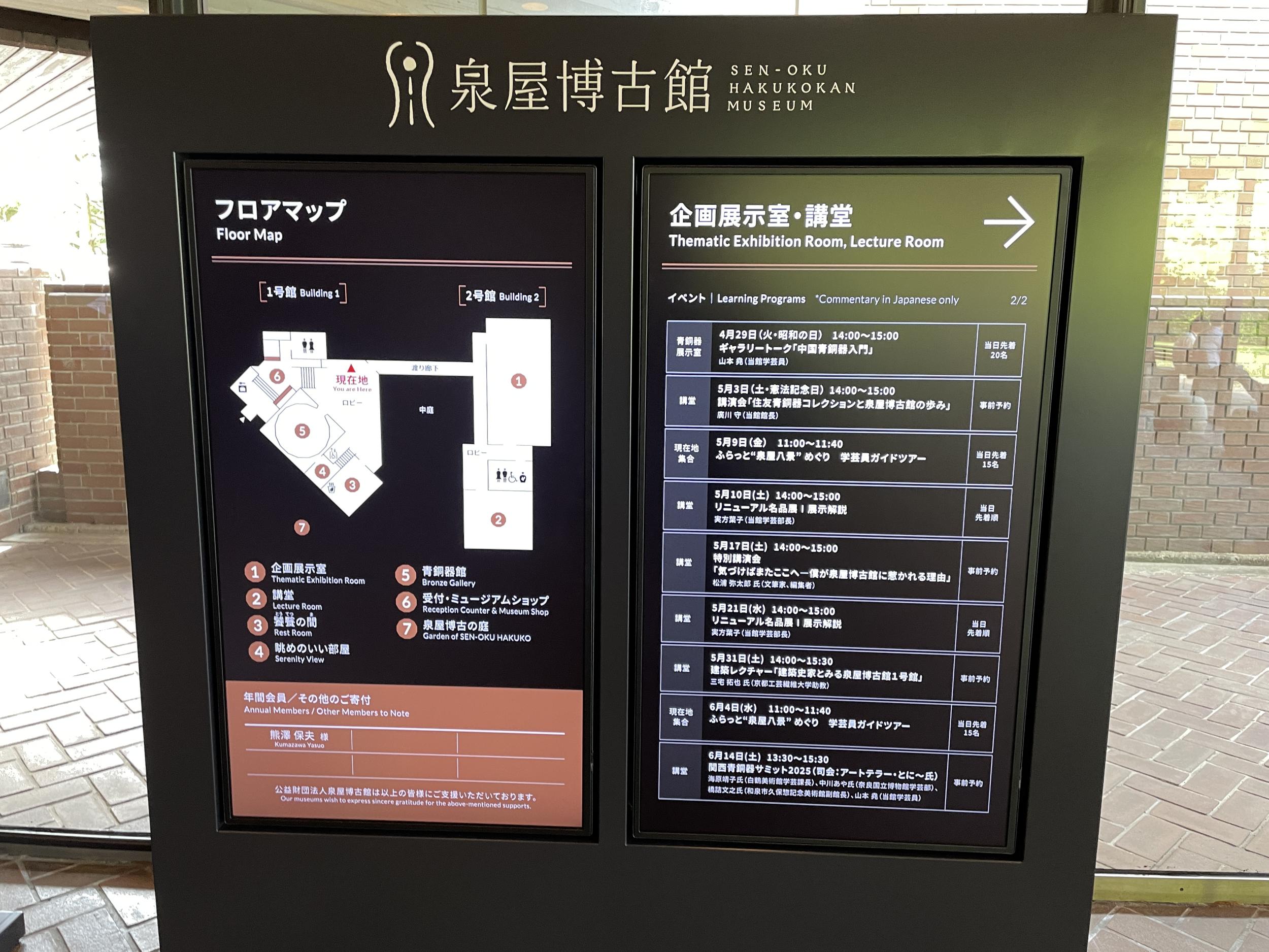 フロアマップで円形の⑤青銅器館と、銅鏡メインのフロアの④眺めの良い部屋の位置関係を確認できました。若冲は見逃したものの学ぶことが多くそれにとても居心地が良く大満足の美術館、今までに訪ねた博物館美術館でも頭抜けてハイレベル、こんどはあまりガツガツせずにゆったりした心持ちで再訪していみたいと思います。