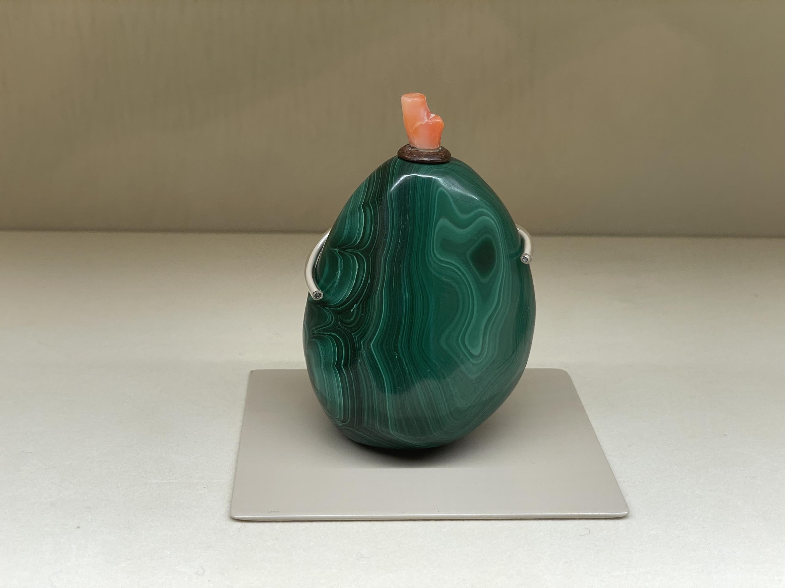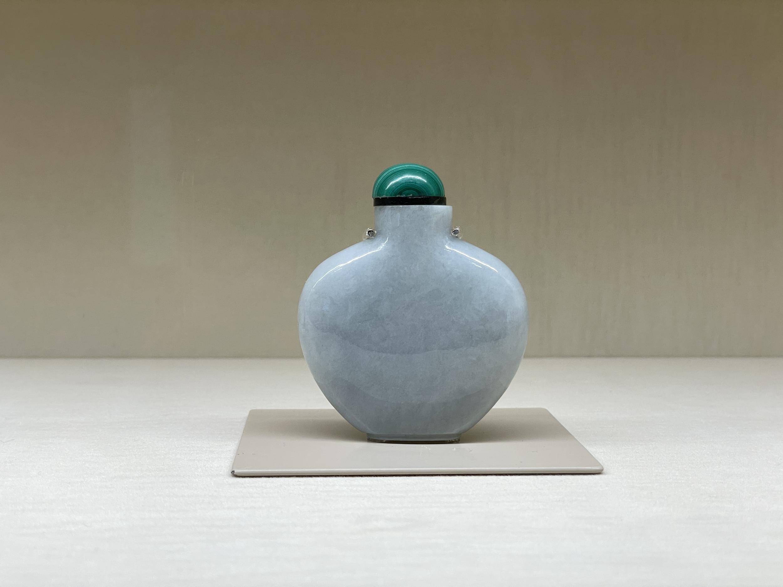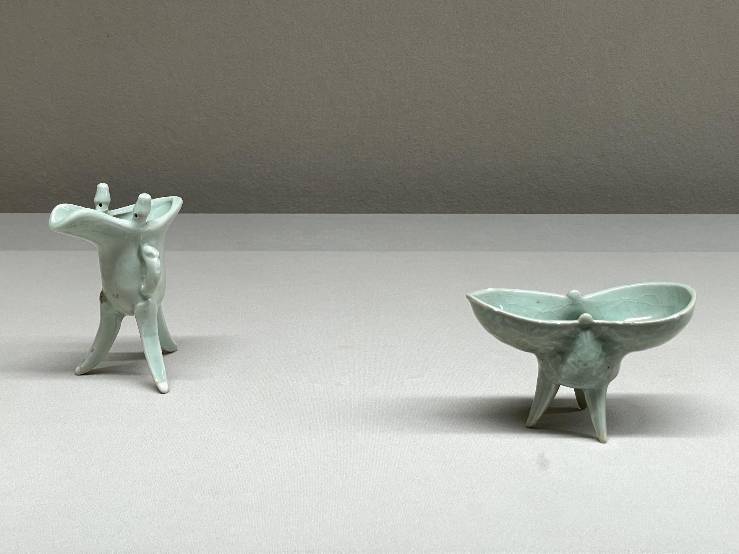 国宝 飛青磁花生(とびせいじはないけ、元・14世紀 / 龍泉窯)、龍泉窯は浙江省龍泉市で盛んに青磁が生産された窯。鴻池家に伝来の品が安宅コレクションとなり住友グループを通じ大阪市に寄贈。本来酒器だったものが日本では花瓶として珍重されたらしい。キャッチフレーズは「完璧!」