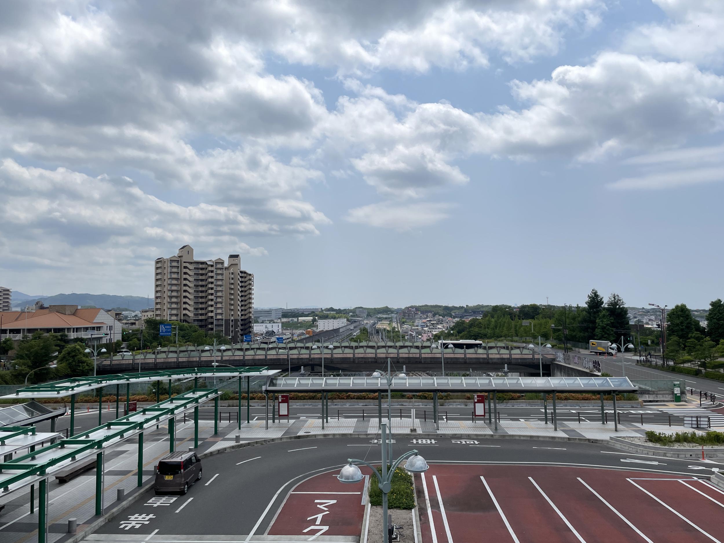 駅南側の眺めです。1kmほど進むともう岸和田市、高層住宅の左手に見える低い丘は神野山、子供の頃何度も上った岸和田市民には馴染み深い山です。中学で一時期だけ陸上部に入っていて、神野山を駆け上らされた記憶があります。400mや800mの中距離を走ることになったものの、短距離でも長距離でもない中距離は超シンドくて、一回だけ大会に出た記憶があるもののあっさり辞めました。