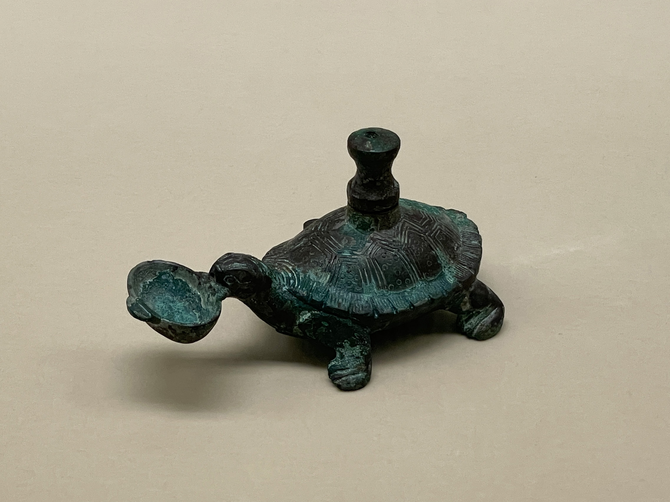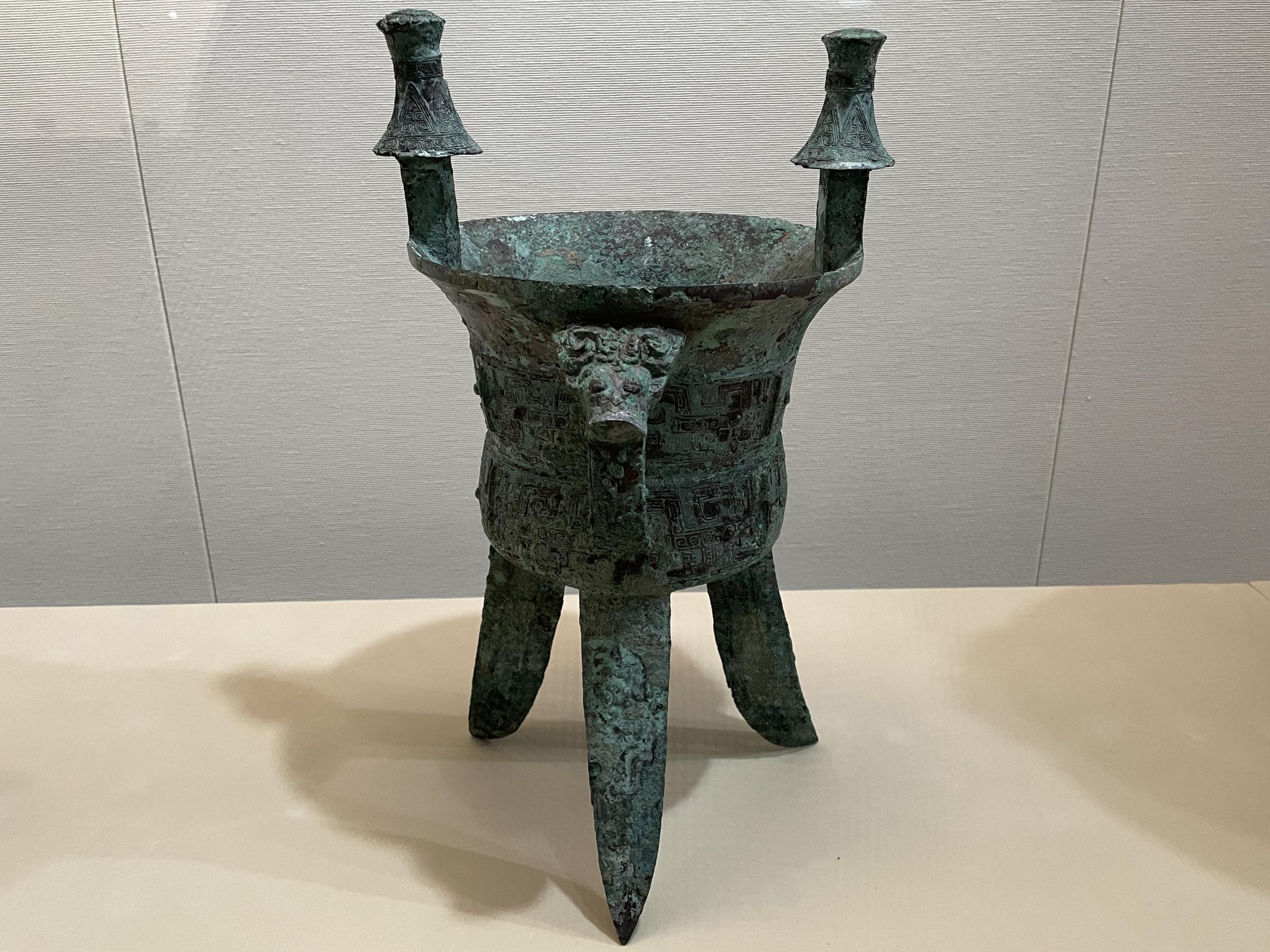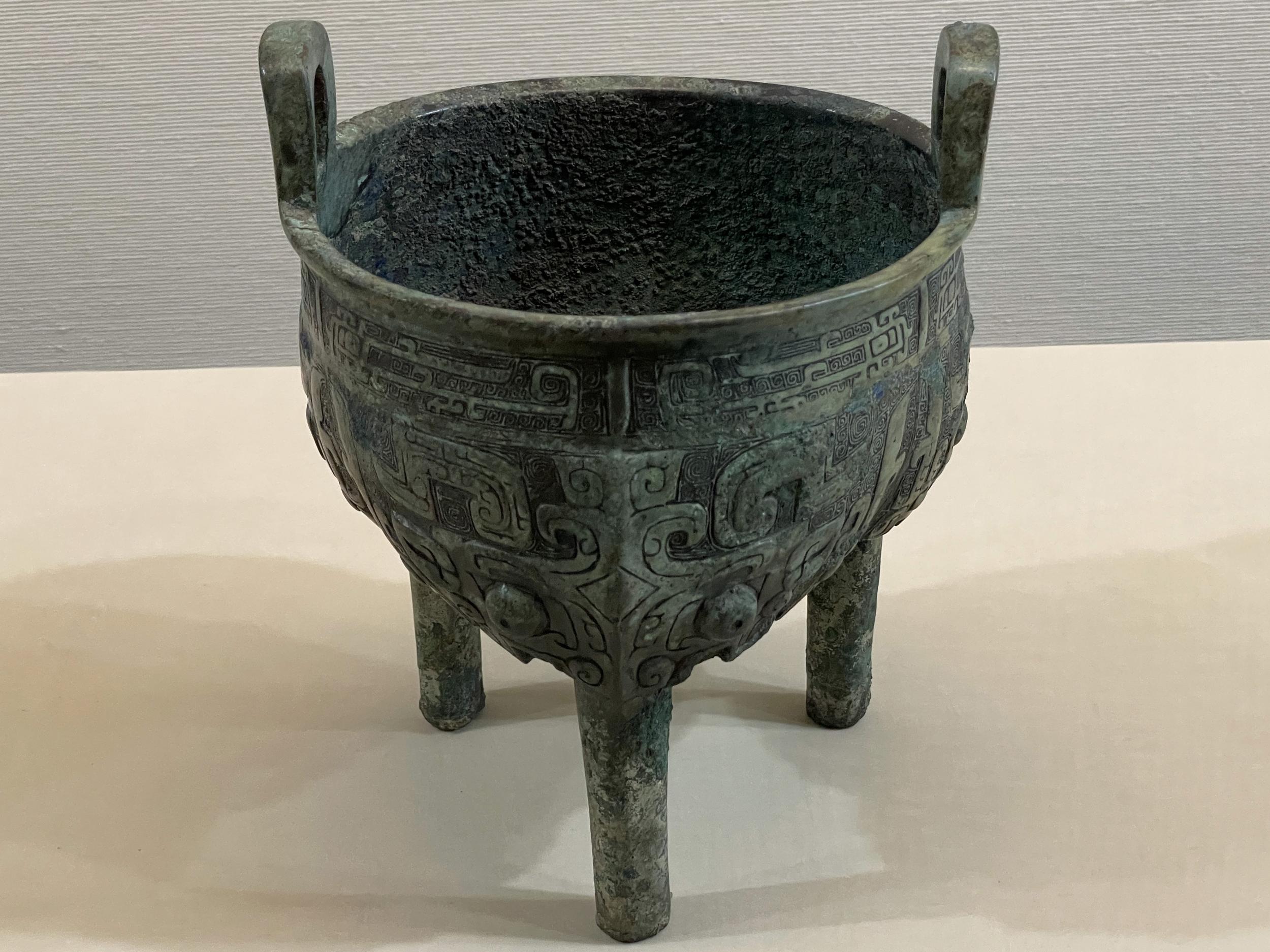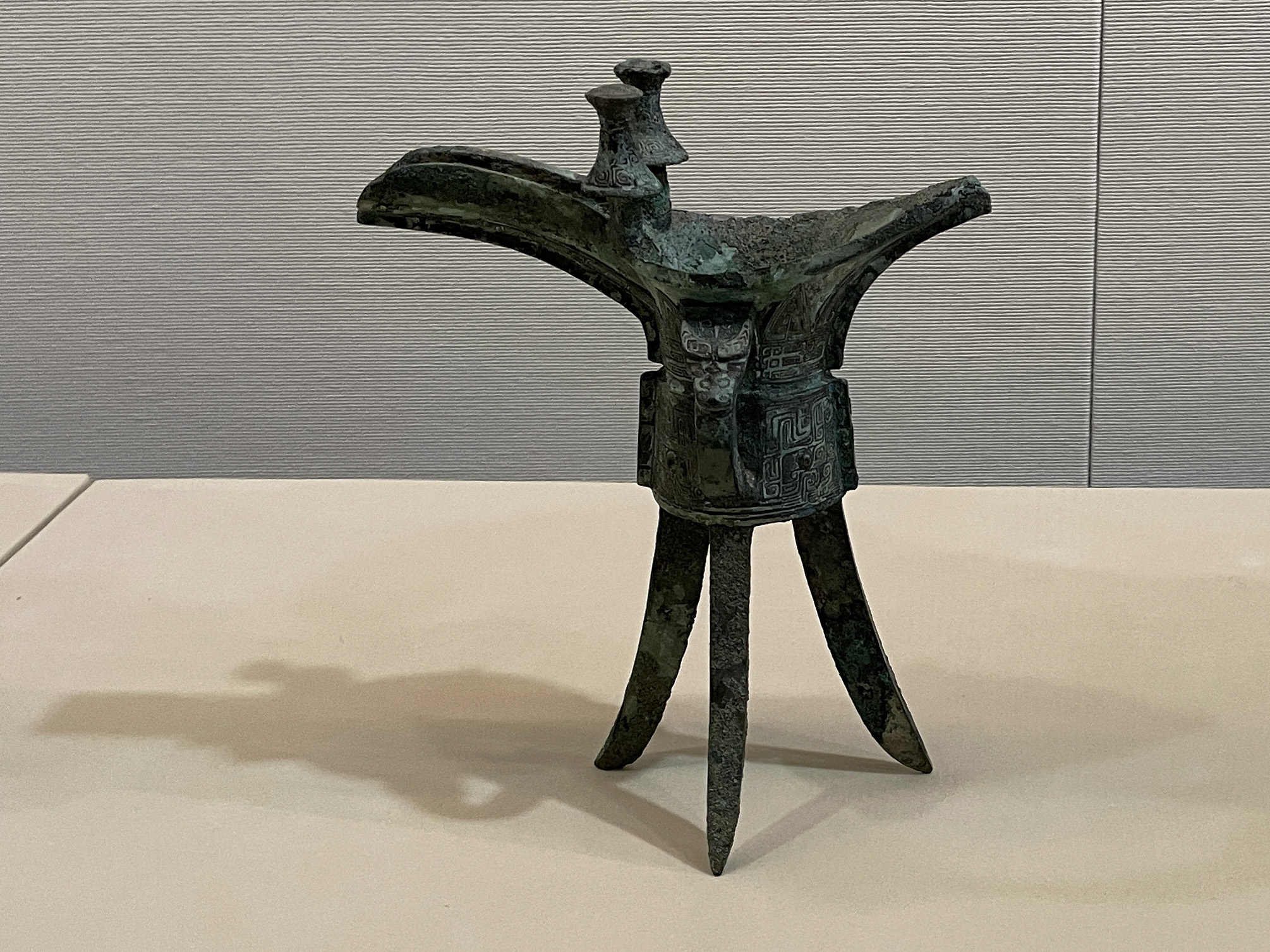 まるで木製のような軽快感を感じさせる顔料で彩色された土器、円文双耳壺(えんもんそうじこ)。新石器時代(紀元前3000〜2000年)と紹介されていたものの、デジタルミュージアムでは甘粛・仰韶文化(紀元前4000−同2000)の後半期とありました。こちらは長江文明ではなく黄河文明。