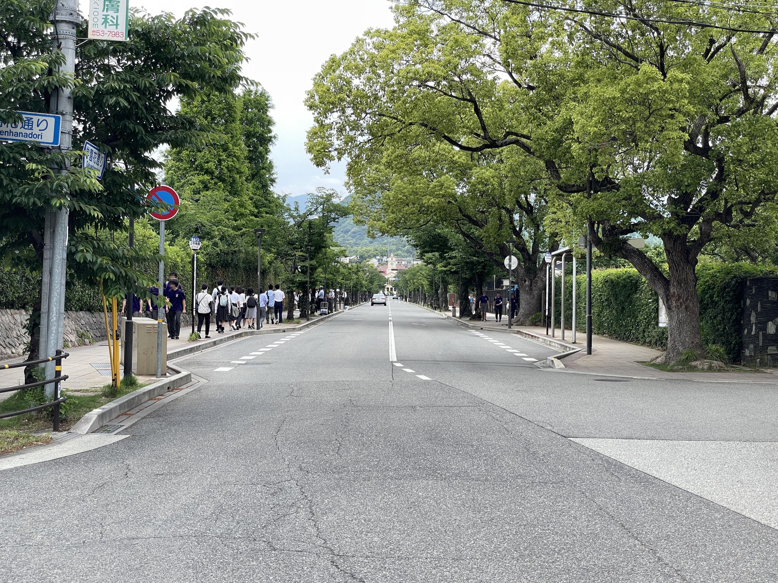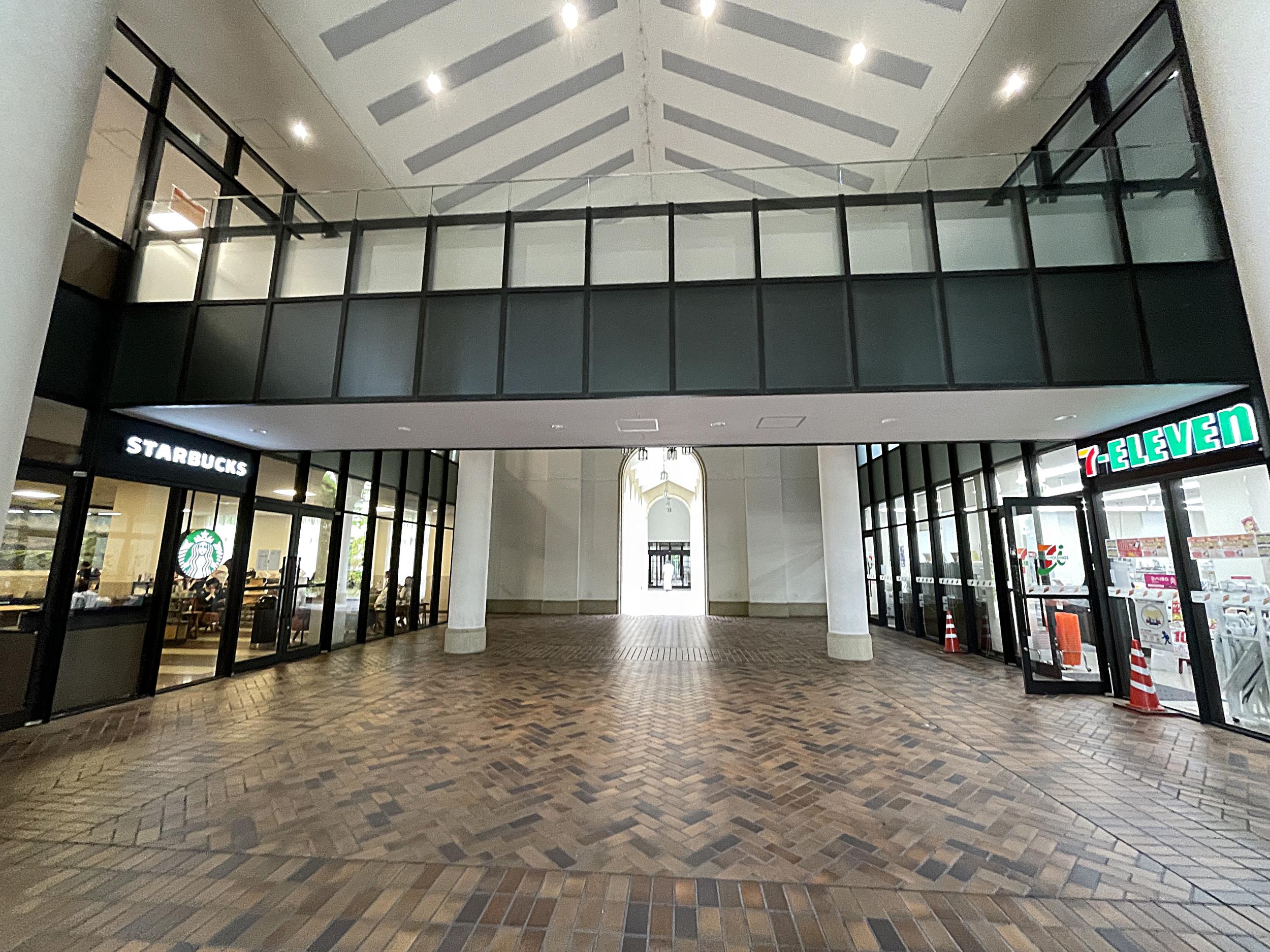 市道沿いの6号館にはスタバとセブン。この奥は2010年開設の国際学部、留学で単位が取れるなど羨ましいものの、調べてみると文学部より偏差値はかなり高め。