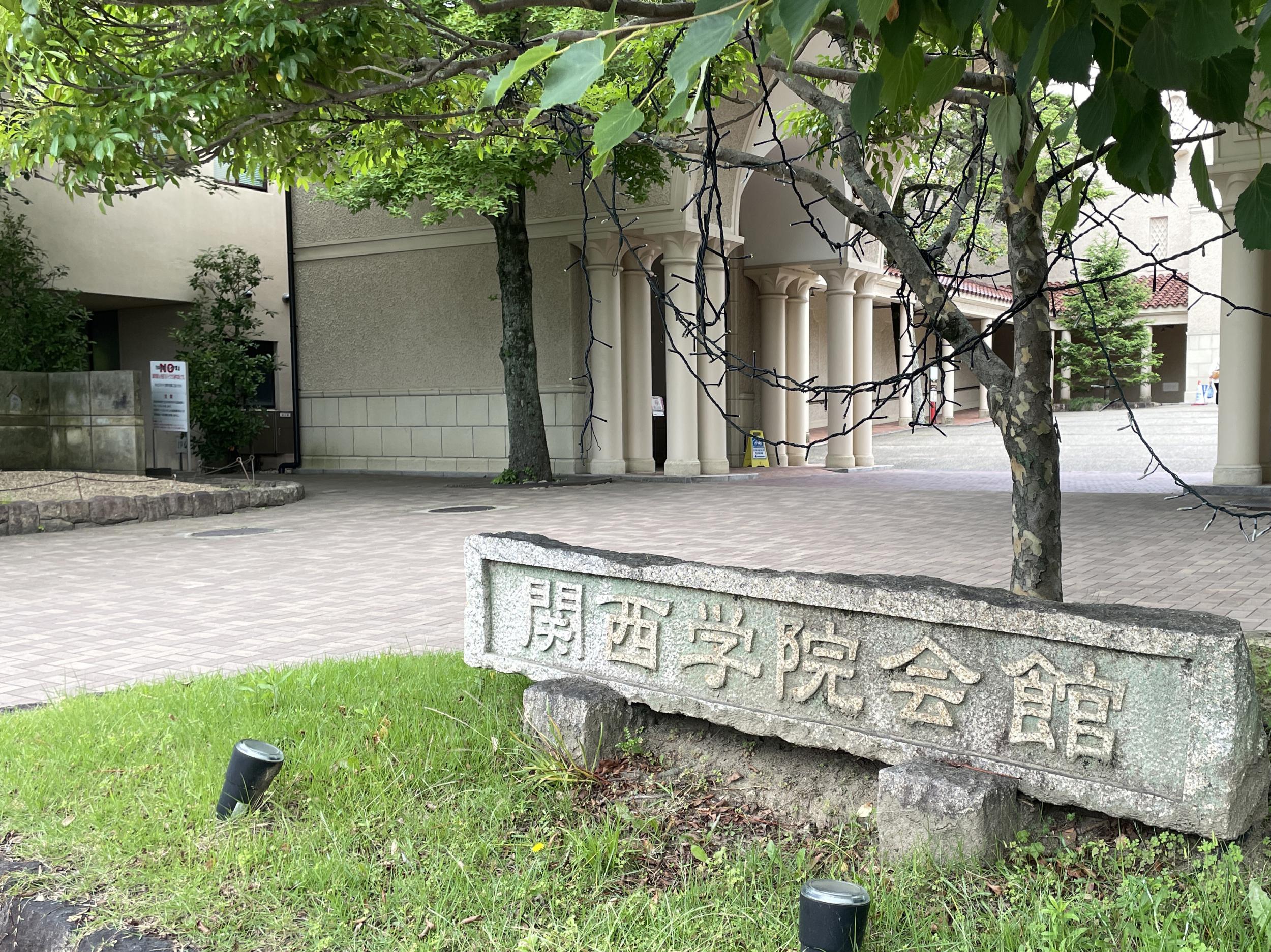 学生会館旧館の西側です。所属していたサークルの部室は市道を渡ったところという記憶はあるのですが、学生会館旧館は1959年竣工、広場の奥にみえる学生会館新館は1984年竣工、新館の場所が部室跡になるようです。関西学院辞典の学生会館を何度も読み返してやっと頭の中が整理できました。