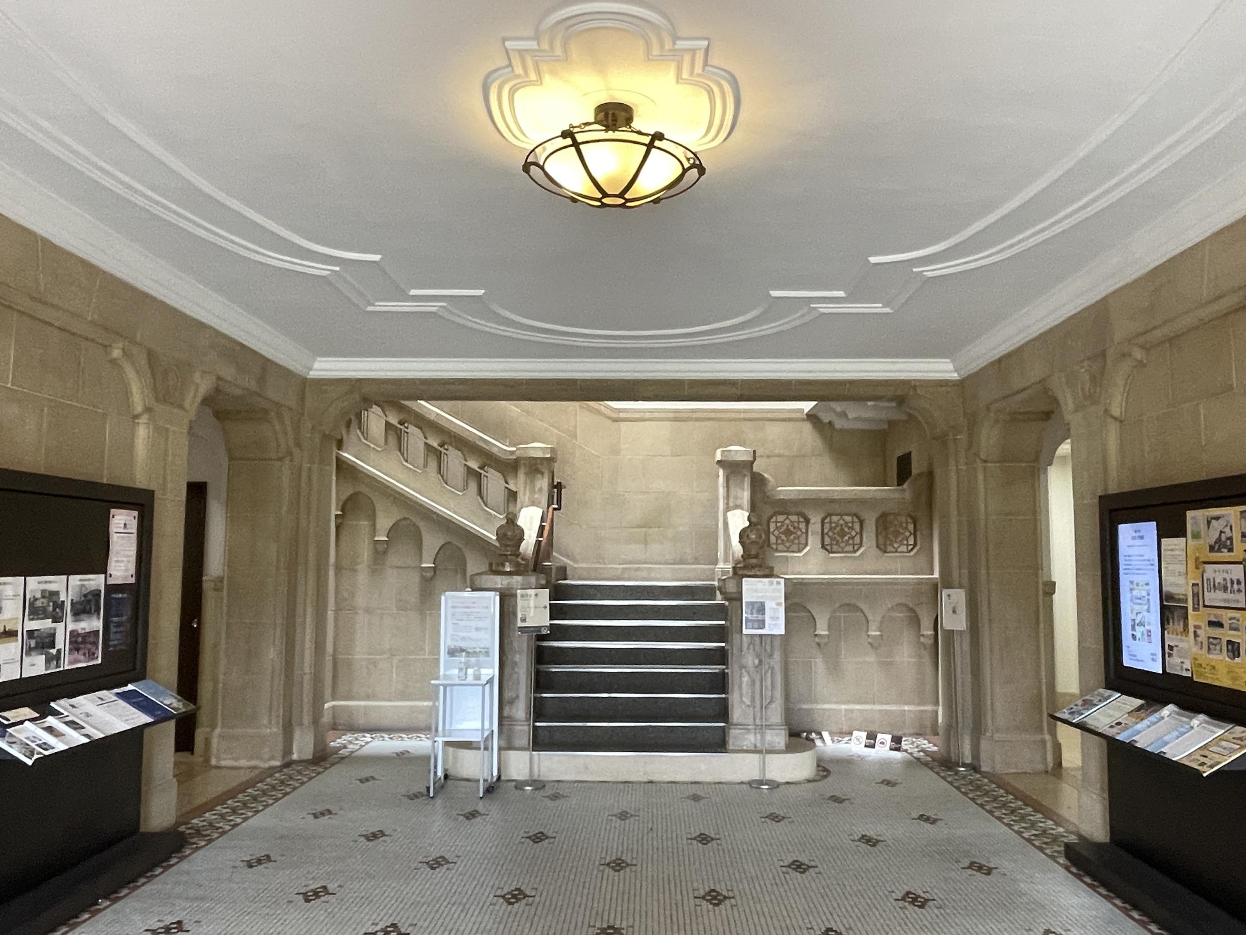 日本の蔵書票展を開催中。学芸員さんらしき係の男性にオハラホールのことを尋ねてみると、さっきの建物で間違いないようです。