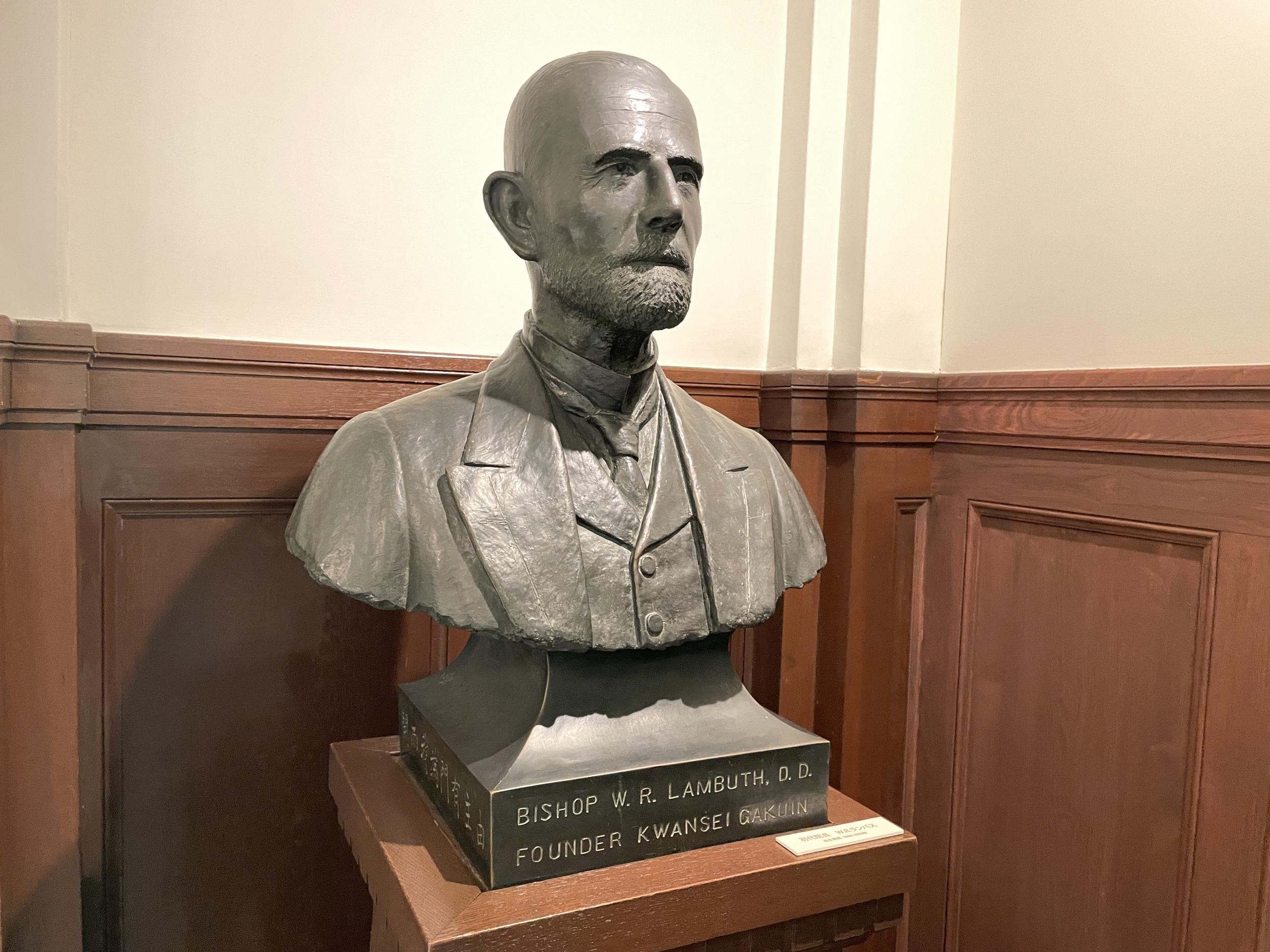創立者、ランバス先生です。もうずっと頭の中では関西学院大学校歌「空の翼」が響いてます。「上ヶ原ふるえ」はそのサビ部分、応援団総部第78代団長濵島正樹君による空の翼で歌詞を確認。
