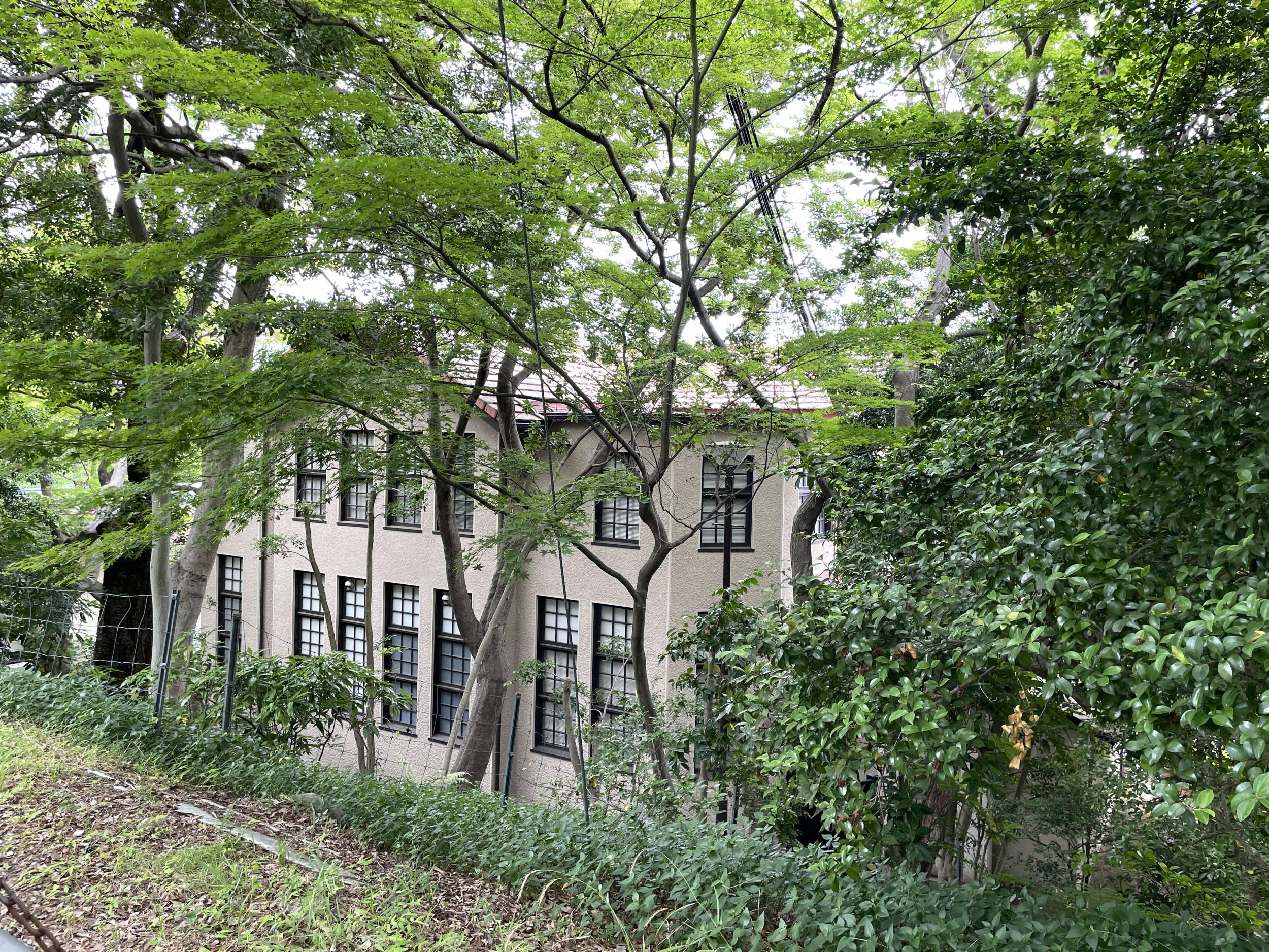 最初の目的地らしき建物を関学会館の裏手に見つけました。何ら案内はないもののたぶんこれが目的のオハラホール。外国人住宅の2号館でオハラ・アヤコ先生の寄付を記念して名付けられているとの記事を見つけ訪ねたくなった次第。商学部の英会話の先生で、姉(妹だったかも)のオハラ・シズ先生と共同での授業だったかと。日系二世のおばあちゃん姉妹で、かなり厳しい指導も、モラトリアム(この言葉を思い出すのが大変でした)を享受していた中で珍しくがんばってついていった記憶と、今もそれが身についているという実感があります。卒業後貿易の仕事に着けたのもオハラ先生のおかげです。