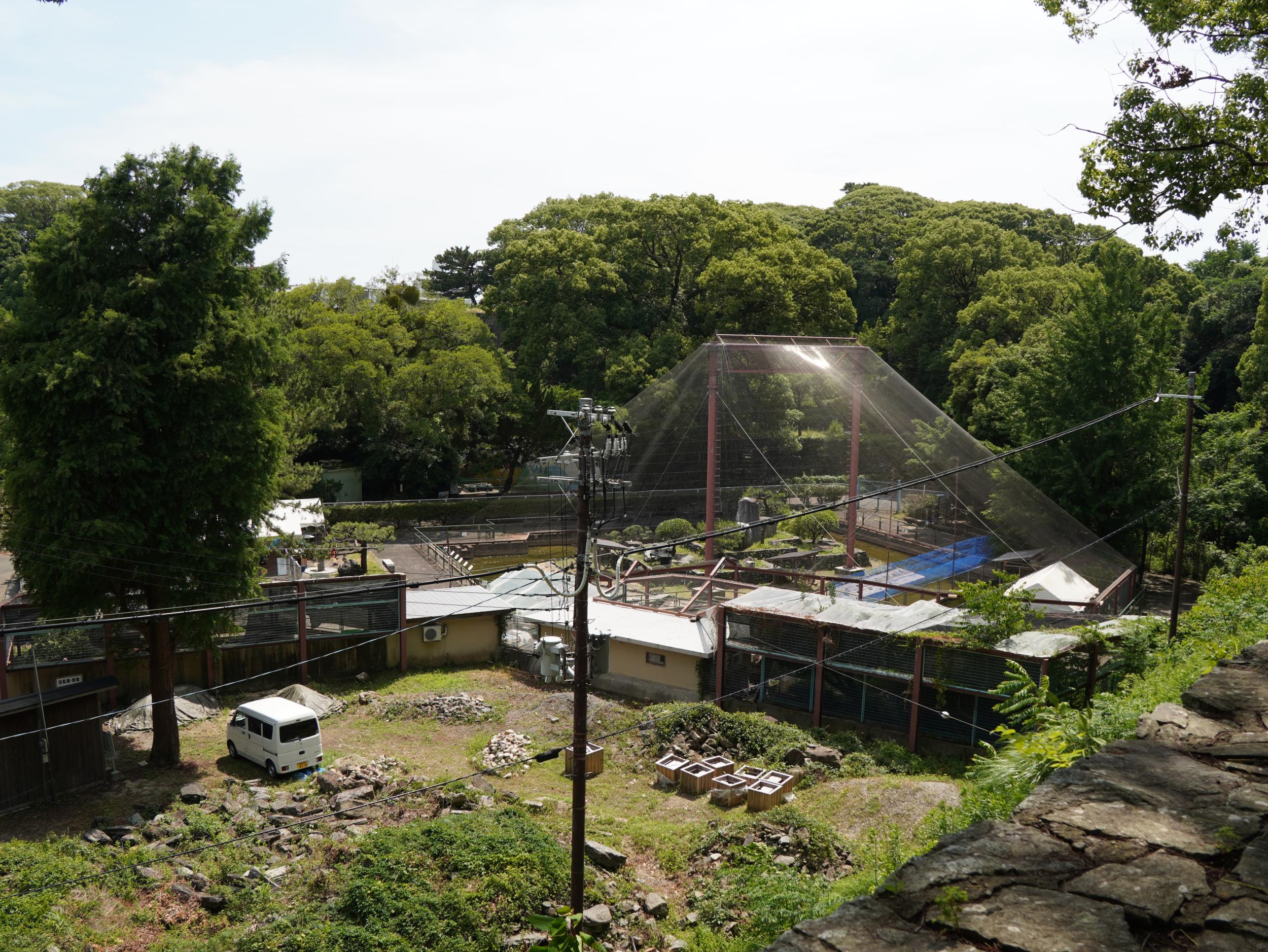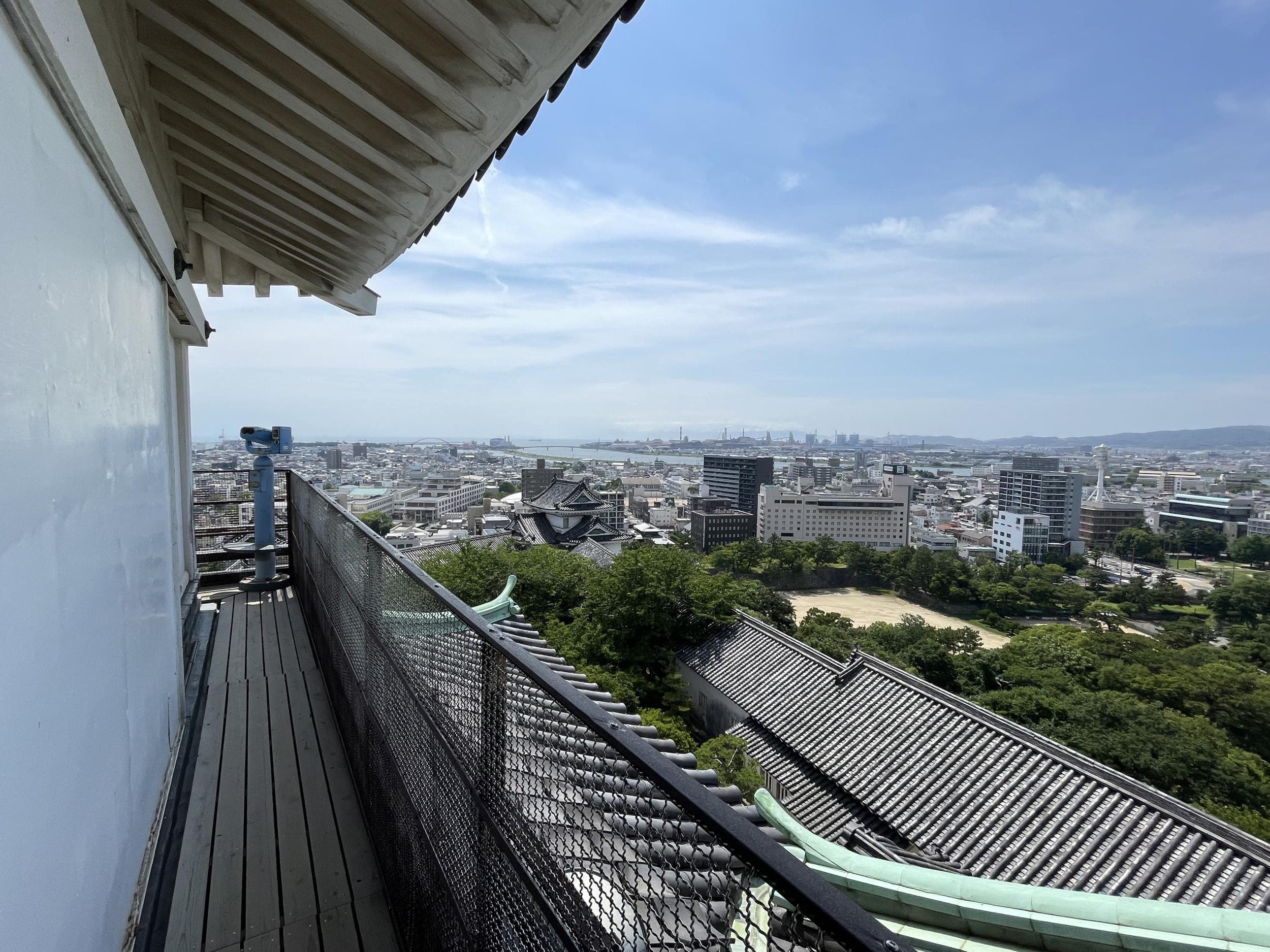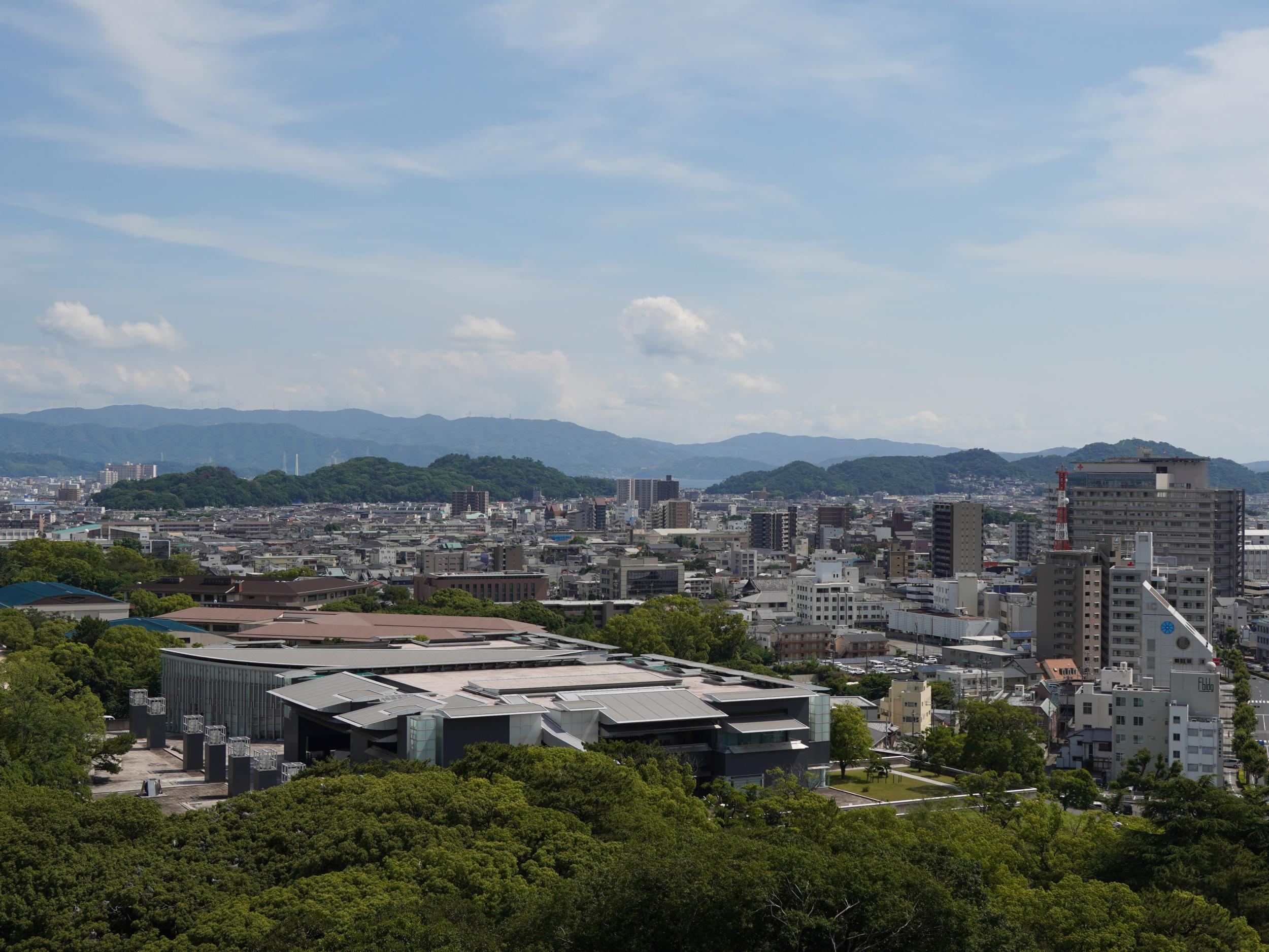 下の階には武具や絵図など多数展示、その和歌山御城内惣御絵図。江戸時代後期に作事方あるいは普請方が作成したもので、改築されるごとに貼り紙で更新され、明治初年まで使用されていた絵図です。天守はこの当時から東北東を向いていて、それを囲む天守郭全体も東西方向から15°くらい北を向いています。和歌山城は天守など11棟が昭和10年に国宝に指定されたものの昭和20年7月の和歌山大空襲で11棟全てが焼失、昭和33年に天守群がコンクリートで再建されています。