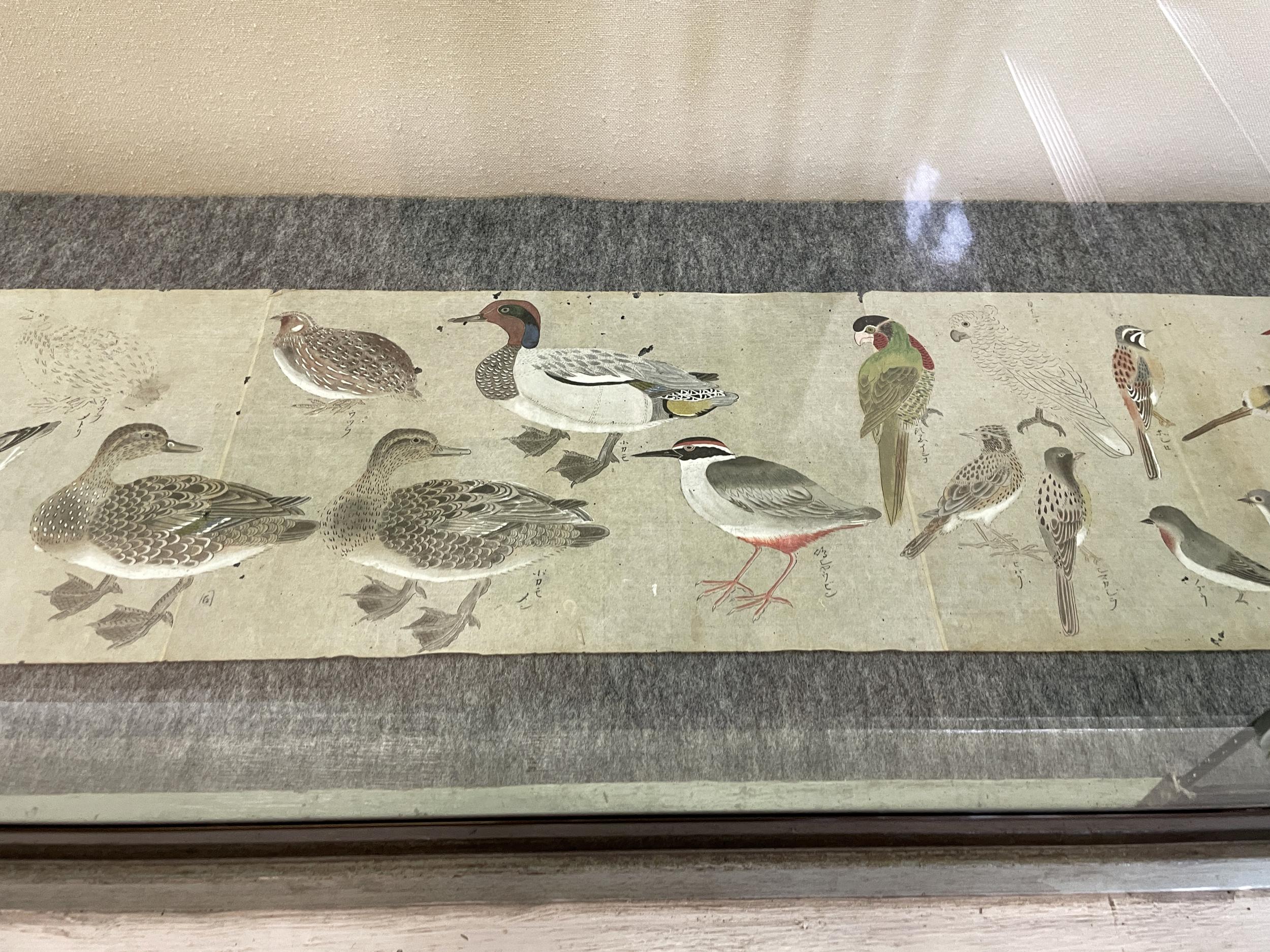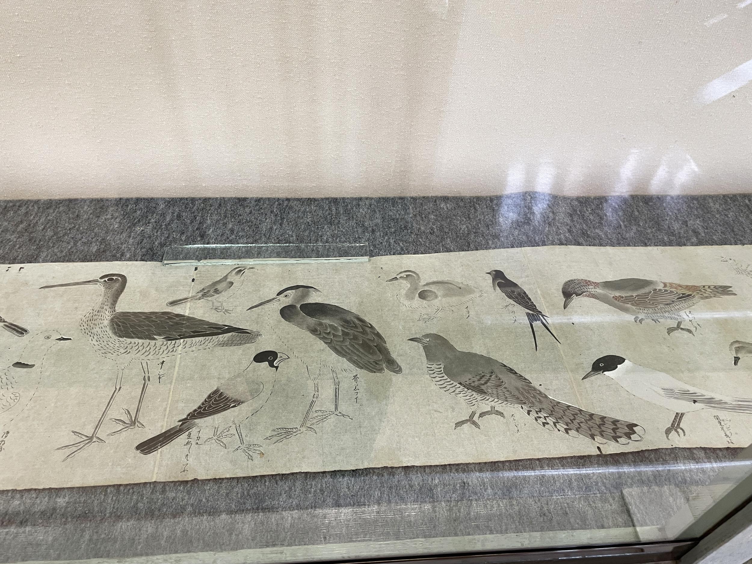 すごく気になったのがこの絵巻物。江戸時代の鳥類図鑑(粉本)、狩野派による絵の下絵としか説明がないものの、こんどはChatGPTに訊いて、江戸時代前期の紀州藩狩野派御用絵師、狩野養朴の作で間違いなさそうと分かりました。粉本や写生図に優れ、特に植物・鳥類・獣類の写生図に見られる繊細な描写が評価されているとのこと。画像検索でとこの粉本と同じタッチの作品が見つかります。ツムキとあるのはどうみてもツグミ、いかにもモズな姿勢のモズ、ウの後ろにはハクセキレイ。