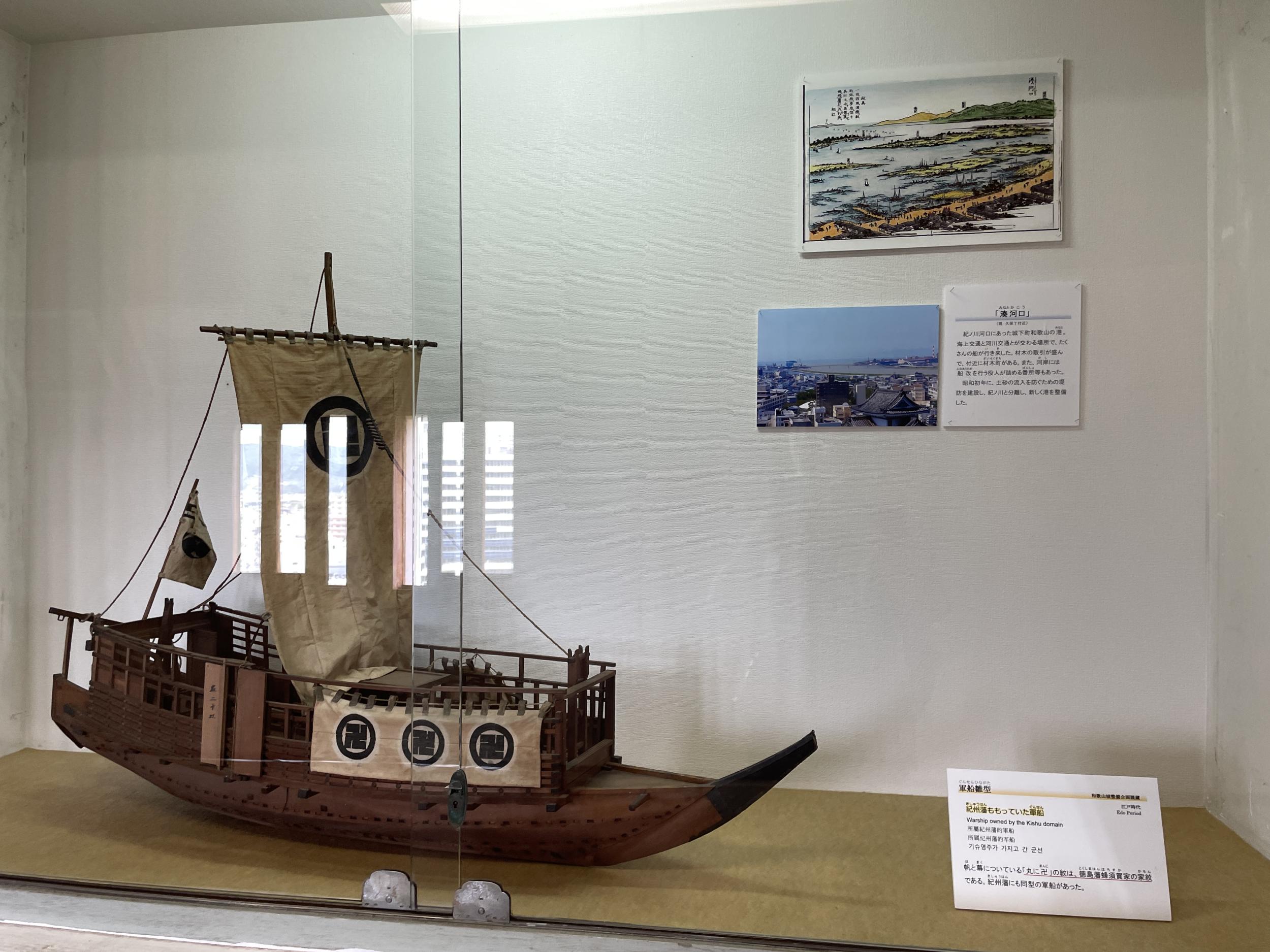 徳島蜂須賀藩の軍船模型です。紀州藩にも同型の軍船があったとのこと。幕末には紀州藩も徳島藩も蒸気船を持っていたので、模型は江戸中期のものかと。