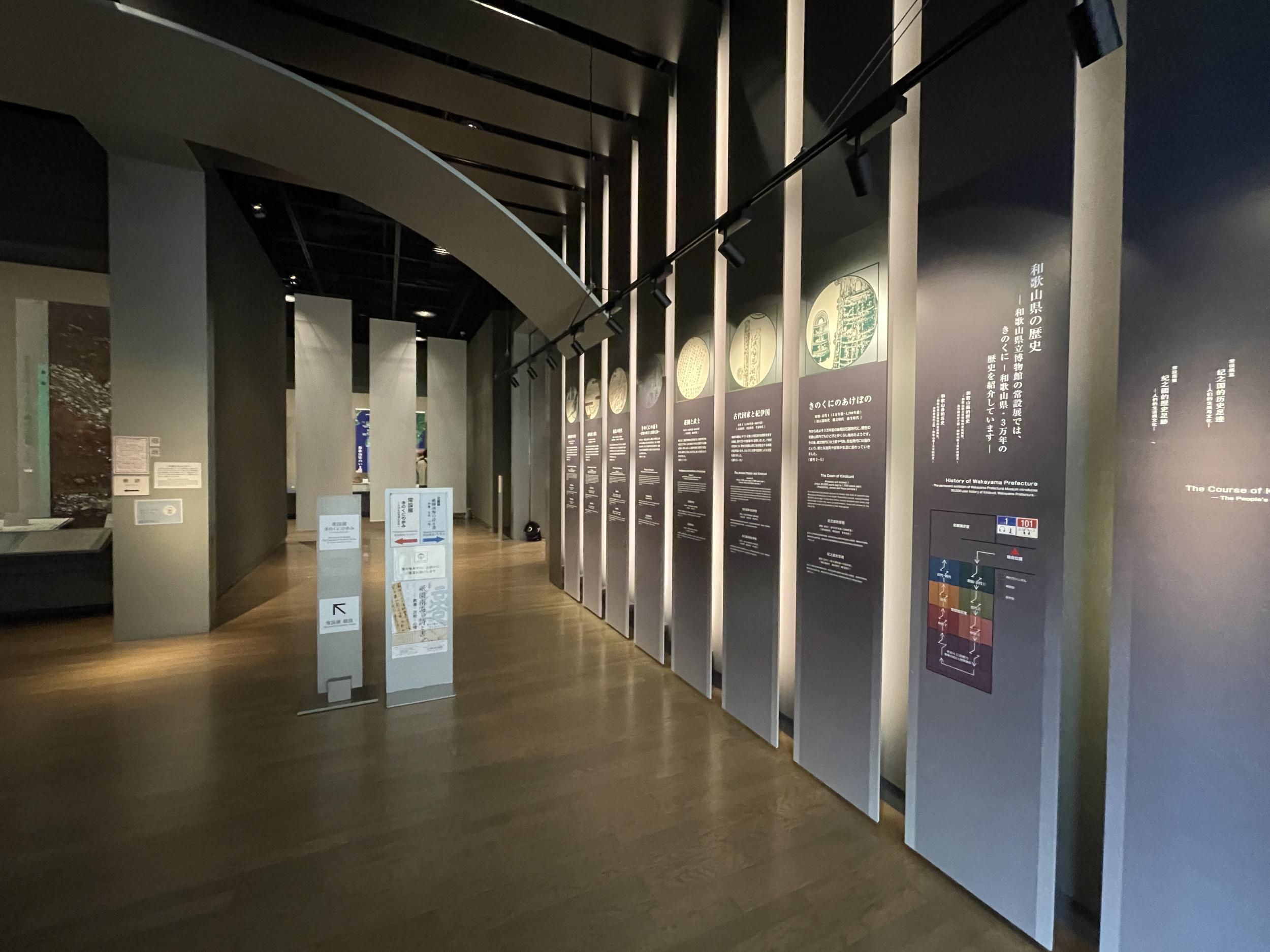 兵庫県立考古博物館より少し小さめの展示スペース、但馬、丹波、播磨、摂津、淡路にまたがる兵庫県全体をカバーする広い空間軸で古代以前に限られた時間軸の兵庫県立考古博物館に対し、こちらは紀州のみの限られた空間軸で、きのくにのあけぼの、古代国家と紀伊国、荘園と武士、きのくにの祈り、動乱の時代、紀州藩と領民、和歌山県の誕生という7つのテーマで一気通貫の時間軸での展示です。