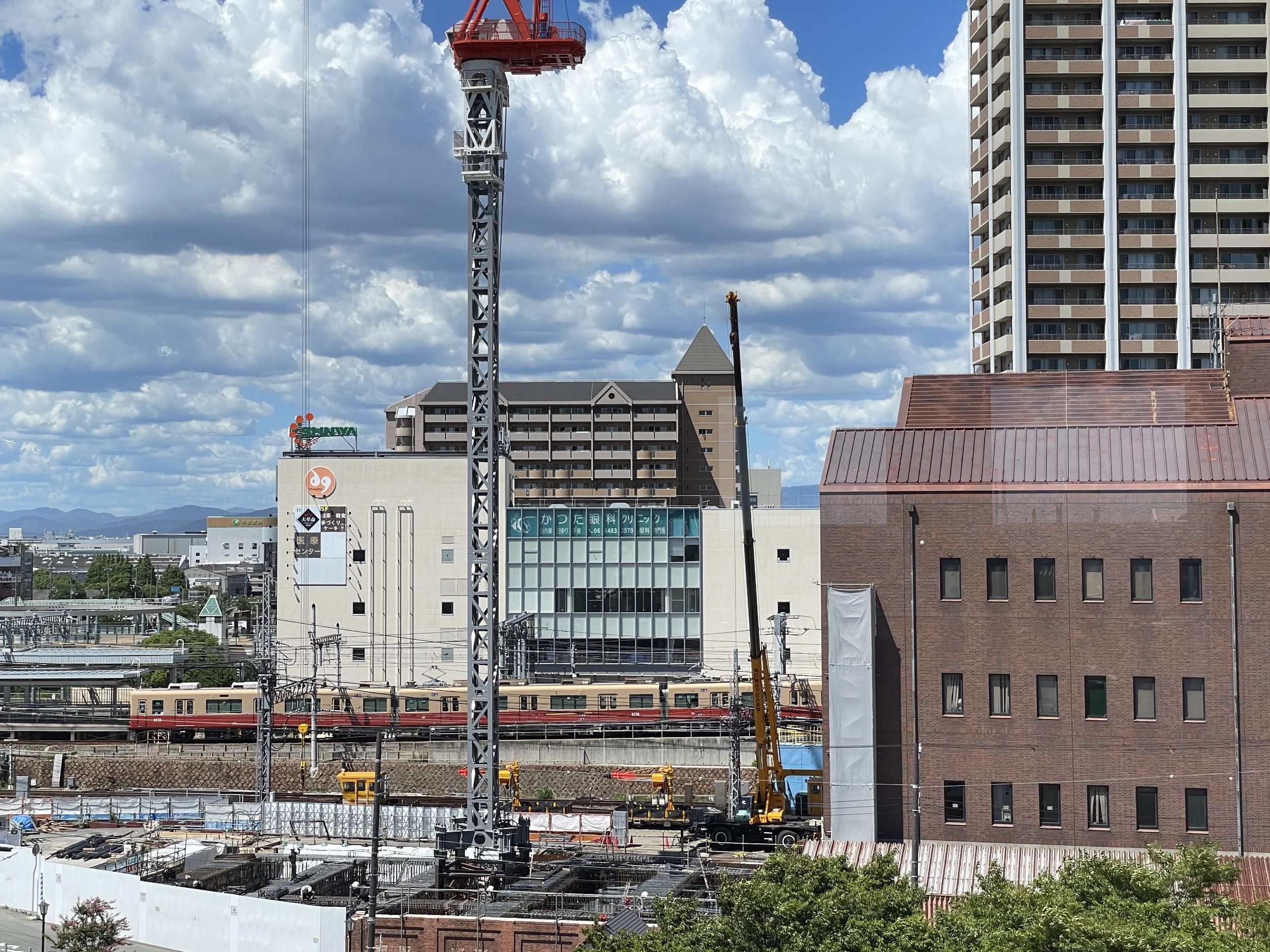 帰り道、先週同様に淀川から梅田を撮ってみました。撮った時には全然気づかなかったけど、梅田上空に虹が架かっていてビックリ。