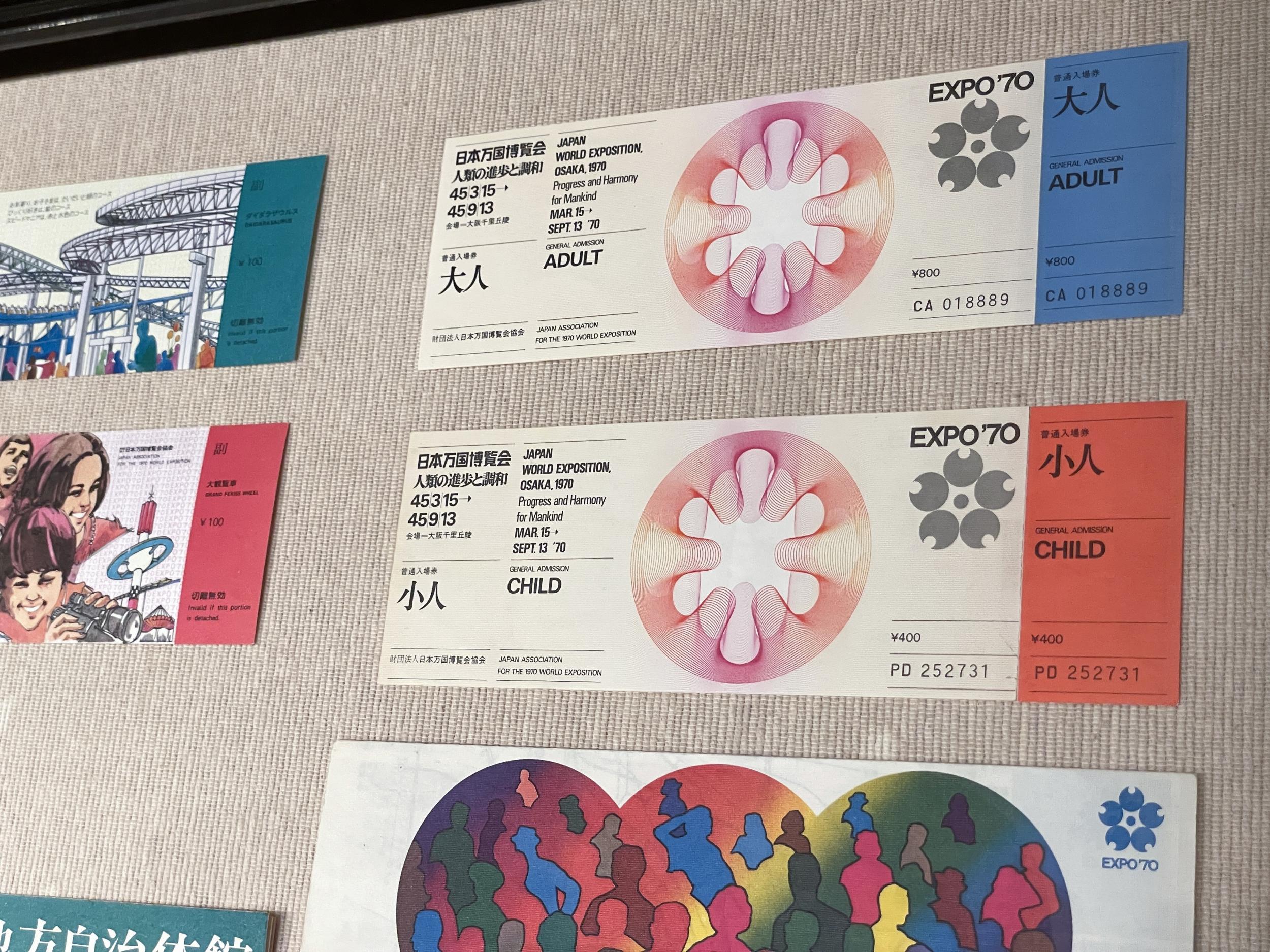 大阪万博のチケット、大人¥800、ダイダラザウルスが¥100。1970年と2024年の消費者物価指数を比較すると3.5倍(参考)くらいなので、夢洲万博の¥7,500はやはり高すぎると分かります。