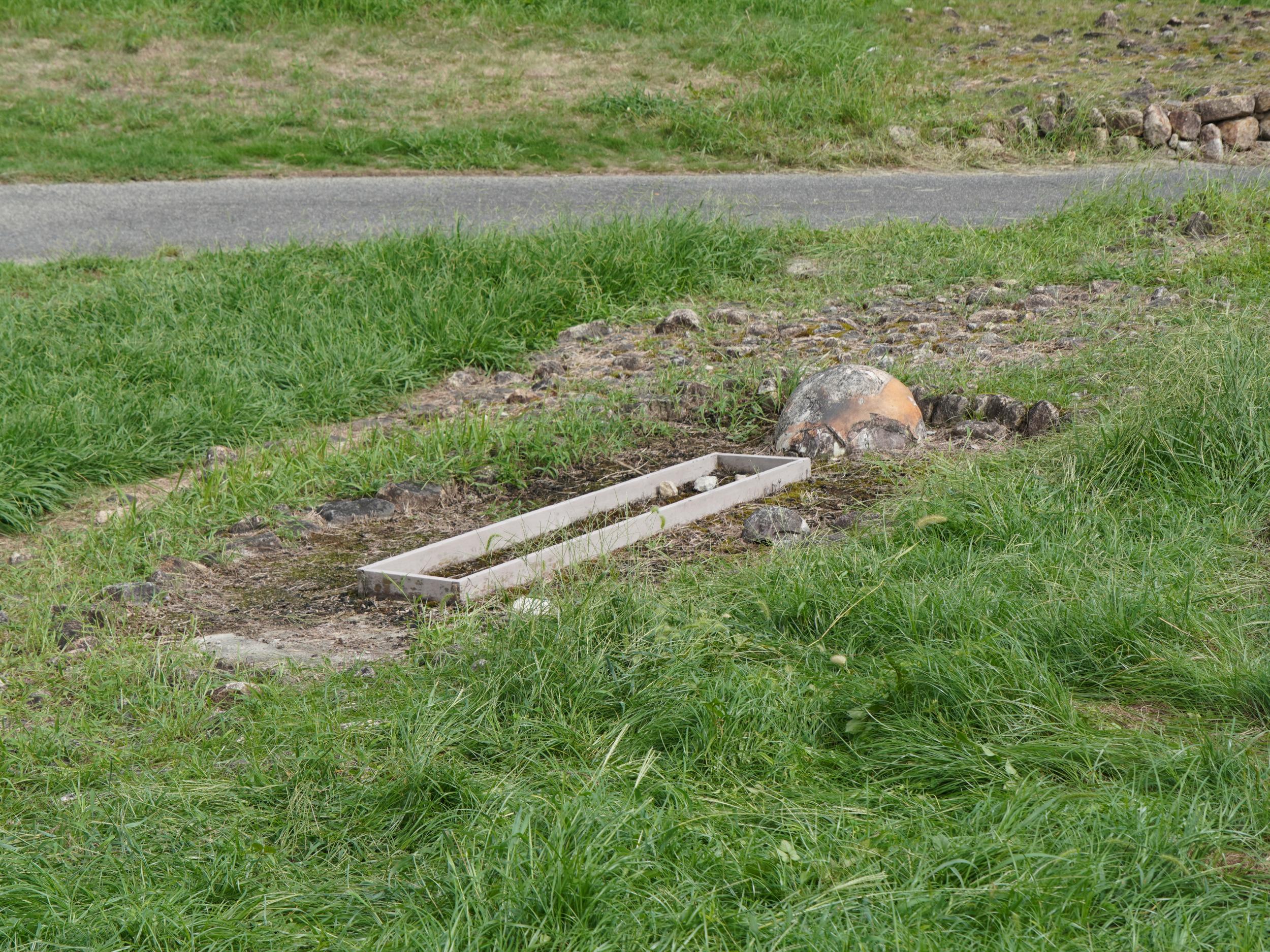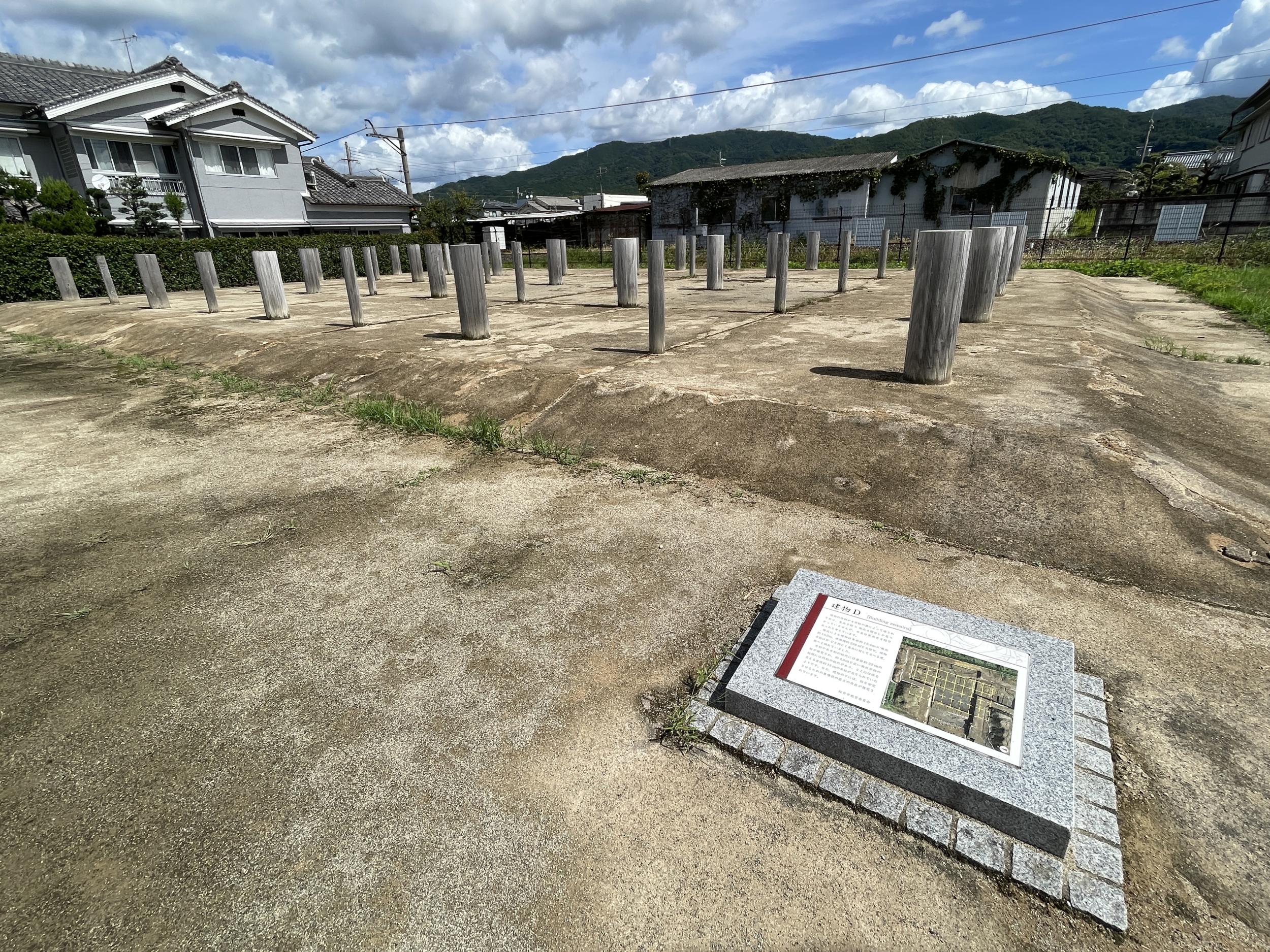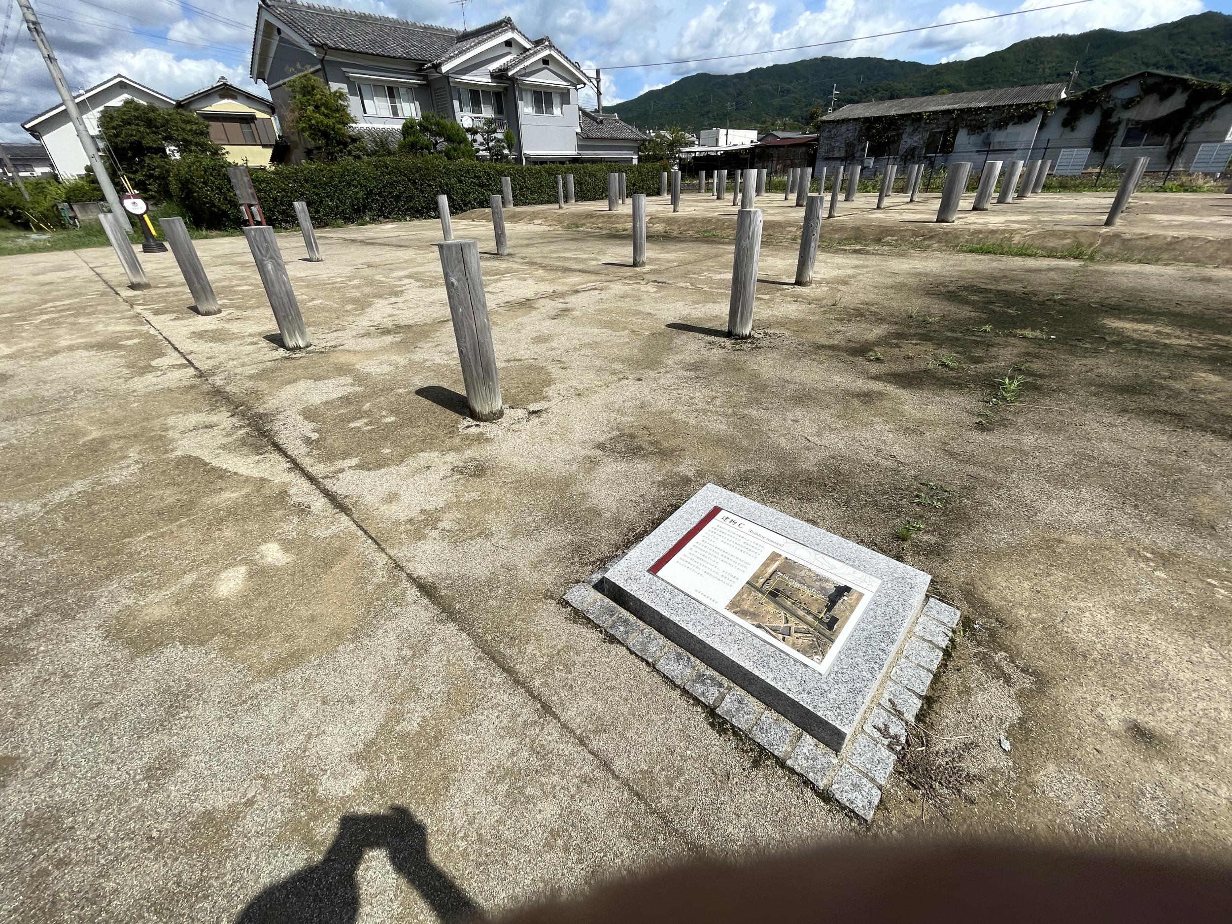 説明板によると線路脇にさらに建物E、線路をまたぐように位置し、B〜Dとは異なる方向を向いている未知の居館らしい。発掘調査を進めるには長期間電車を止める必要がありそうです。