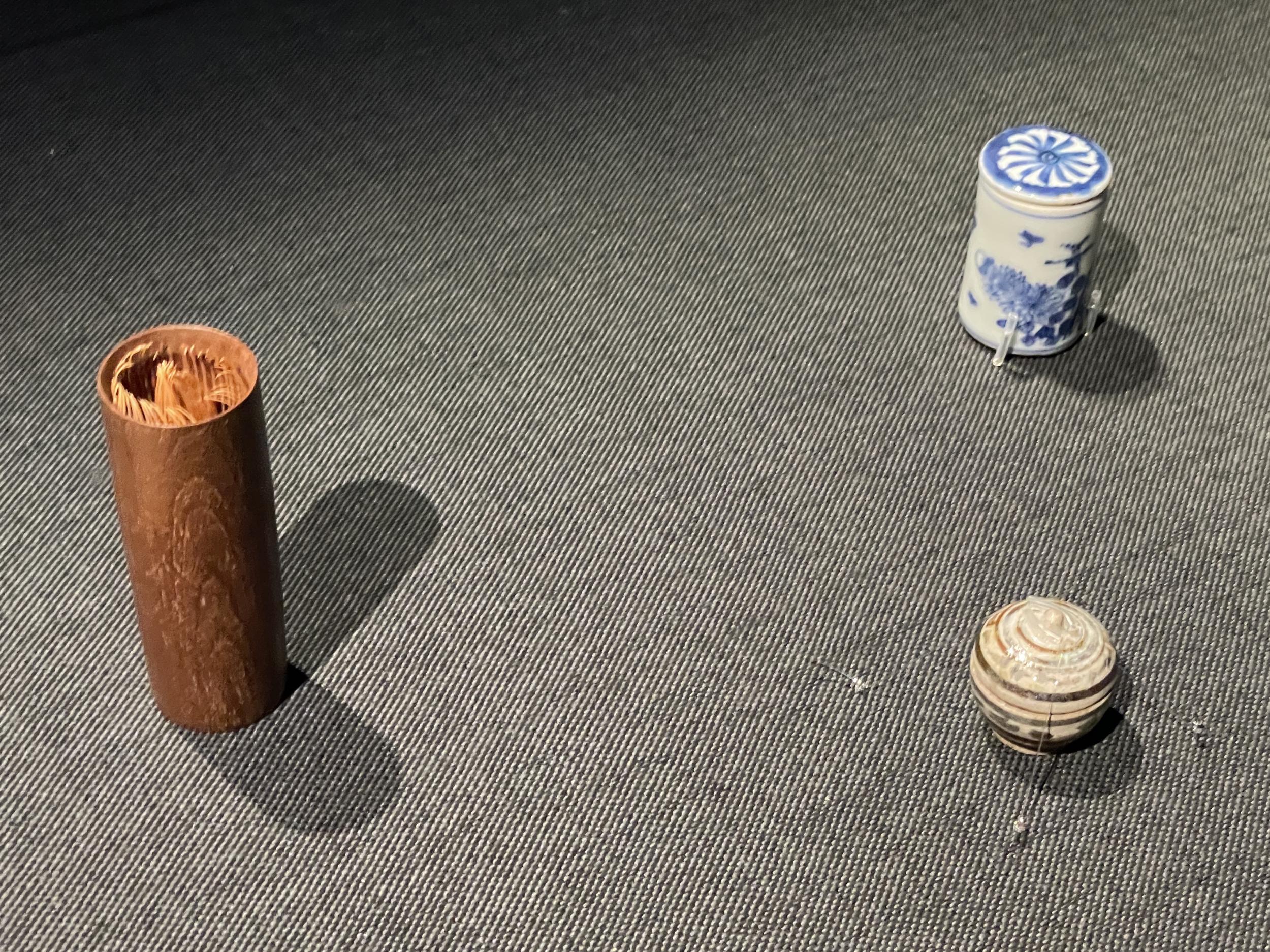 複数の香木を順に聞き(香りをかぐ)、その香りの違いを当てたり、物語や詩に結びつけて楽しむ形式の香遊び、例えるなら「香りのカルタ」や「香りの和歌合わせ」のようなもの。源氏物語の各巻にちなみ、5種類の香を組み合わせて聞き当て、香の同異を記号で表す「源氏香」などがあるとChatGTPが教えてくれました。香道の一つのようですが、全く知らなかった江戸時代の富裕層の世界、正倉院 THE SHOWで合成された蘭奢待の香りを嗅いで甘い香りが認識できただけの自分にはかなり遠い世界です。