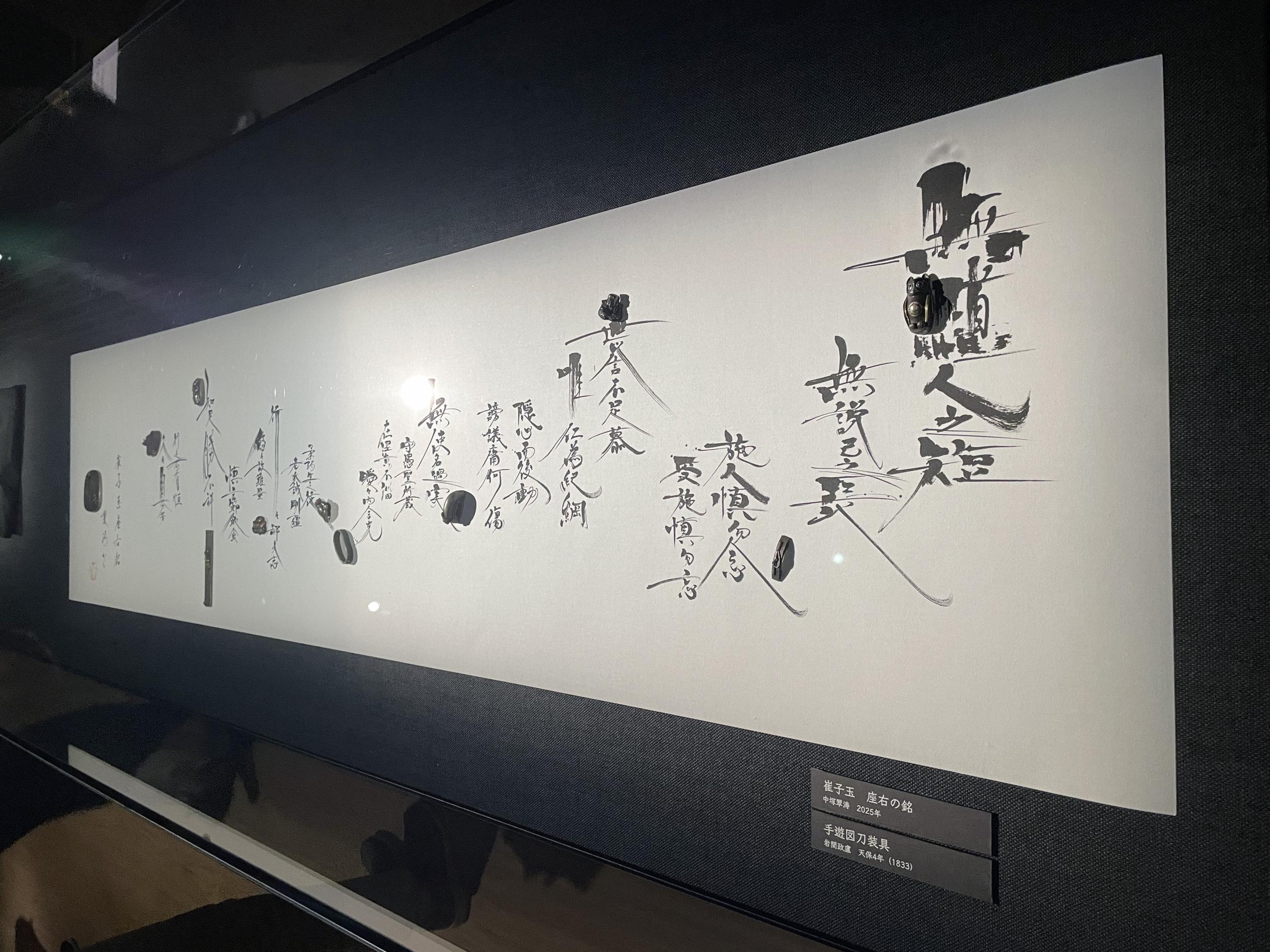 座右の銘の文字の森でフィギュアたちがかくれんぼするような世界を演出すべく、新たに書き出したものと、中塚さん自身のコメントが会場のQRから読める解説にありました。後漢の崔子玉、江戸時代の岩間政盧、令和の中塚翠涛のなんとも奥深いコラボに感銘、何重にも伏線が仕込まれた映画を見るような、こういう芸のこまかさは大好きです。