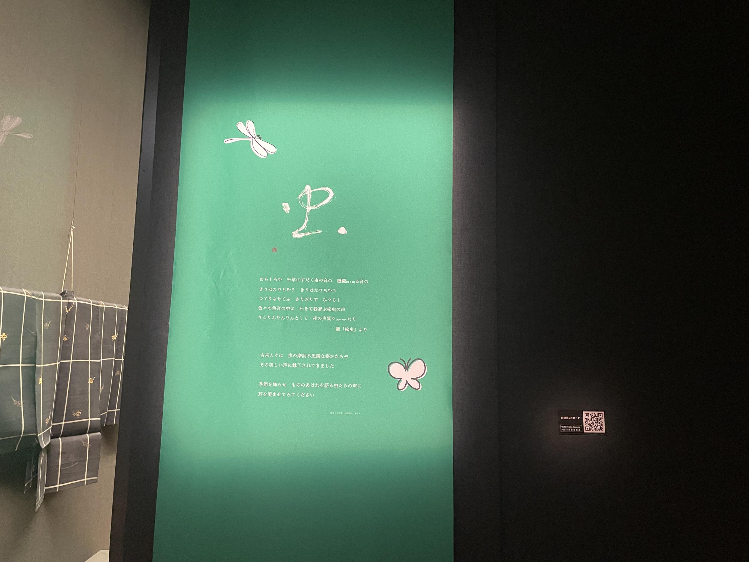 「作品を彩る虫」のパネル、奈良時代から蝶が文様として工芸化したこと、平安時代の貴族が嵯峨野で鳴き声が優れた鈴虫を捕まえる「虫撰」に興じていたこと、常にまっすぐ飛ぶので勝虫と呼ばれたトンボが兜にも取り入れられるようなっとたこと、いずれも興味深い。