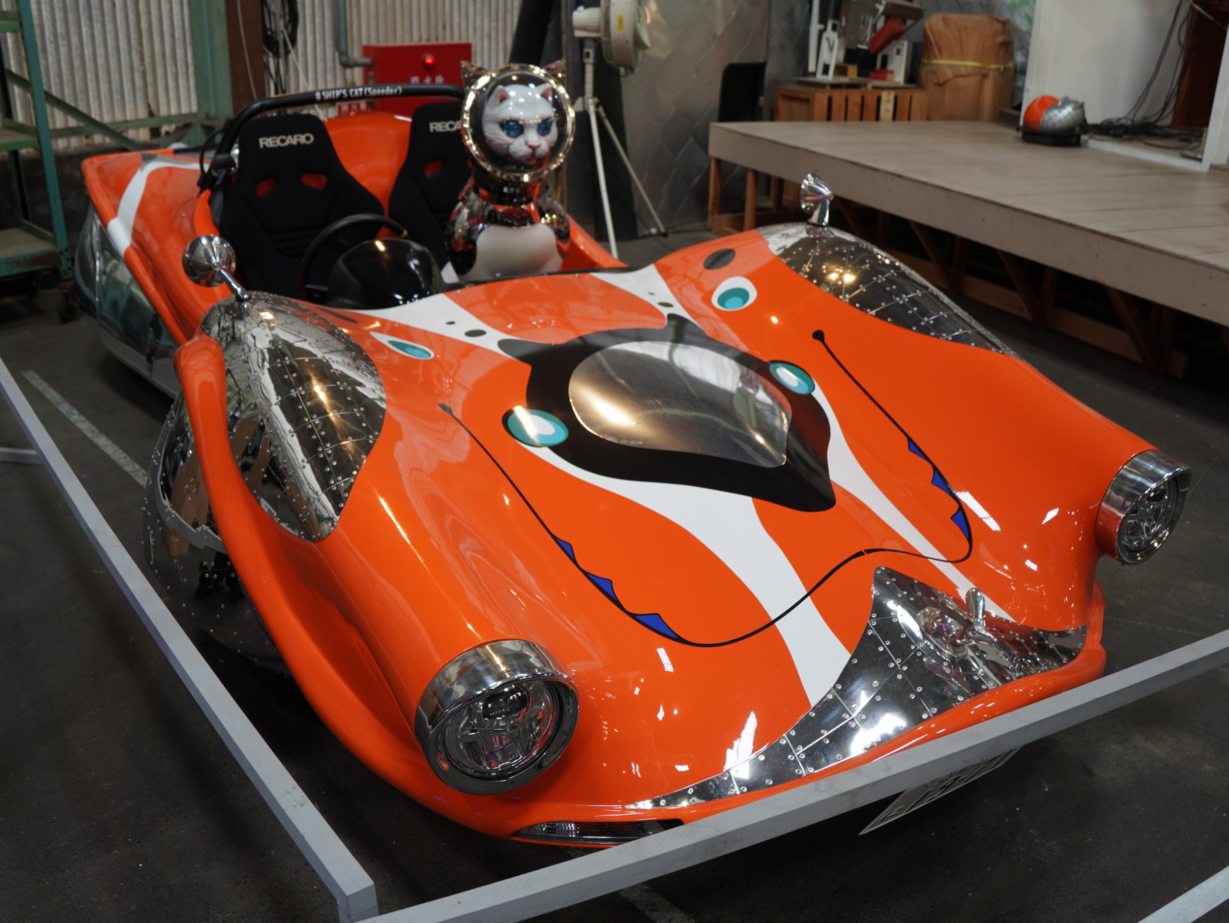 SHIP's CAT(Speeder)は電気自動車、画面左下ではシップスキャットのフィギュアとスピーダーのツーショット撮影中。